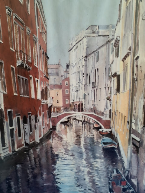 Indrammet plakat med teksten "Luana Tuis" og viser en kanal i en by, sandsynligvis Venedig. Plakaten har fået fugt, hvilket gør at papiret bølger lidt - prisen er sat derefter.