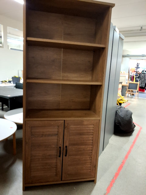 Reol med hylder og underskab med låger.