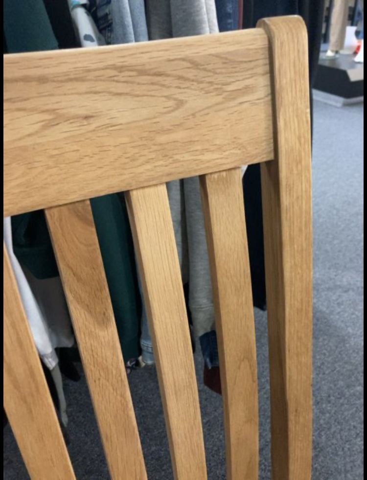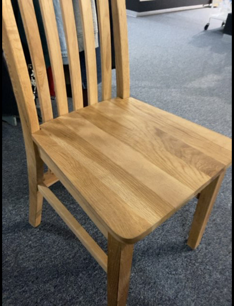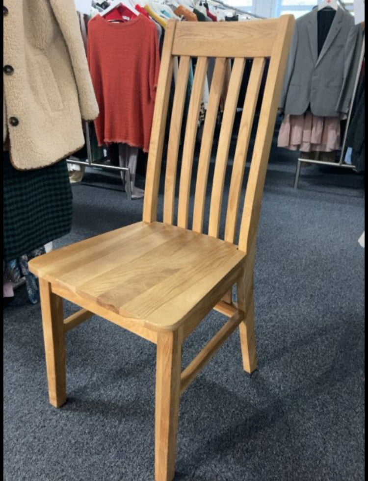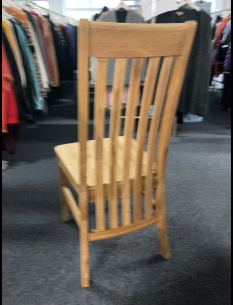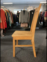 Stolen er lavet af lyst træ med en enkel, klassisk design. Den har en flad sæde og ryg med lameller. Naturlig træfinish.