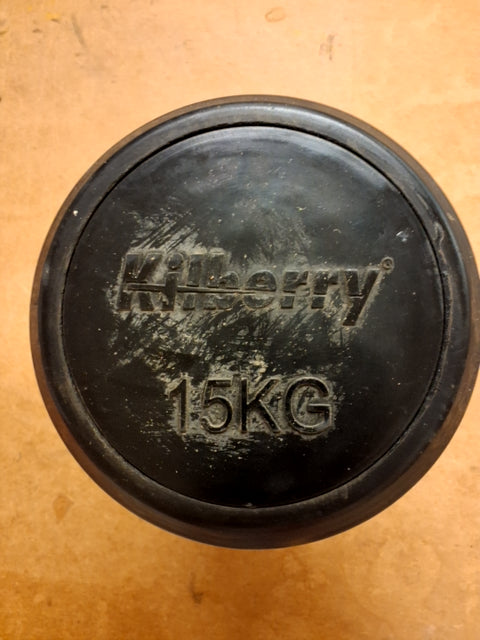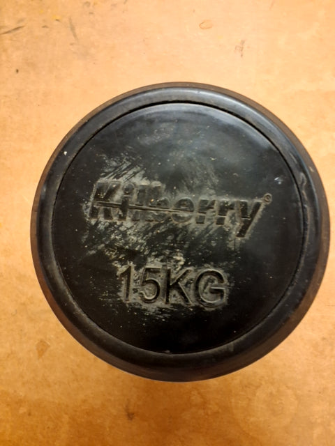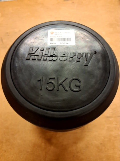Produktet er en vægt på 15 kg med en glat, sort overflade. Enkelt design med præcise detaljer.