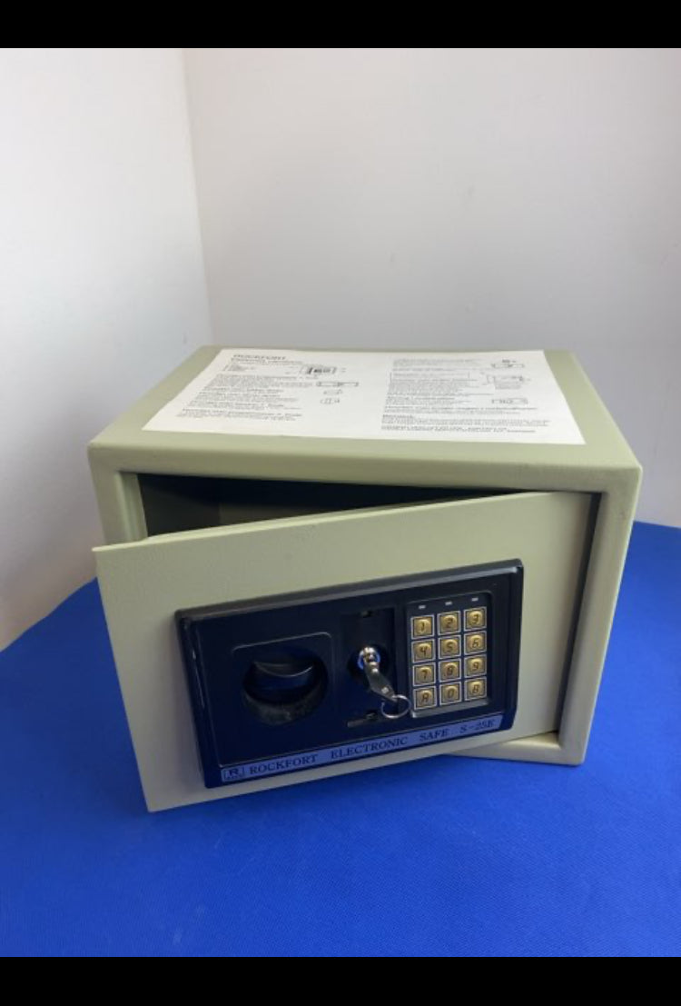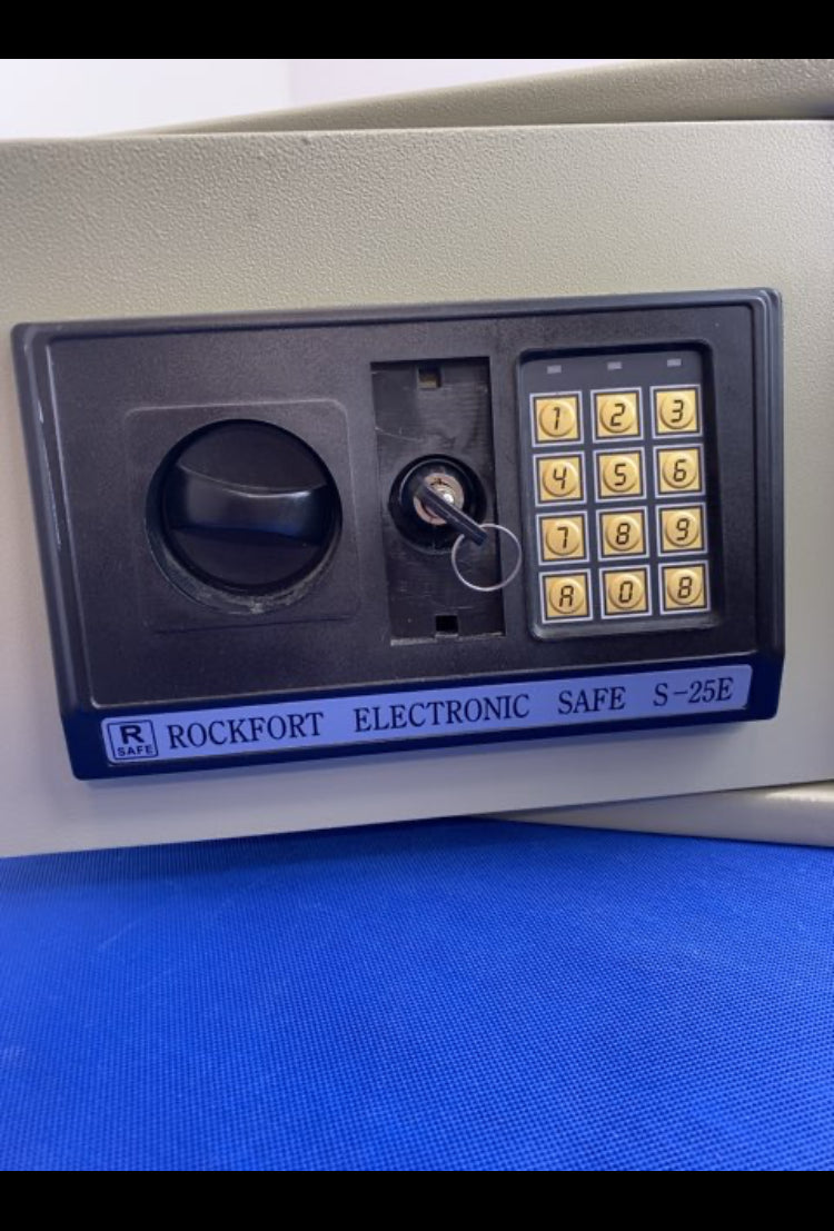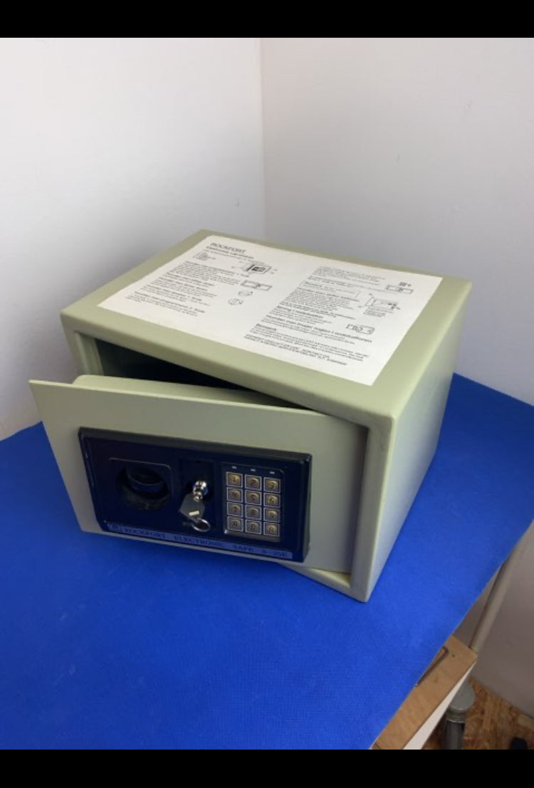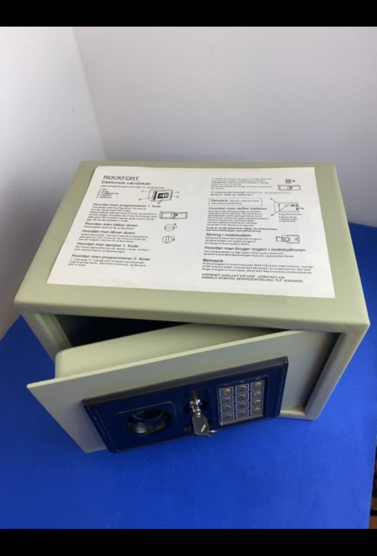 Sikkerhedsboksen er elektronisk, med tastatur og nøgle.