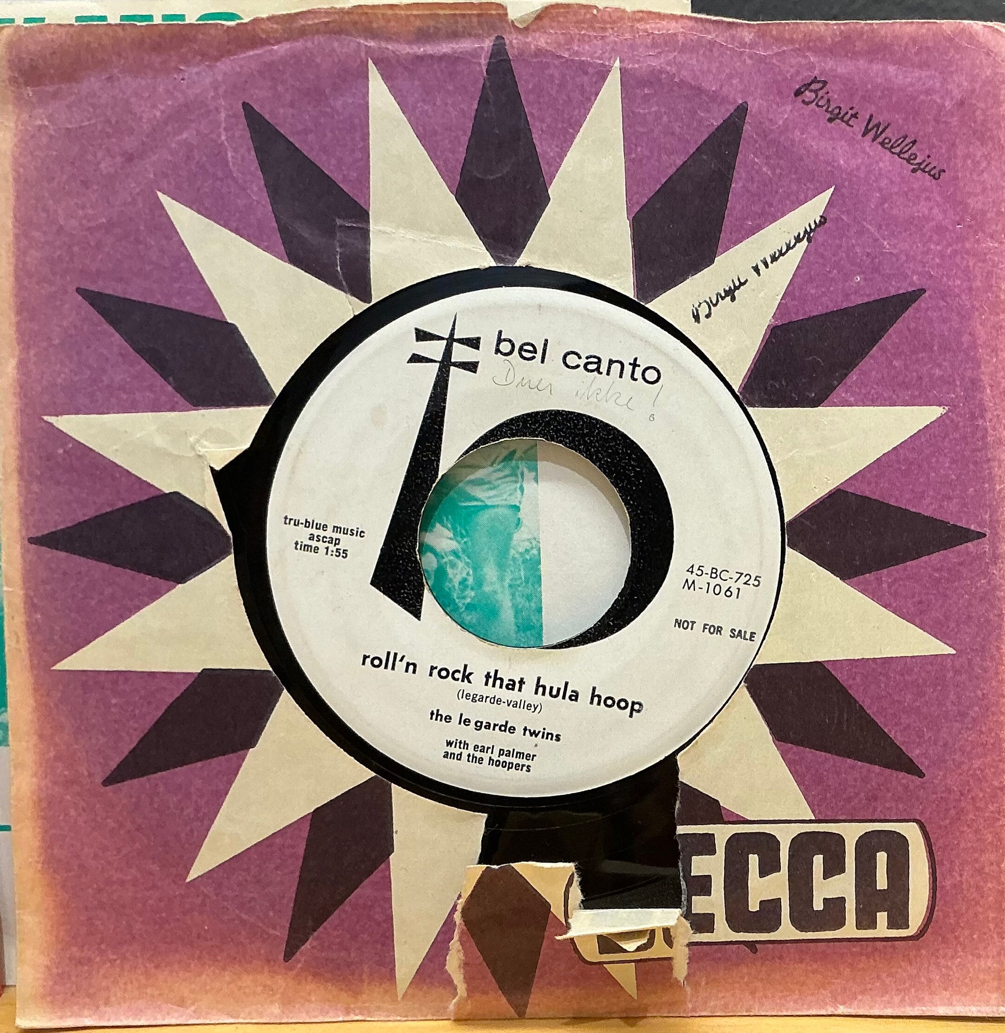 Singleplade 45rpm. The le garde twins - Roll'n rock that hula hop
