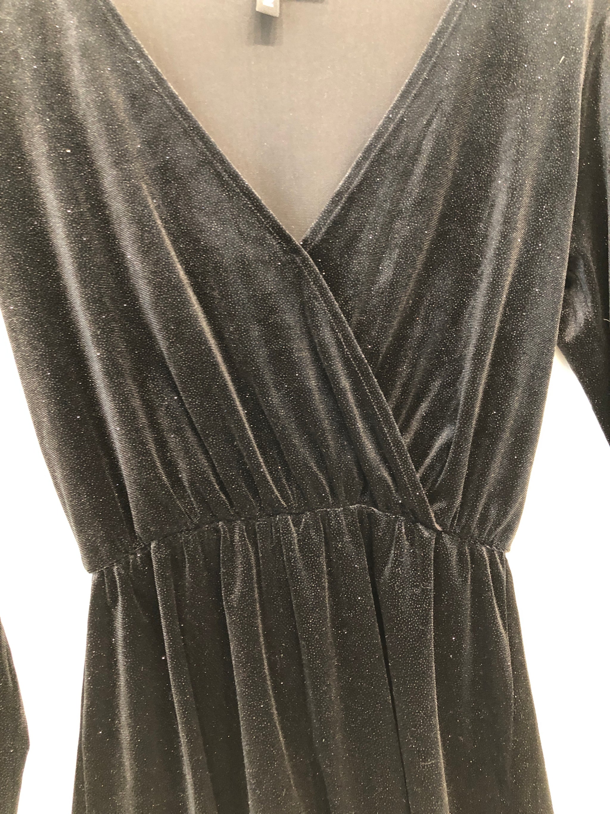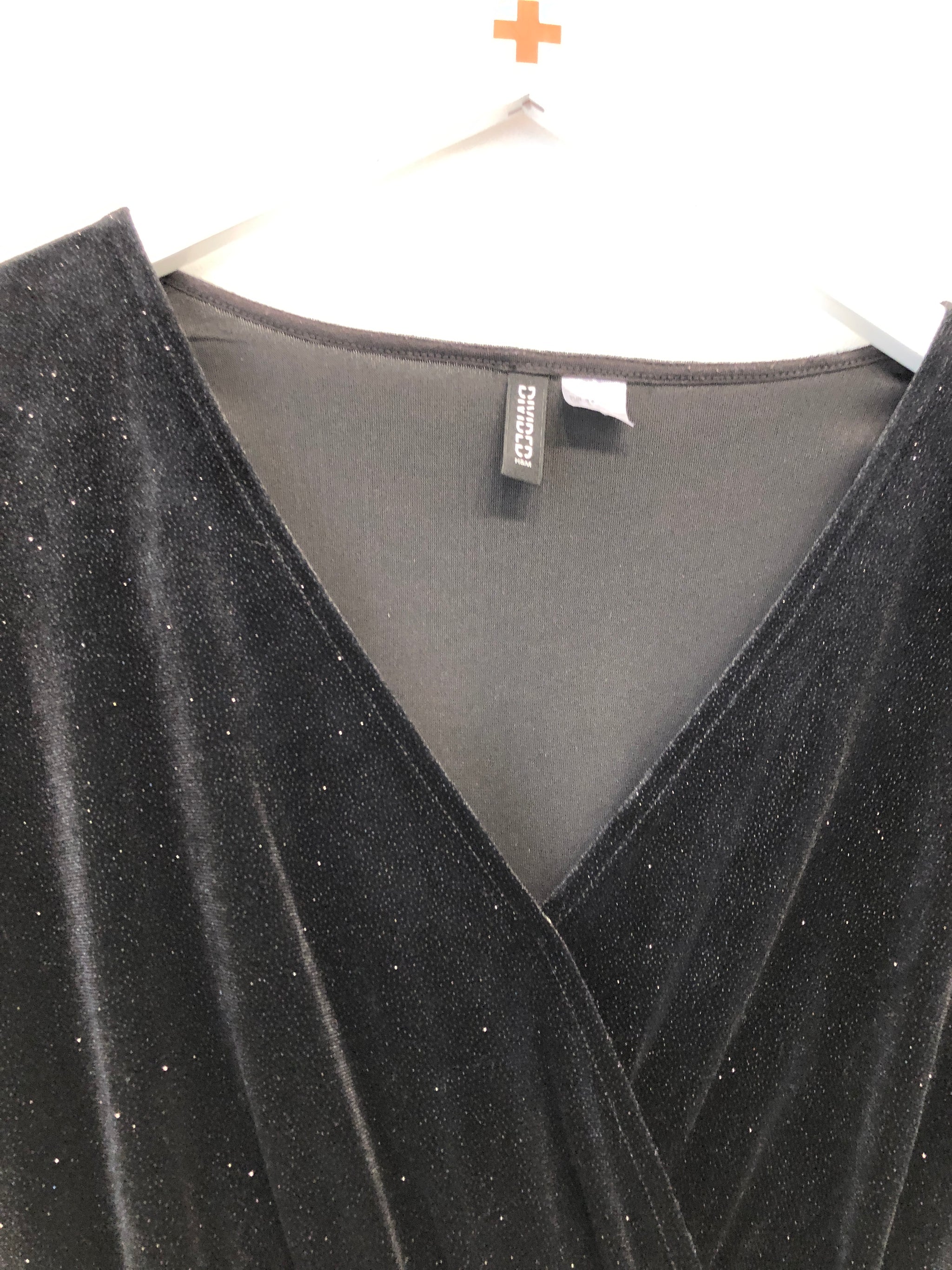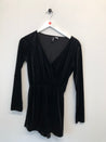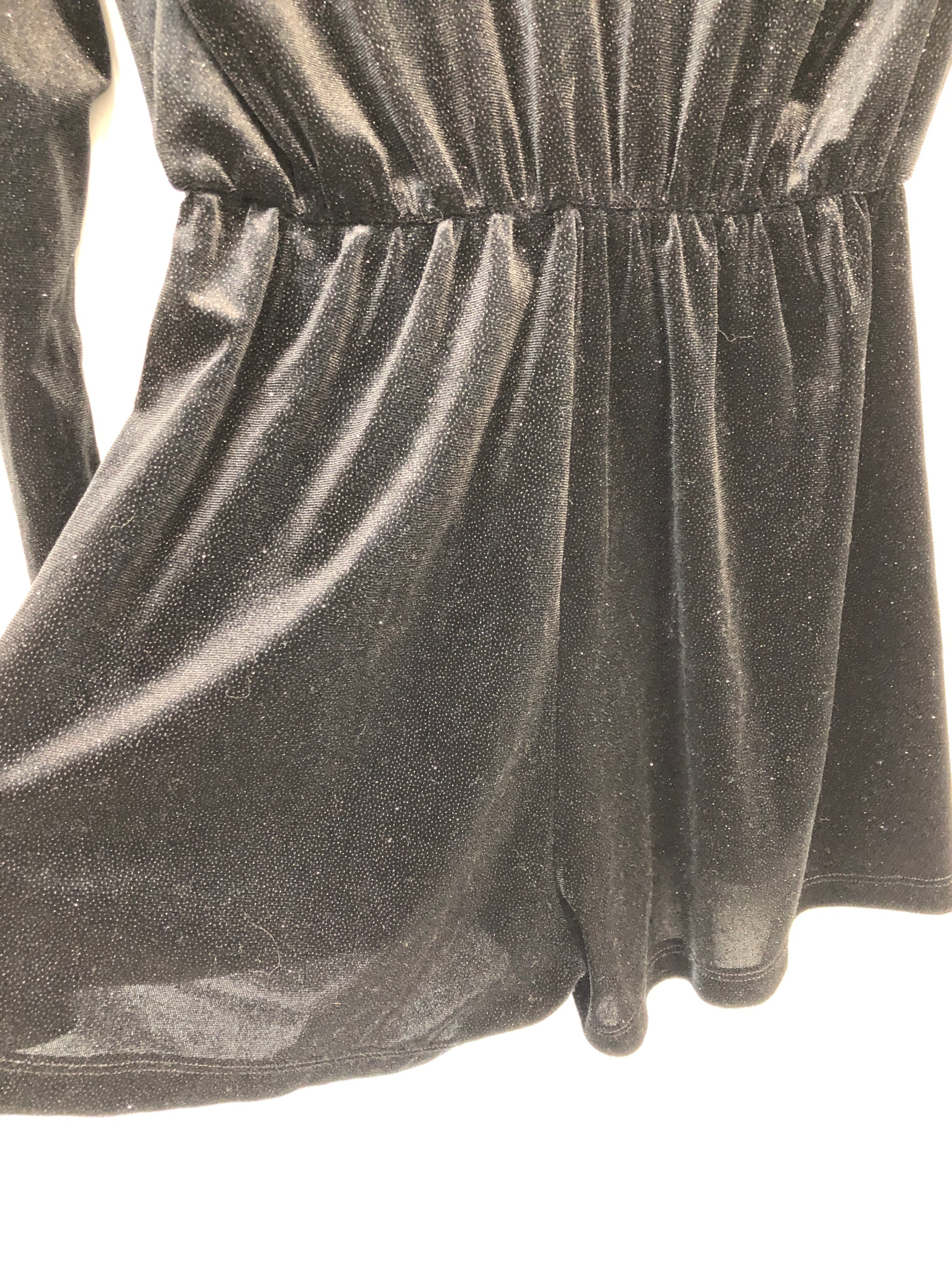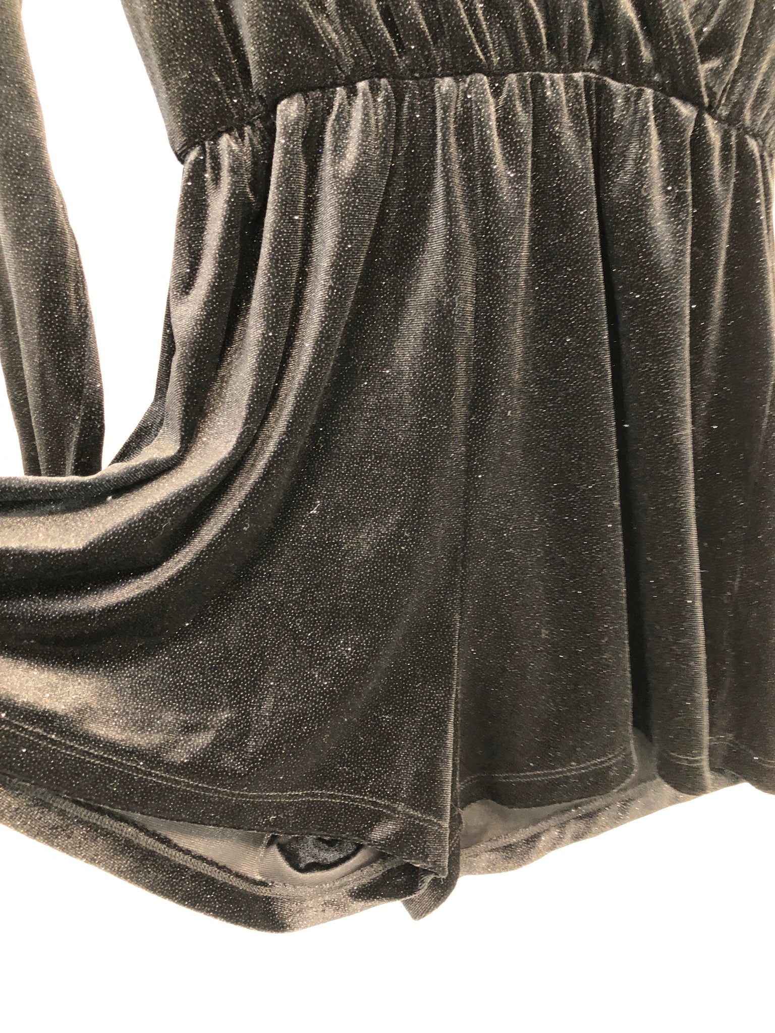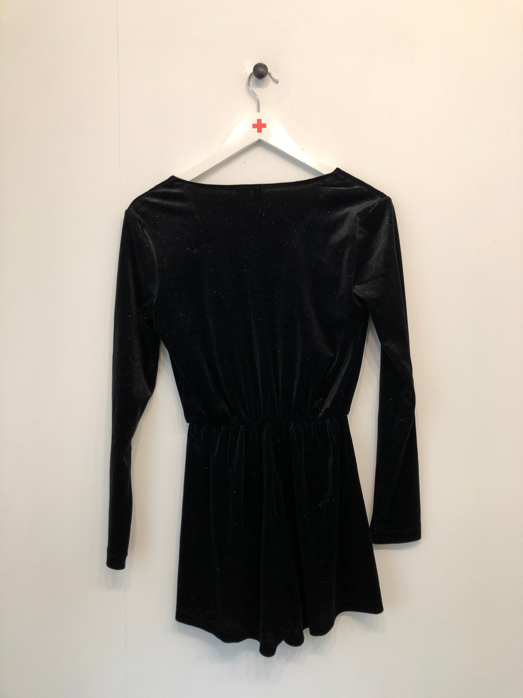 Flot shortsdragt med V-halsudskæring i sort glimmer og med lange ærmer.