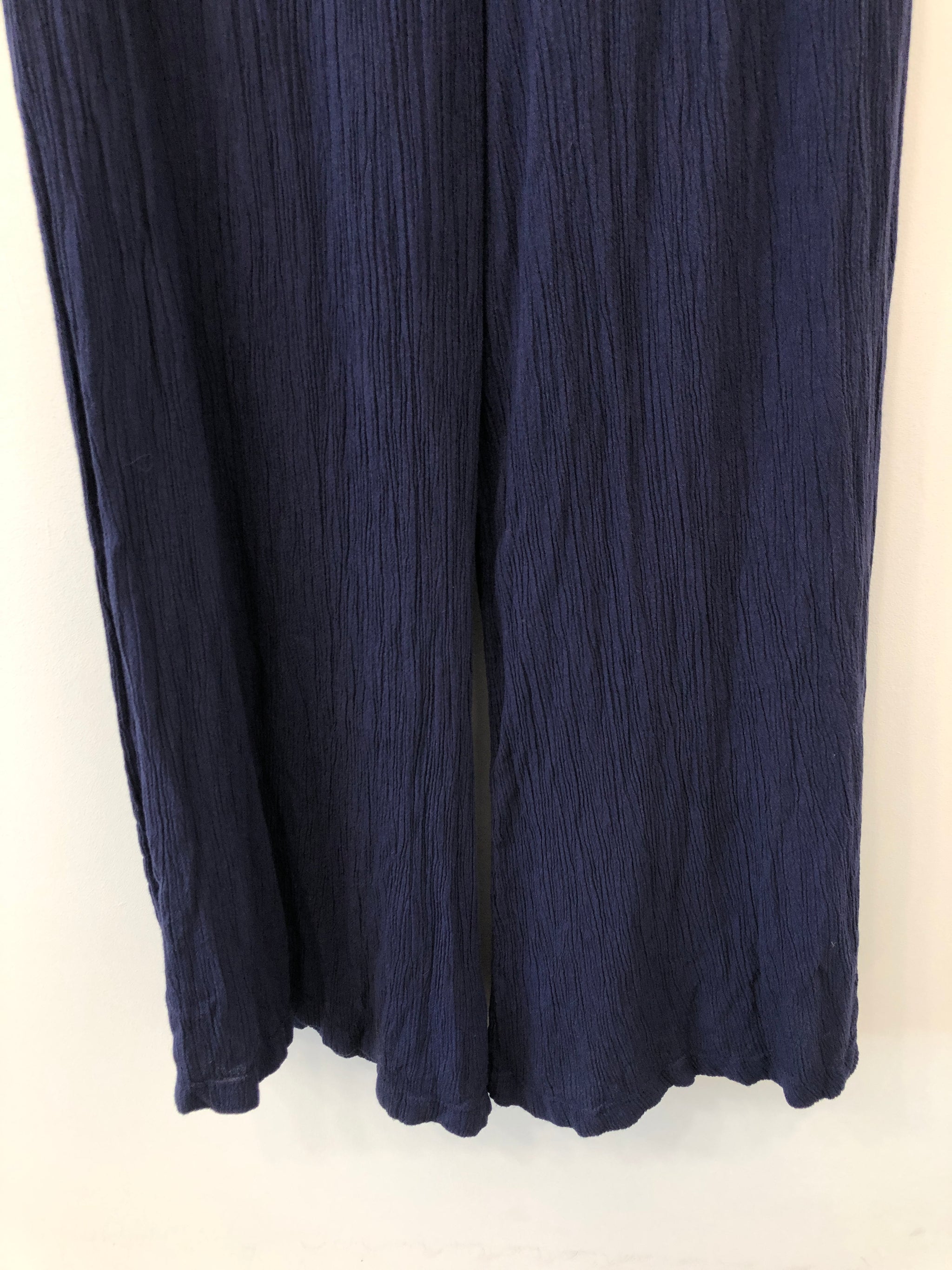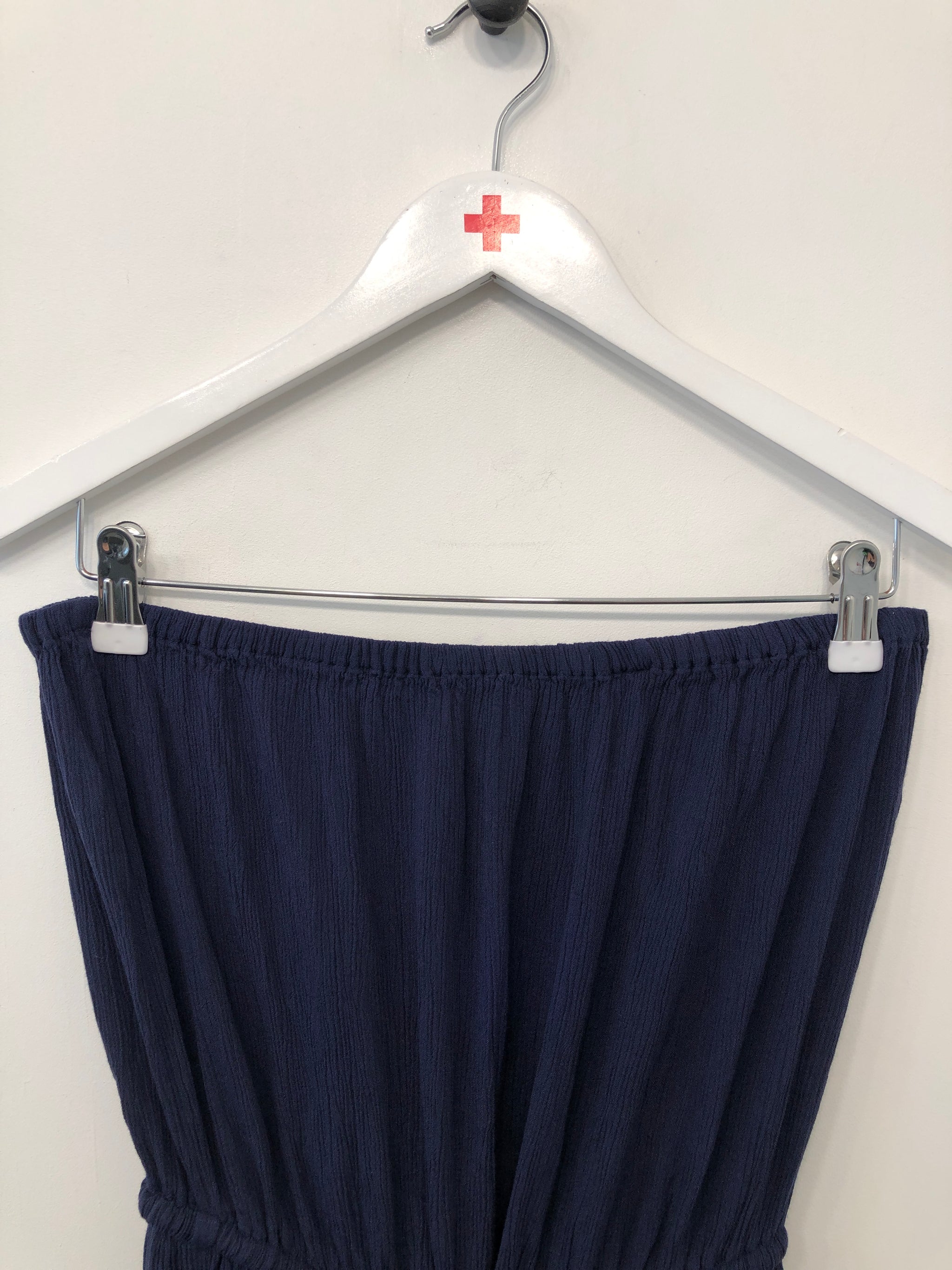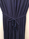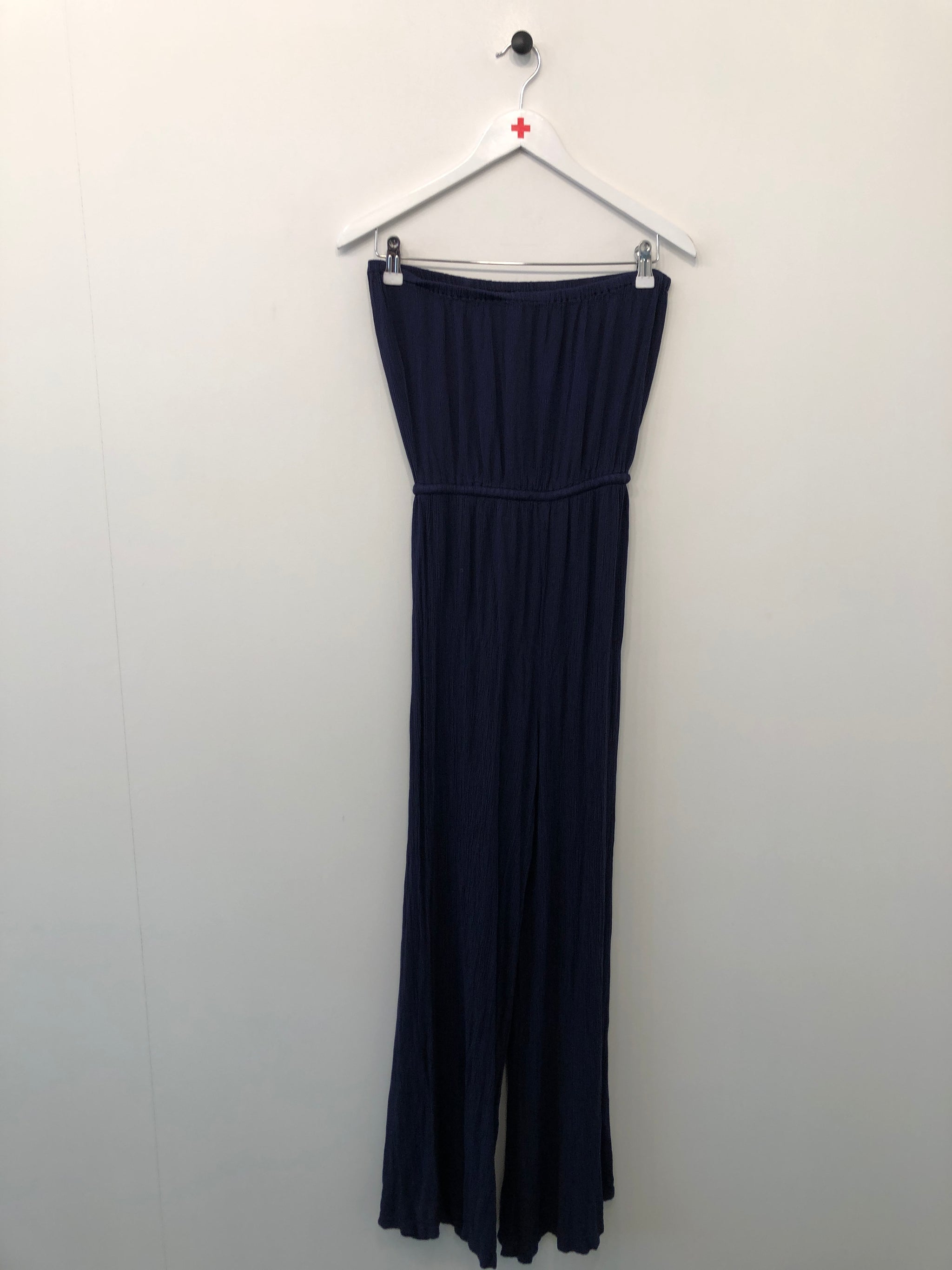 Buksedragt med bindebånd i talje. Ærmeløs med elastik i top.
