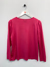 Bluse med rund halsudskæring og lange ærmer.
