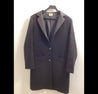 496 Vævet stof. Jakken har en simpel design med knaplukning og skrålommer. Den er lavet af et tungt, struktureret material. Brystvidde 98 cm. Og længde 97 cm.