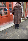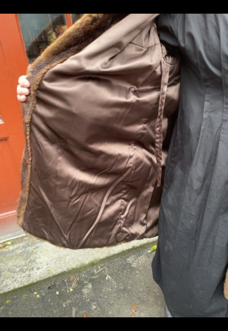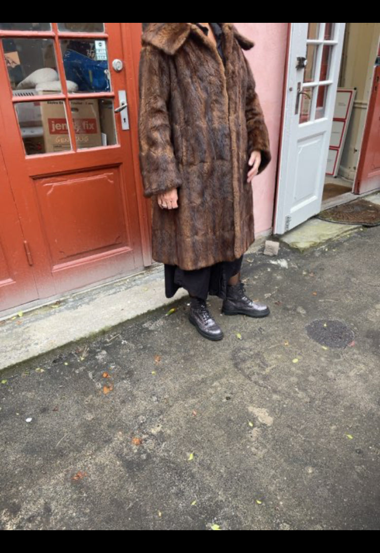 Brun minkpels i fin stand med pænt for Kappen er lang med en kraftig pelsstruktur og stor krave.