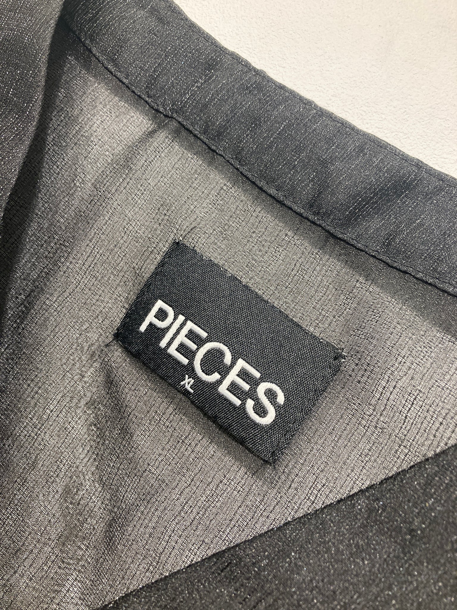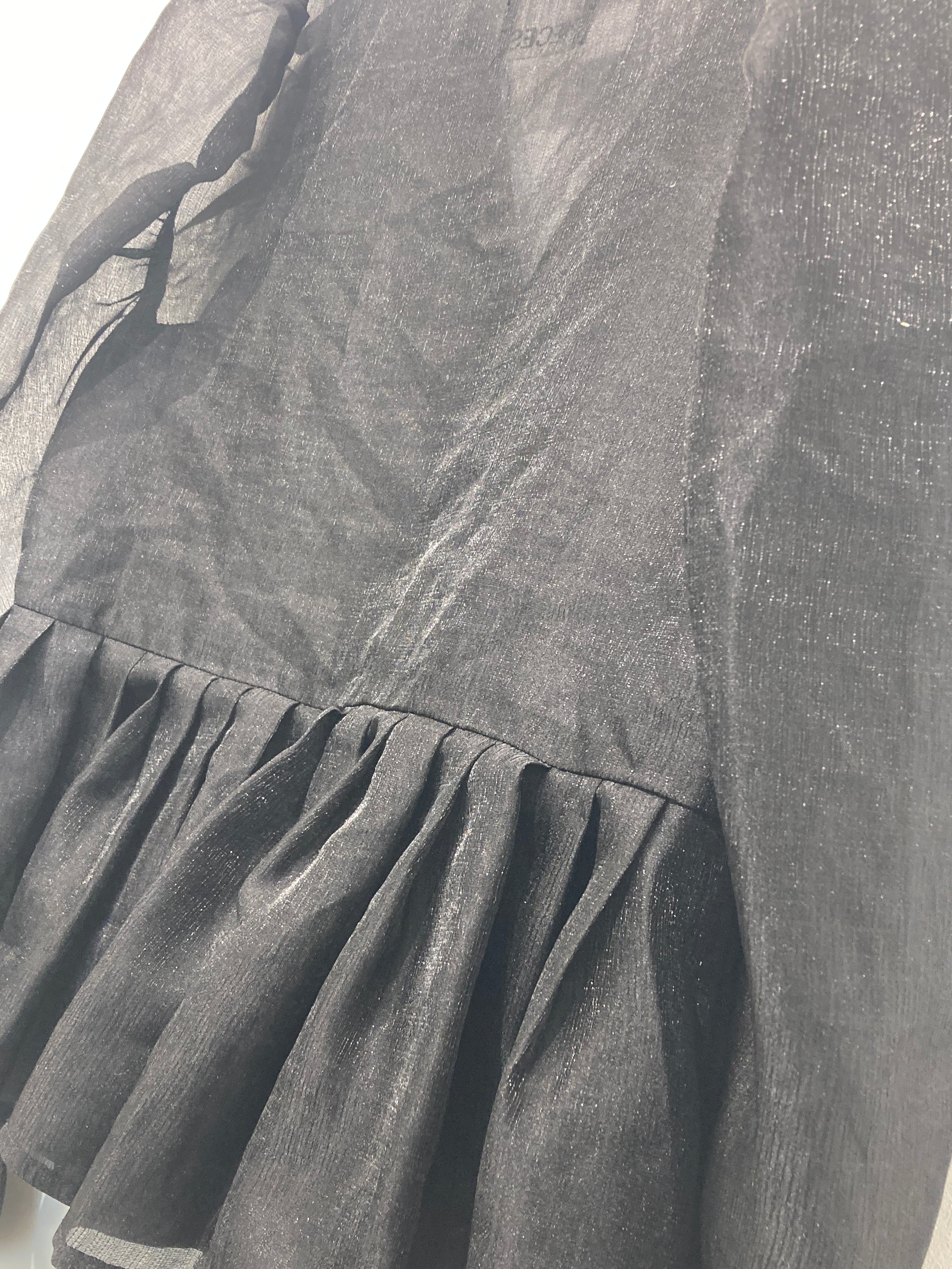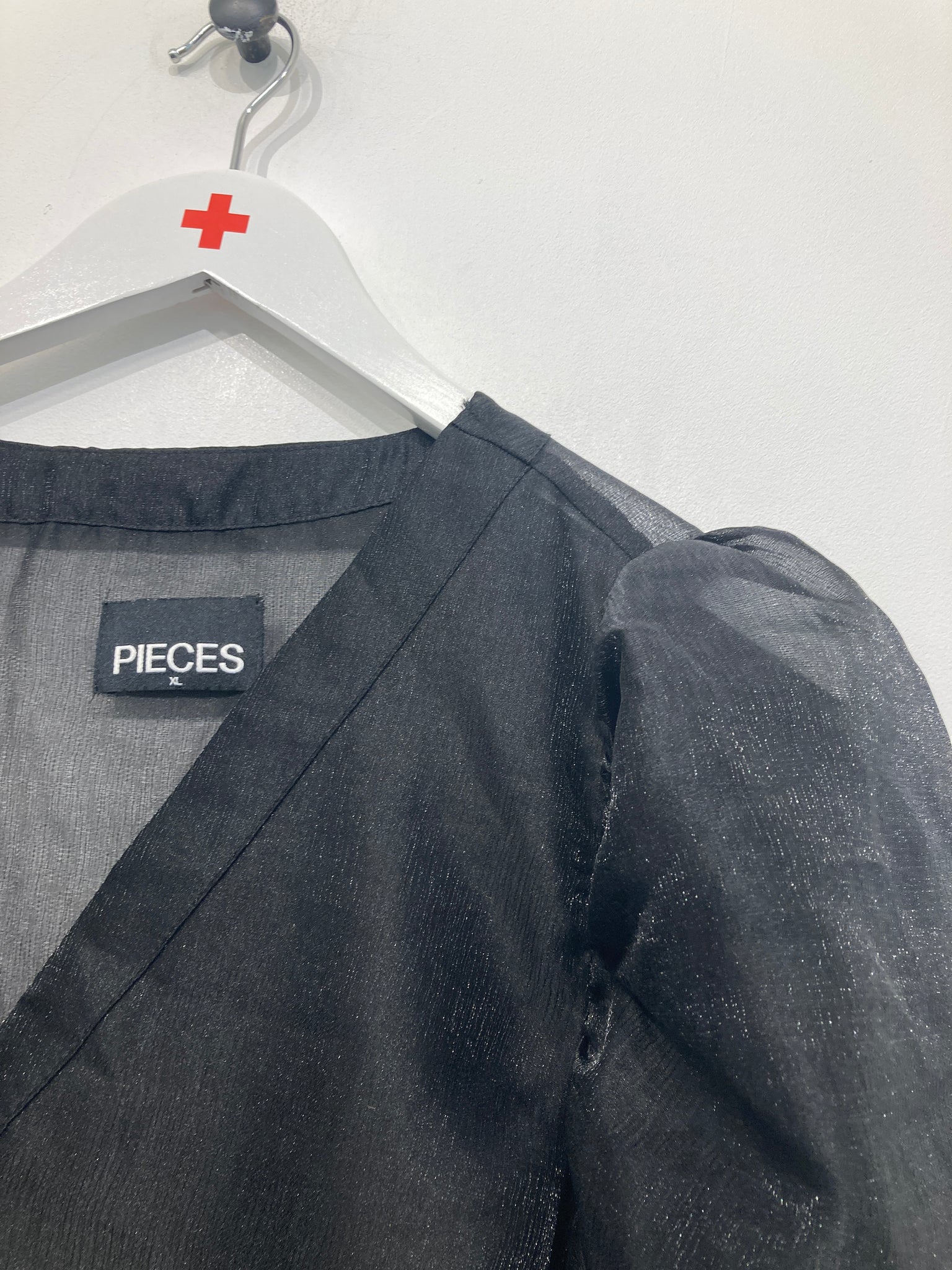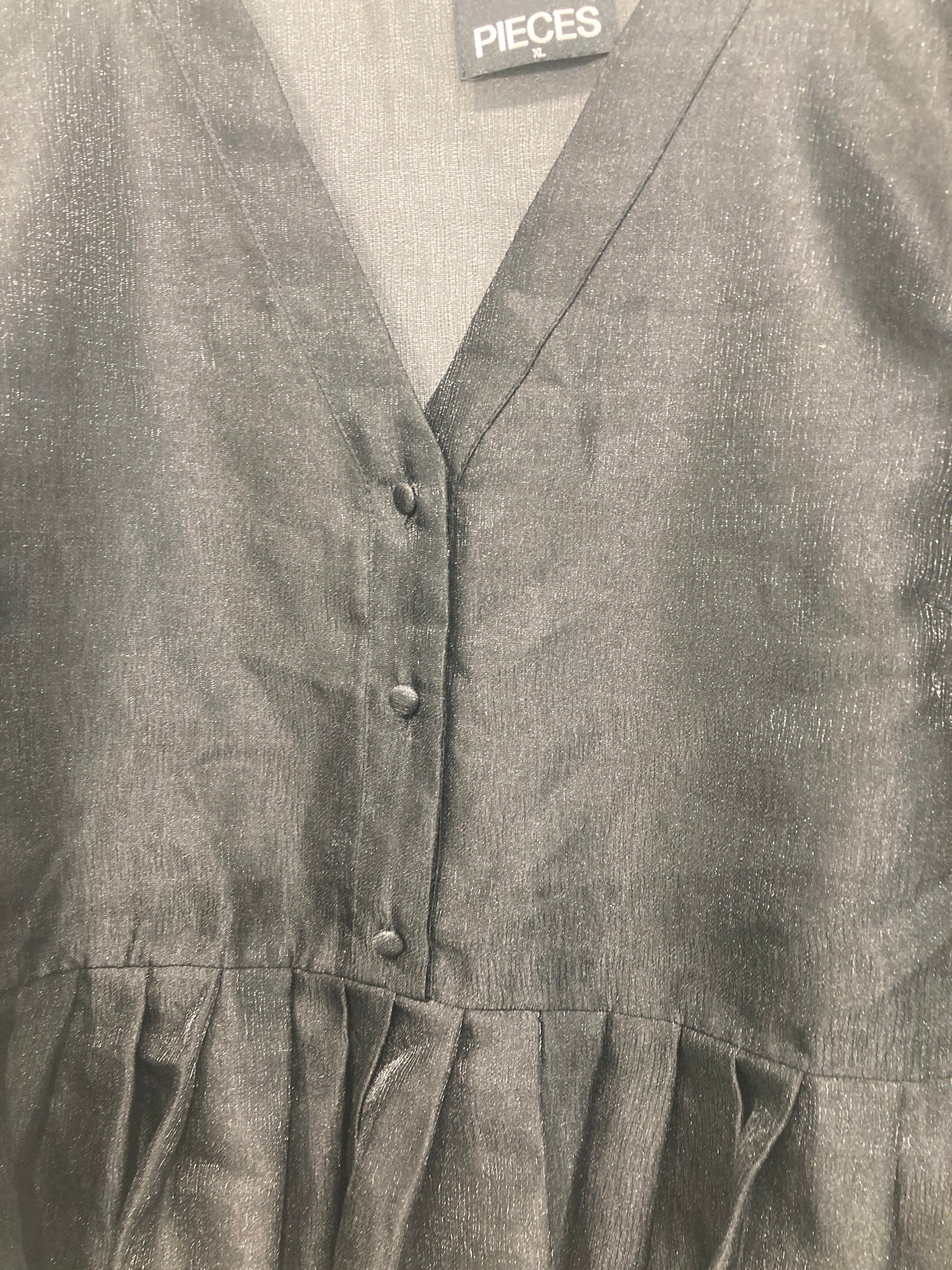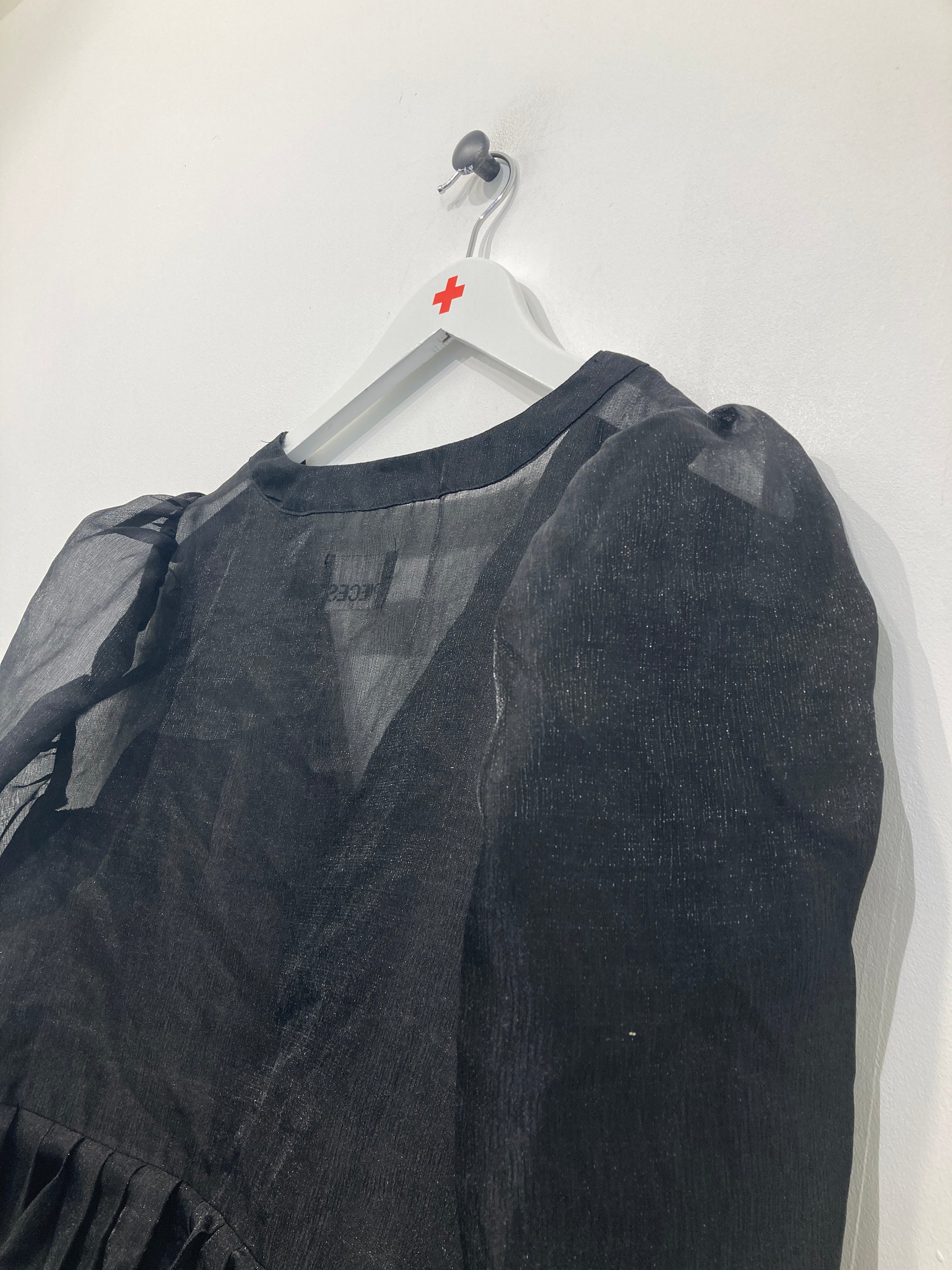 Fin gennemsigtig bluse med lange ærmer, knapper foran ved halsudskæring og vidde forneden.
