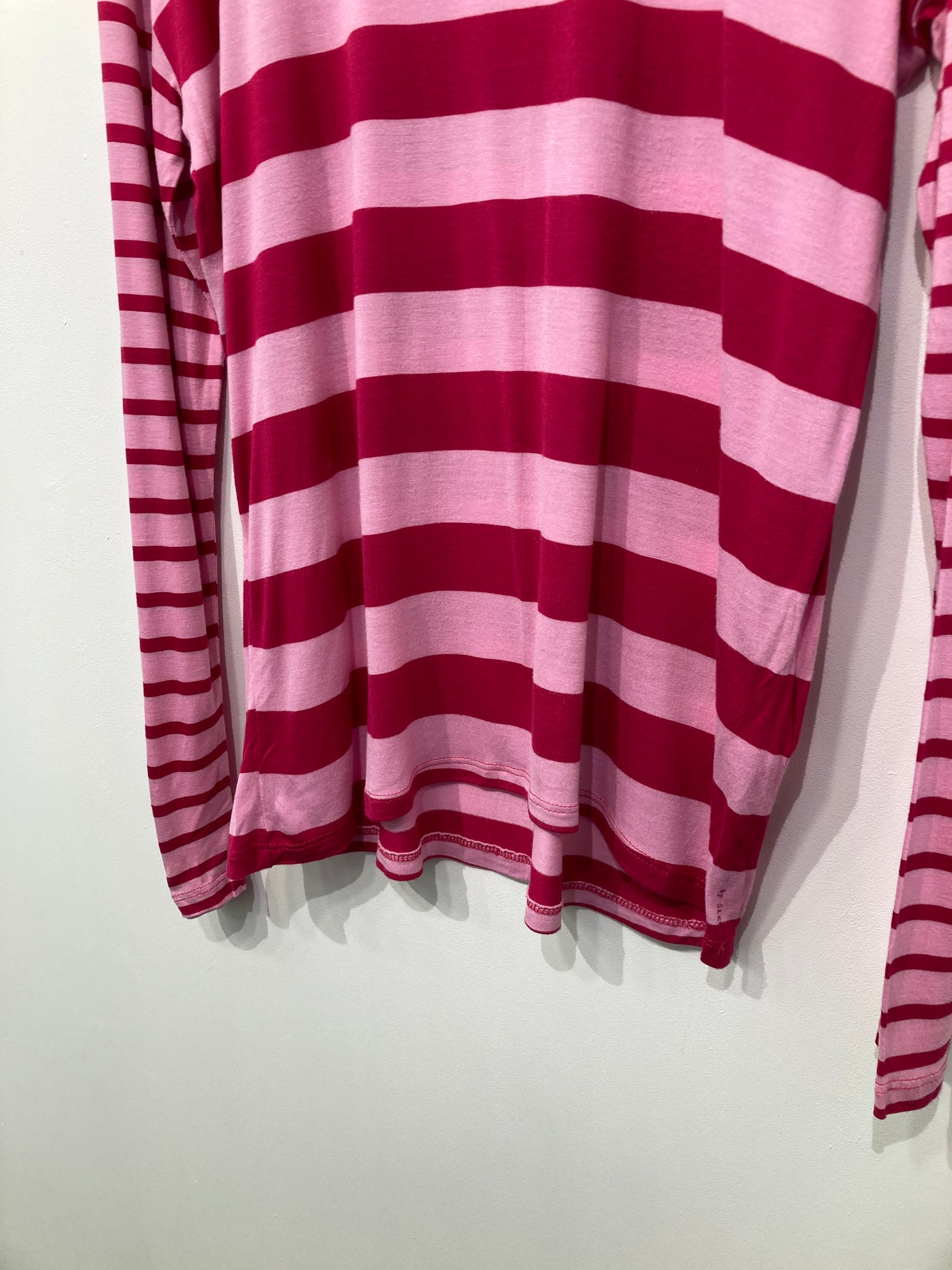 Bluse med rund halsudskæring og lange ærmer.
