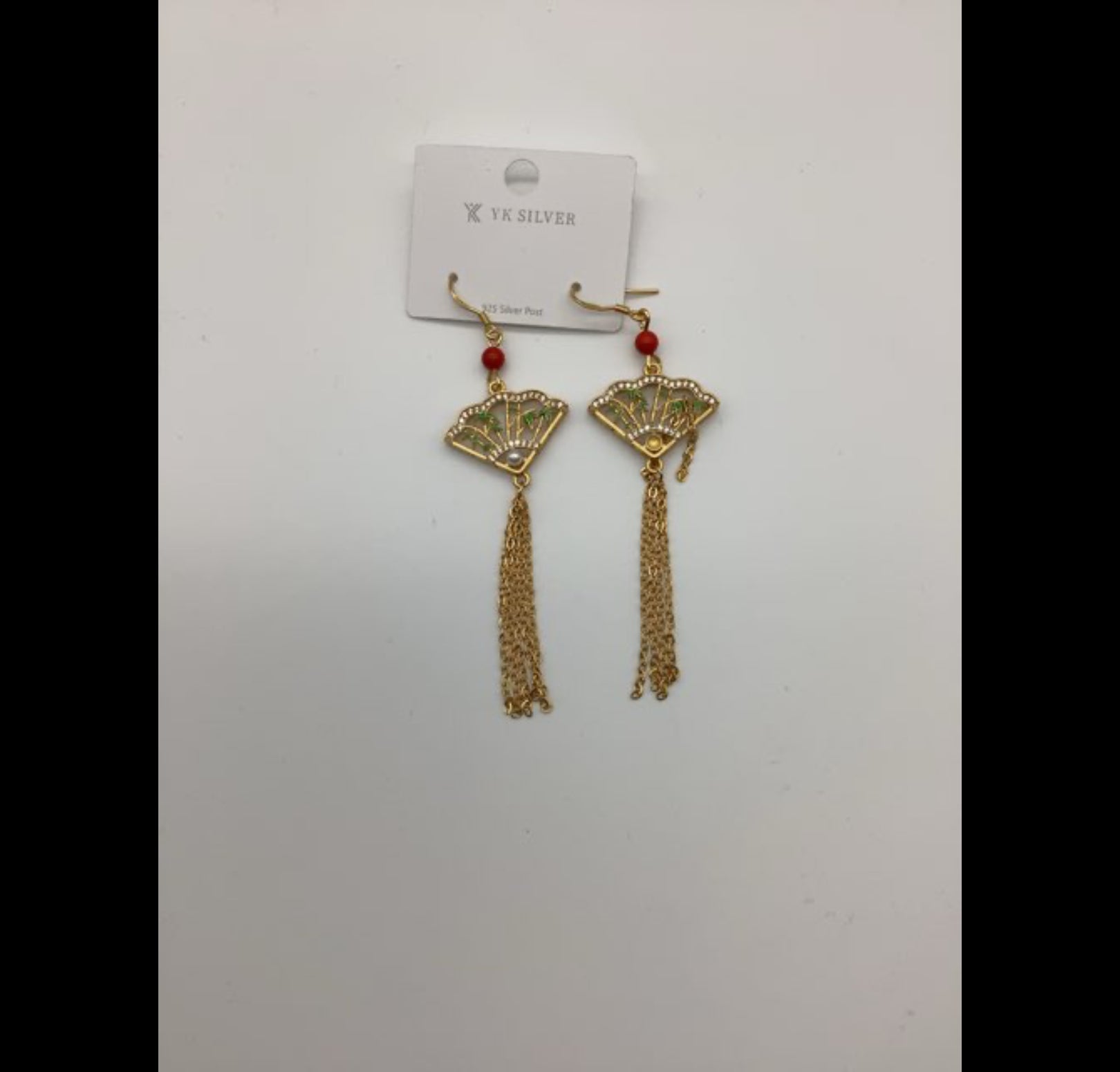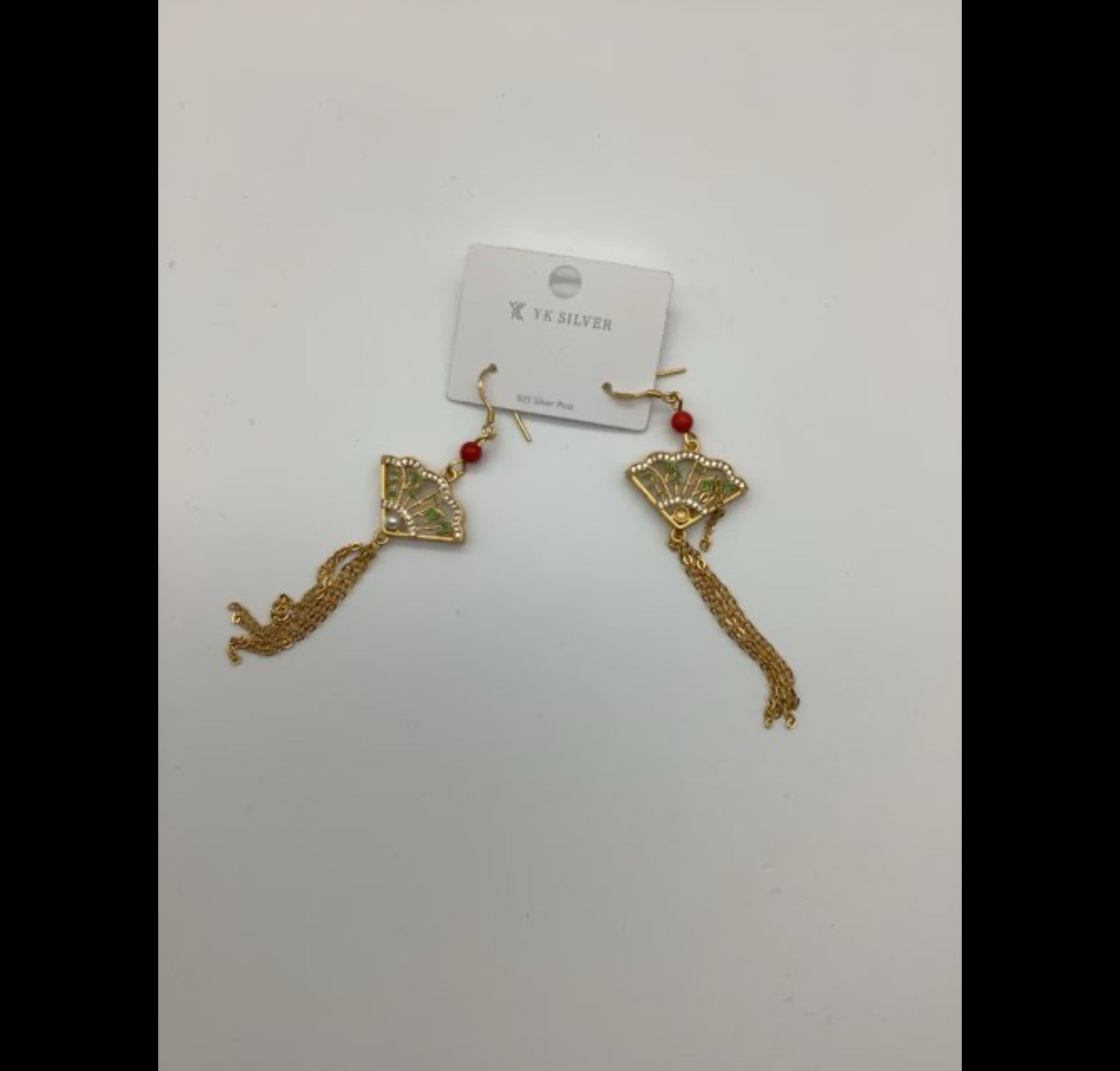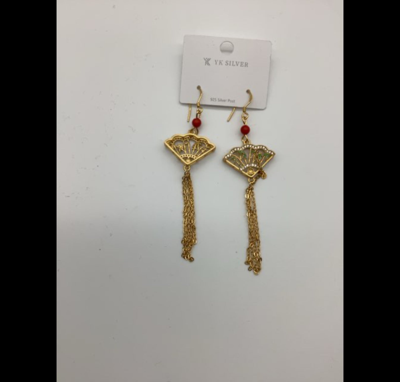 H359 Øreringene har en fanformet detalje med fine udsmykninger og kædedybe. De er lavet metal