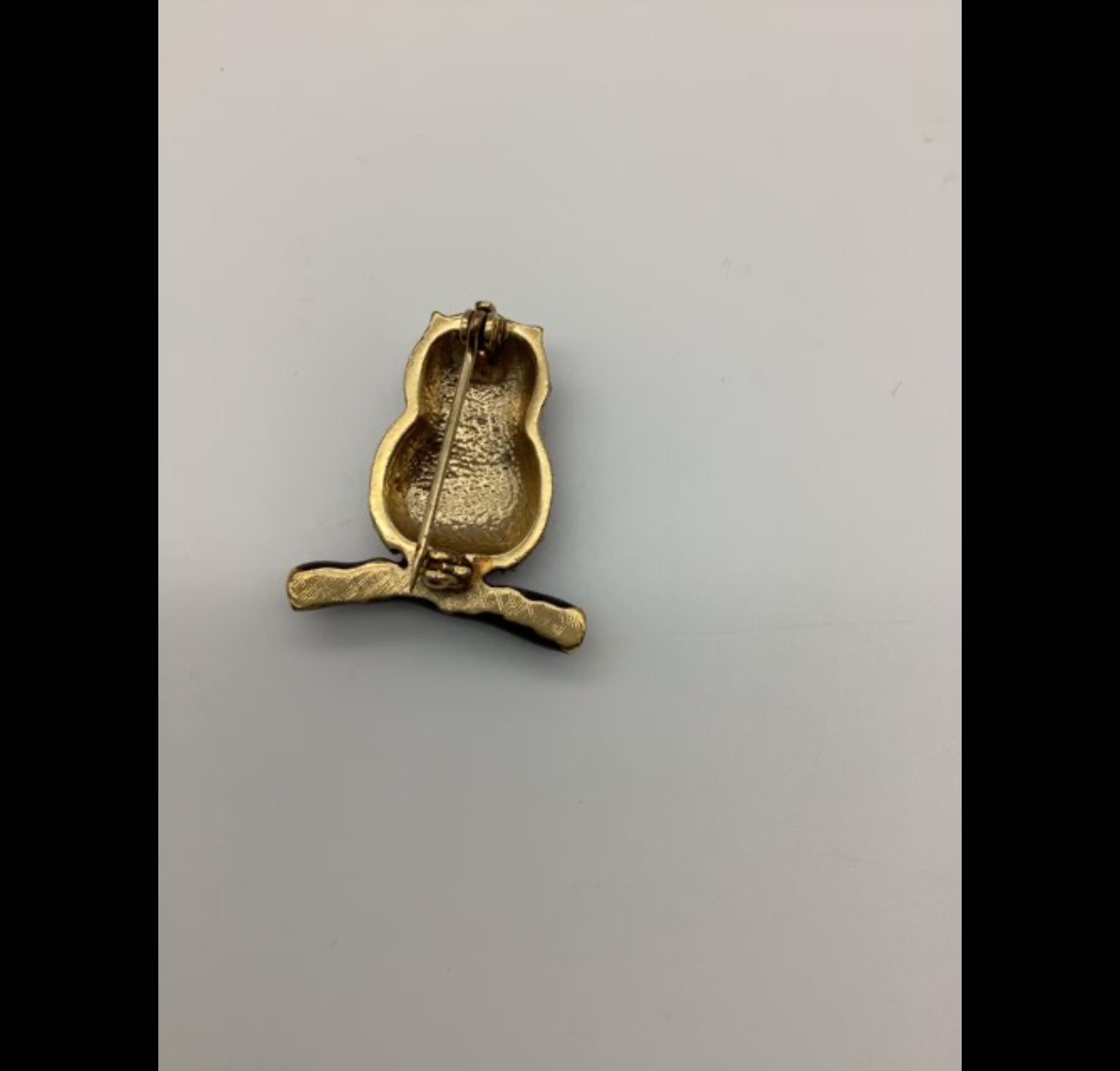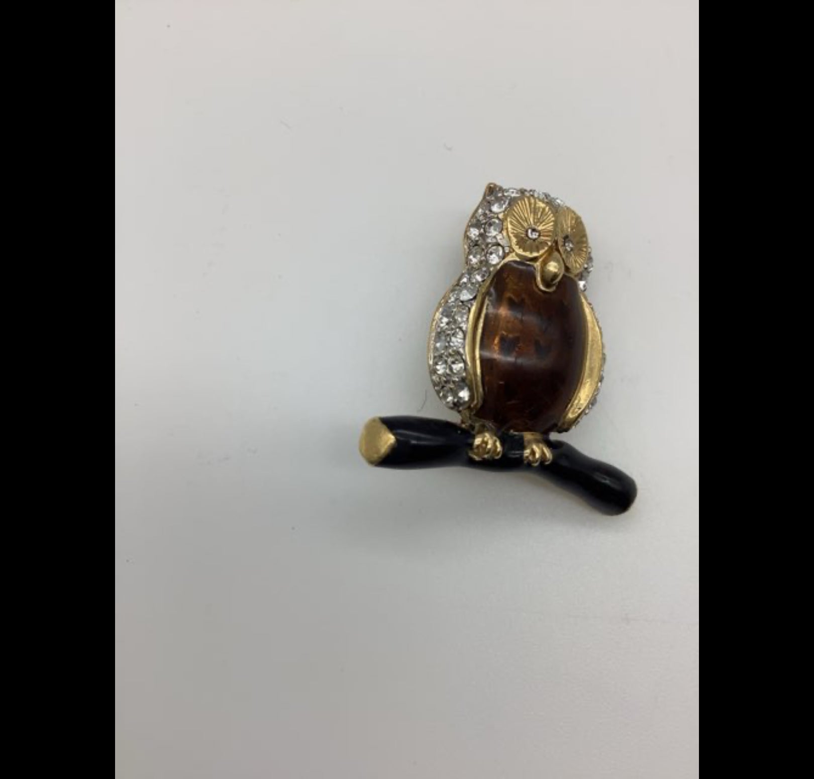 H362 Brochen er formet som en ugle med detaljer i guld og klare rhinsten.
