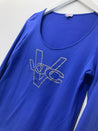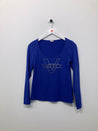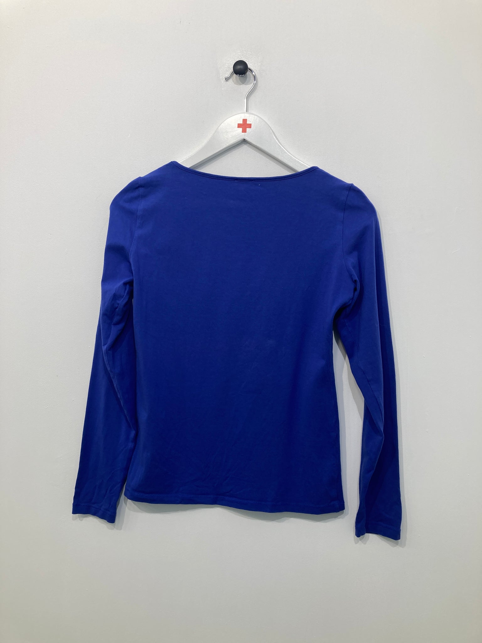 Langærmet bluse med rund hals og similisten foran. Mangler vaskemærke.