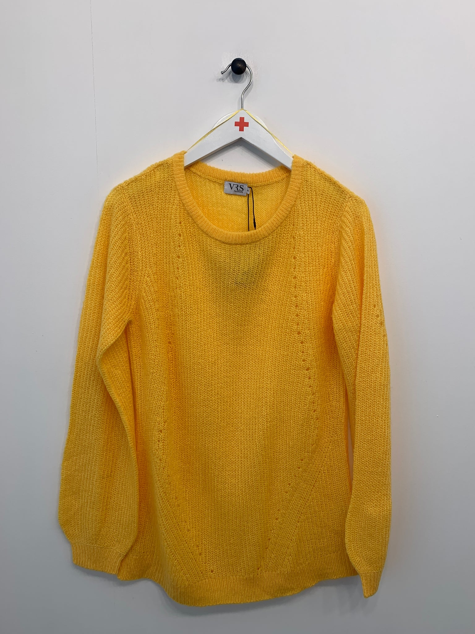 Pæn striktrøje med rund hals og lange ærmer.