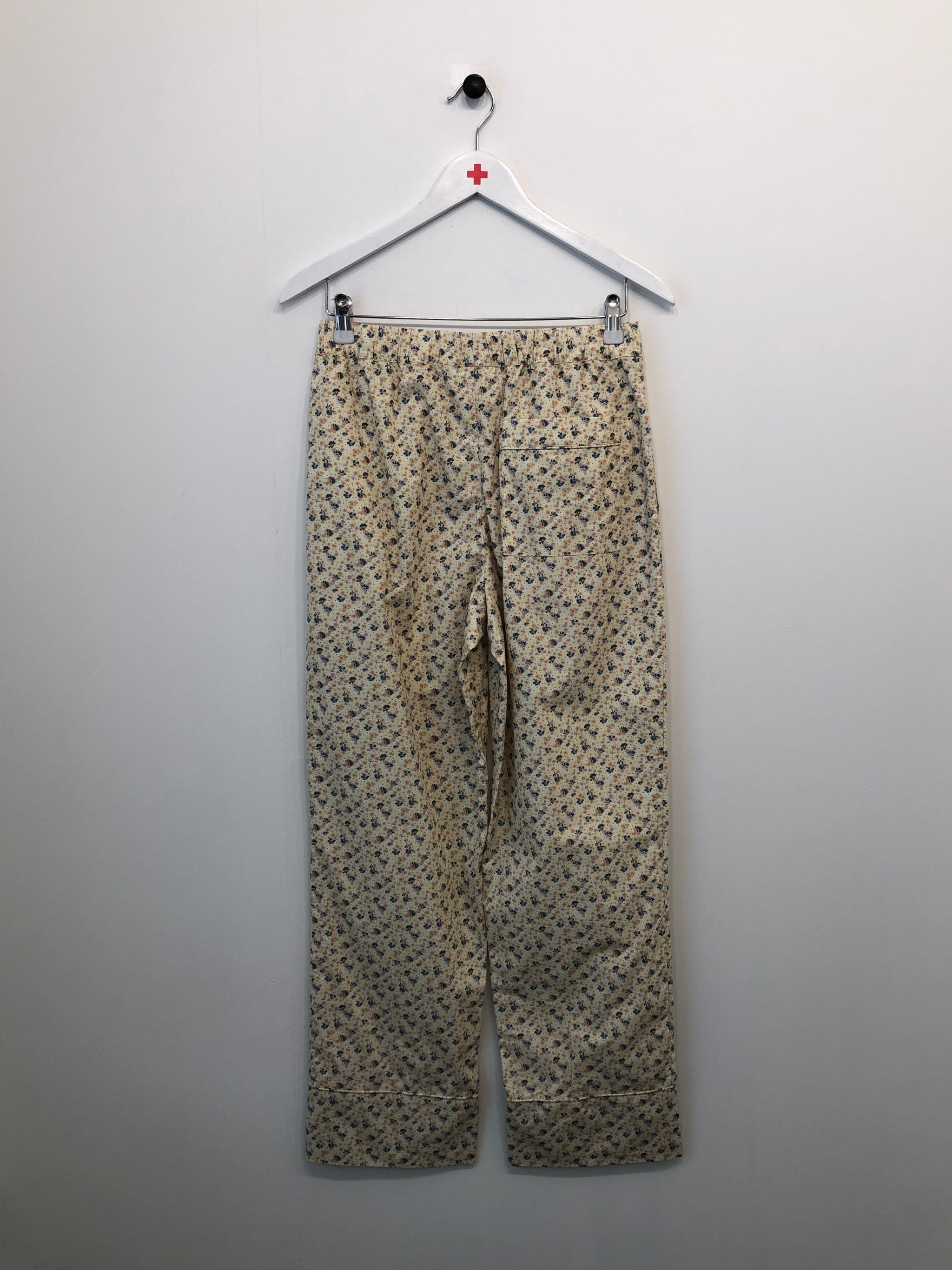 Mønstrede bukser med lommer bagpå. Vaskemærke mangler.