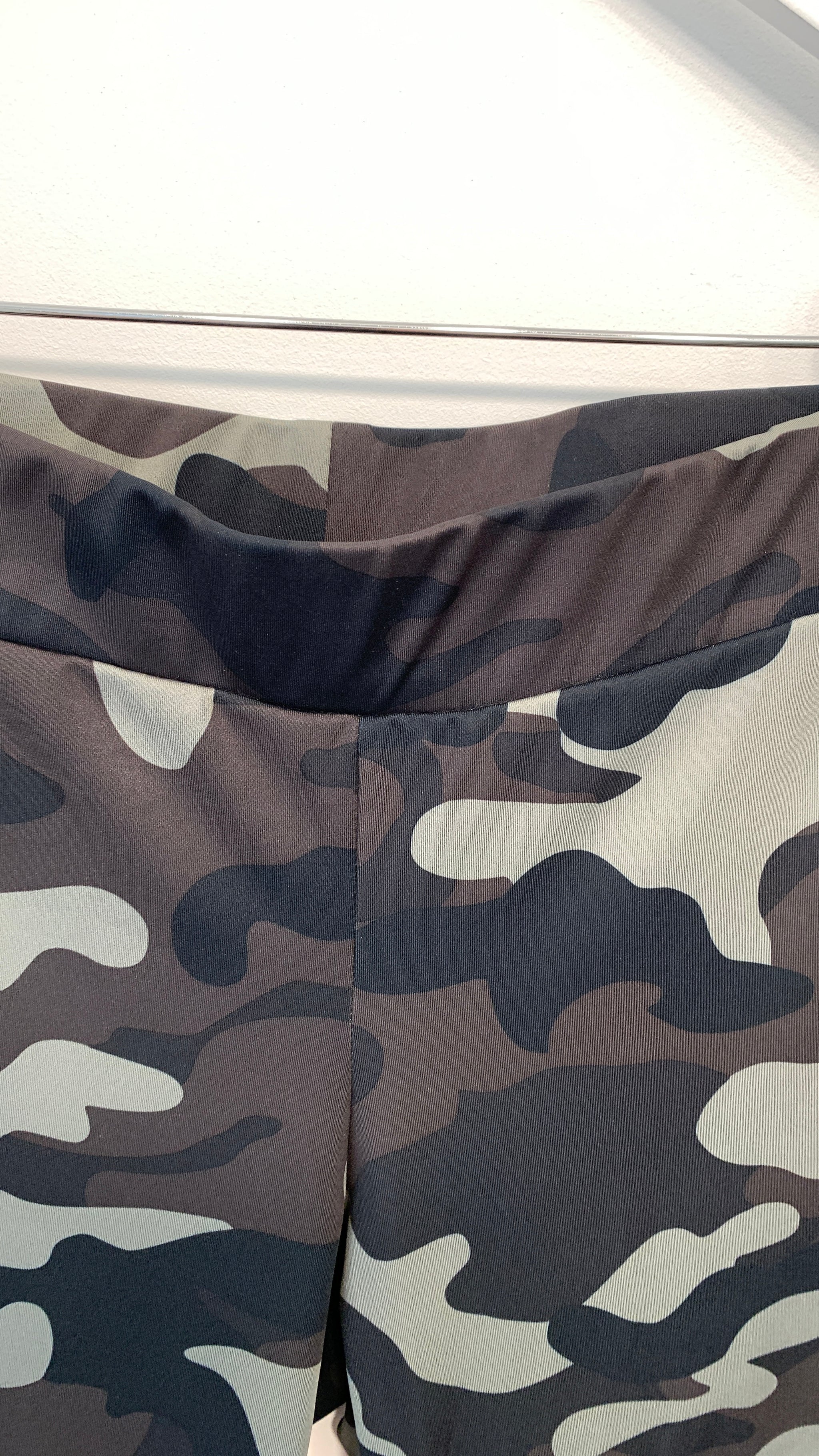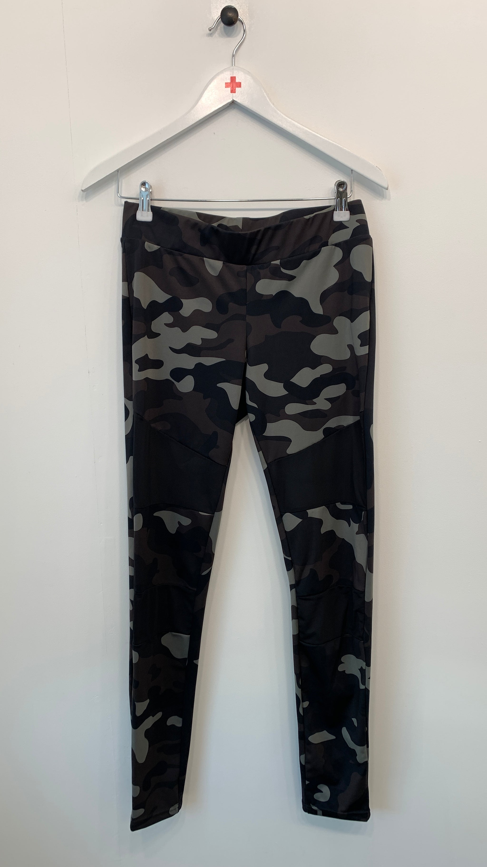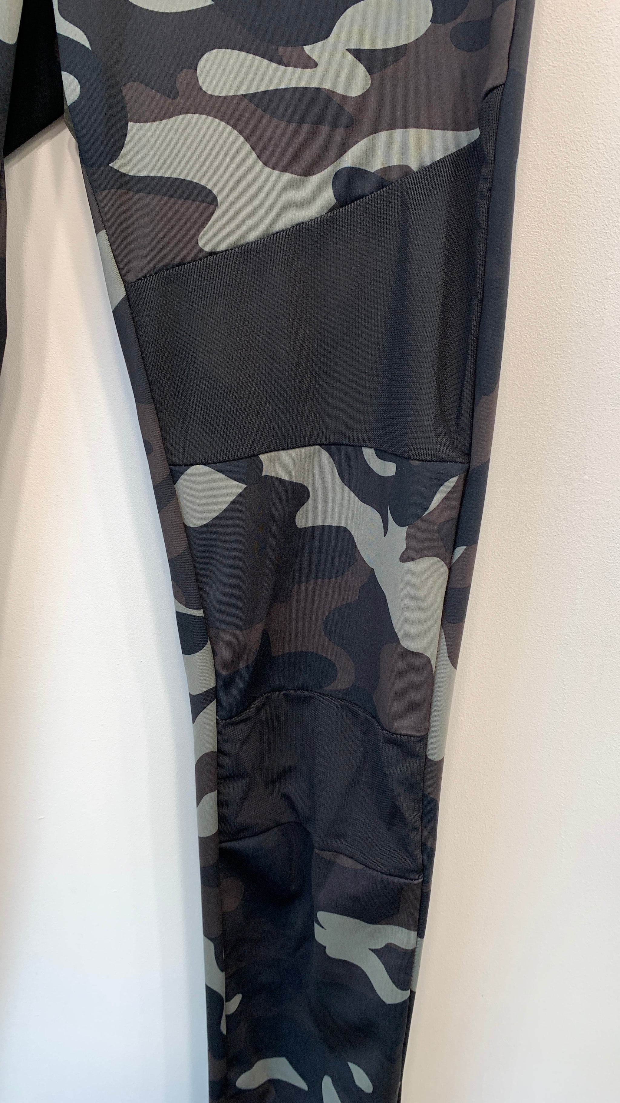 Army leggings med elastik i taljen og design med sort stof ved lår og knæ