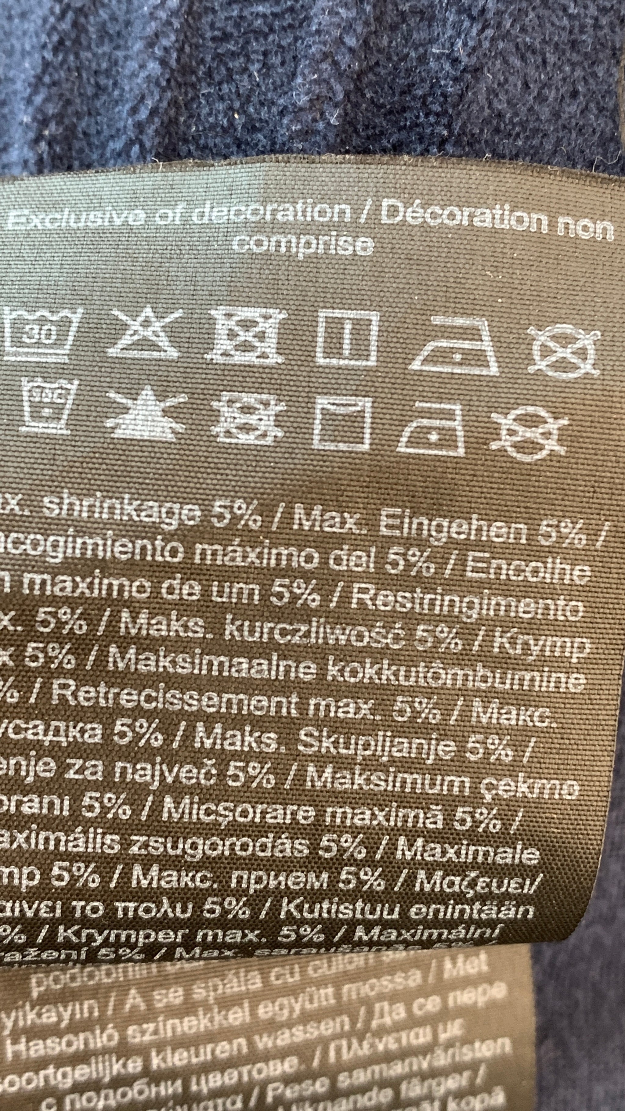 Da vi sælger brugt tøj, der er blevet vasket, kan vi ikke garantere, at størrelsesangivelsen ligger inden for en standardskala.