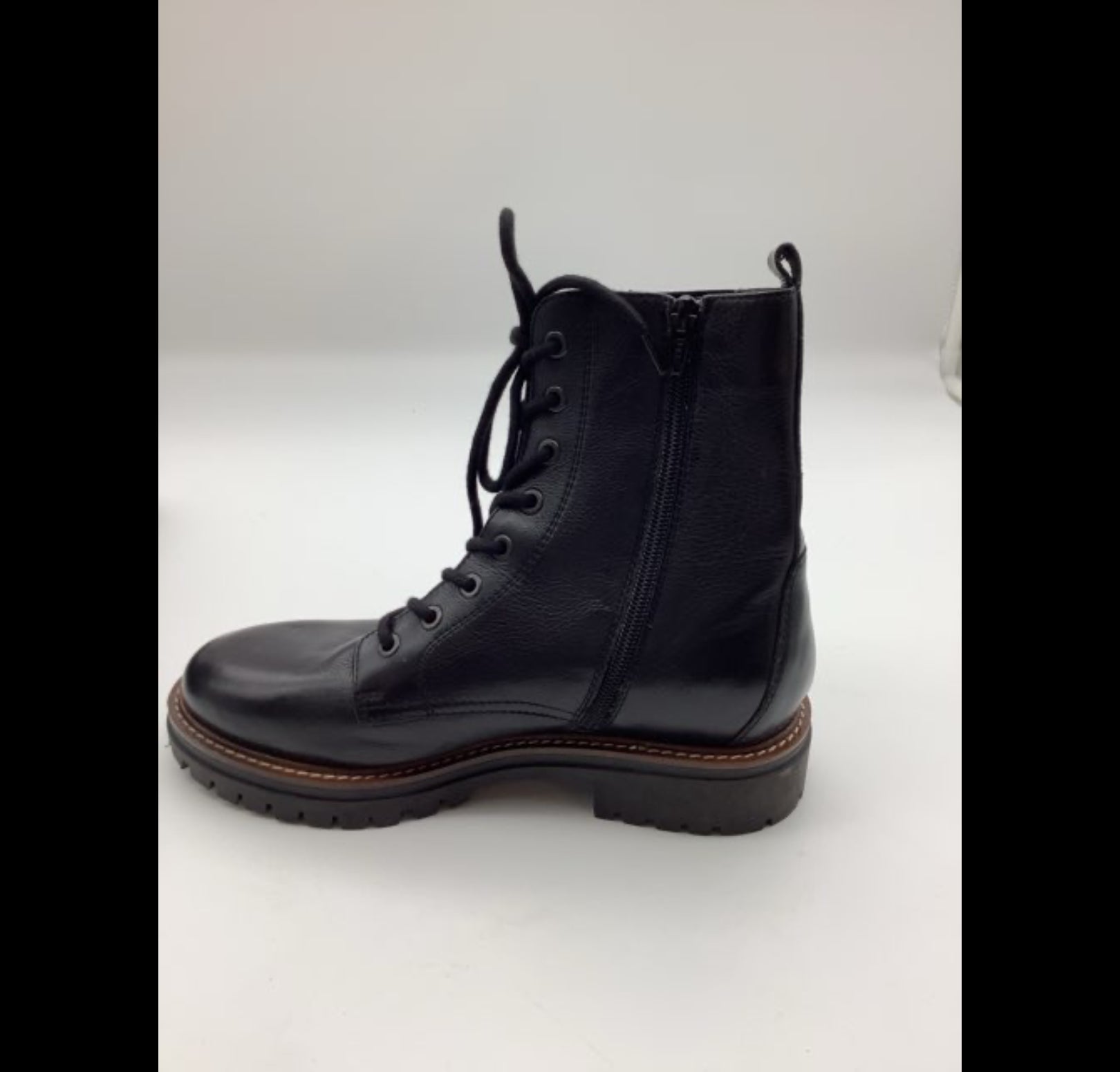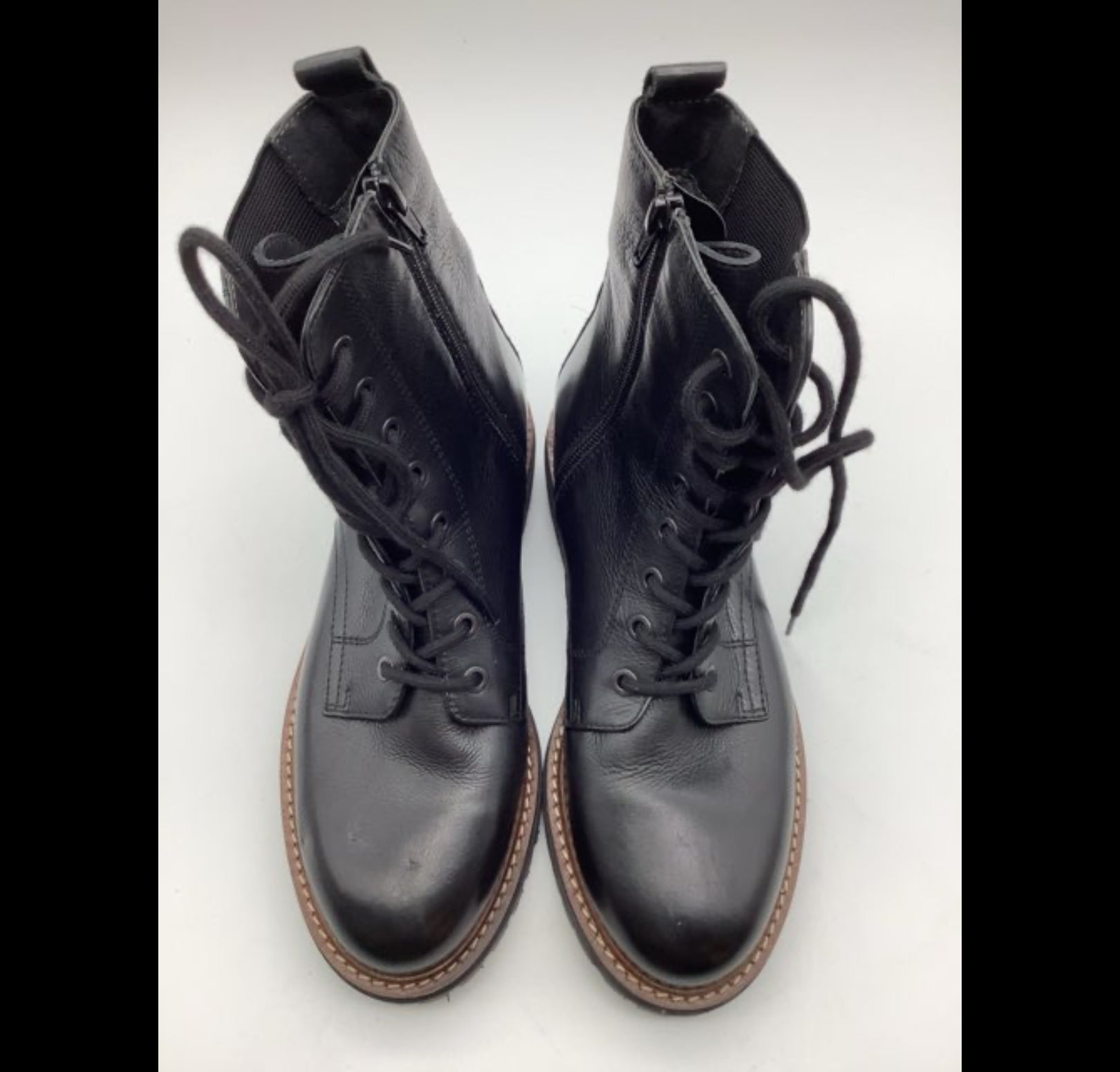 H862 Støvle i sort læder med snørre og slidstærk sål. Som nye bortset fra nærke ved højre tå.