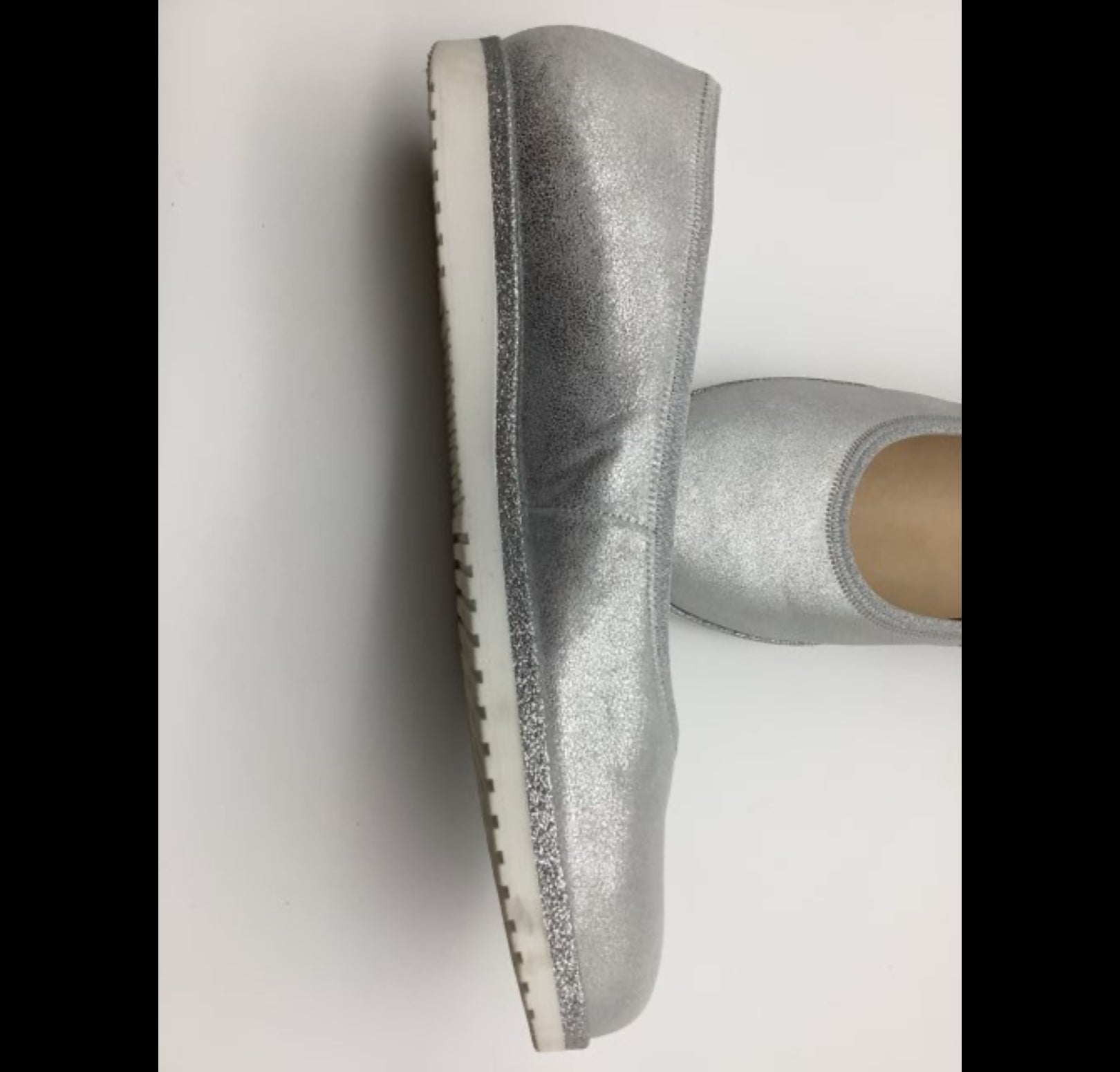 H825 Skoene er flade med en glitrende overflade og blød indersål for komfort.