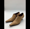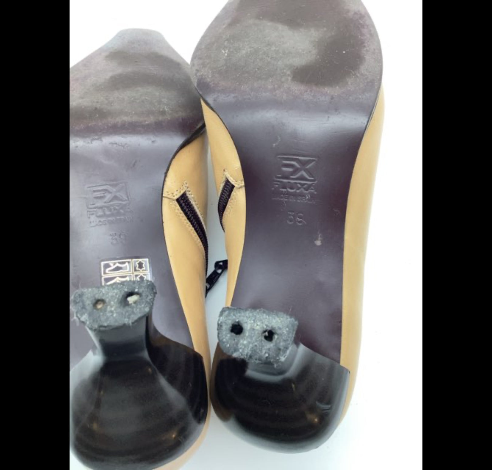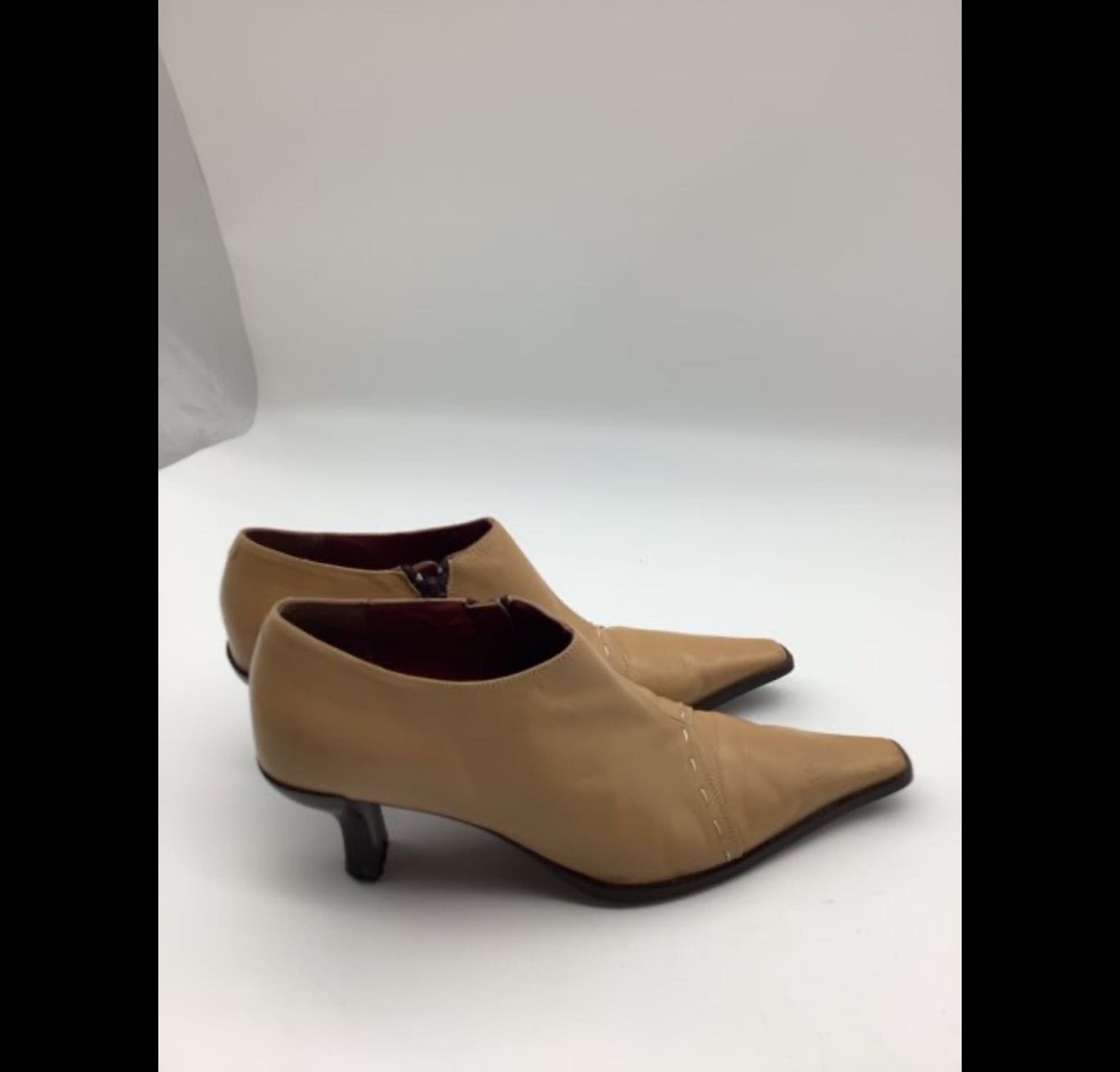 H844 Skoene har en spids tå og hæl, med en lynlås på siden. Materialet er læder. Mangler sål på hæl