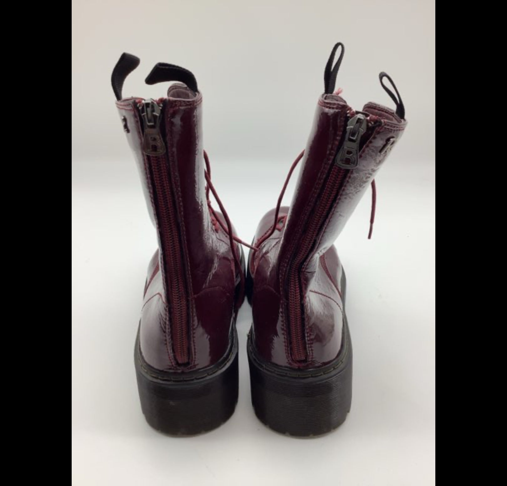 H867 Støvlerne har en skinnende overflade med snørebånd og kraftig sål. Materialet er kunstlæder.