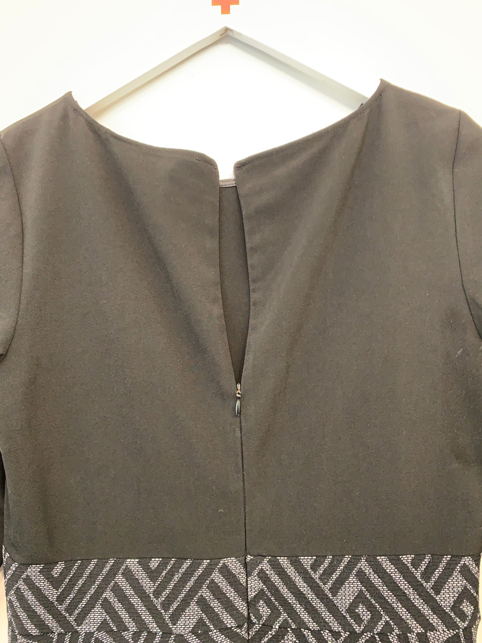 Todelt kjole med mønstret underdel og lynlåslukning i nakken