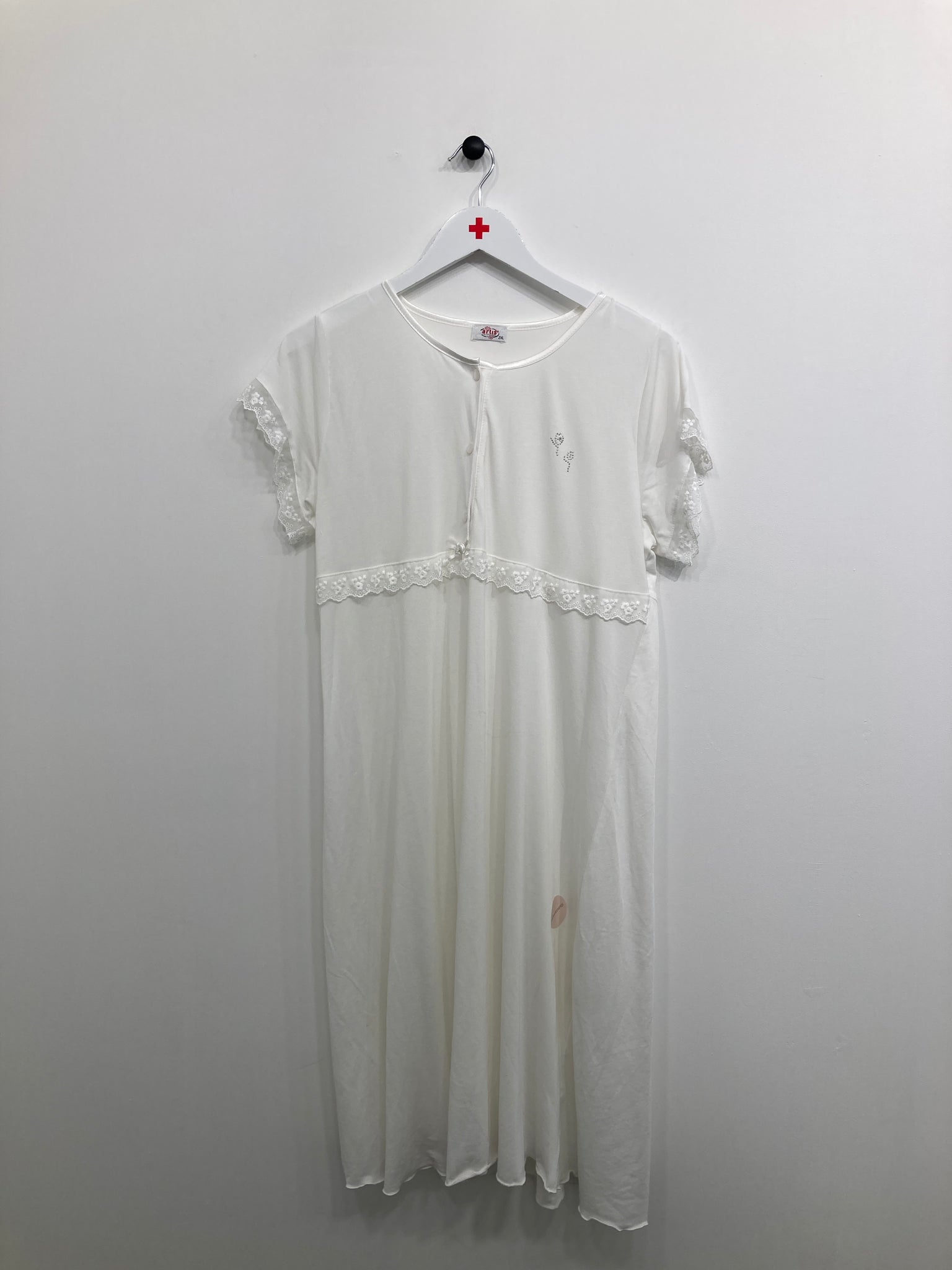 Da vi sælger brugt tøj, der er blevet vasket, kan vi ikke garantere, at størrelsesangivelsen ligger inden for en standardskala.