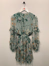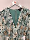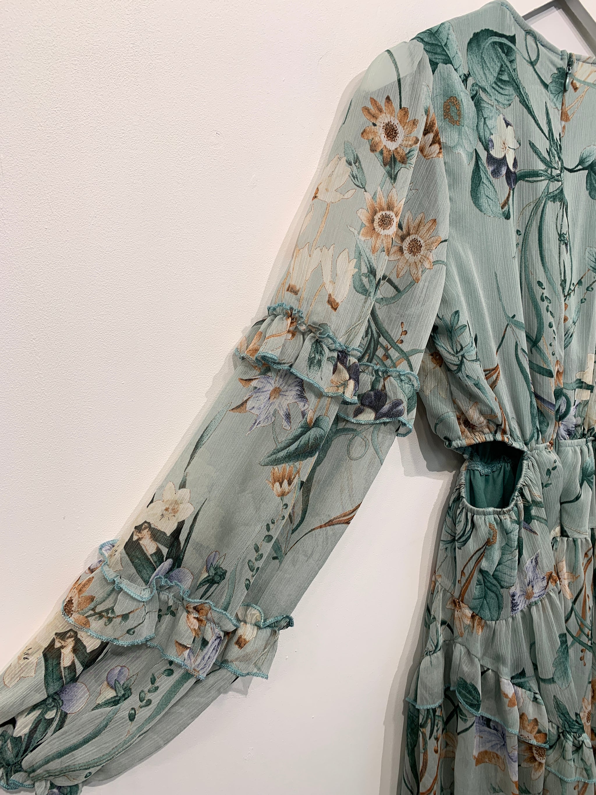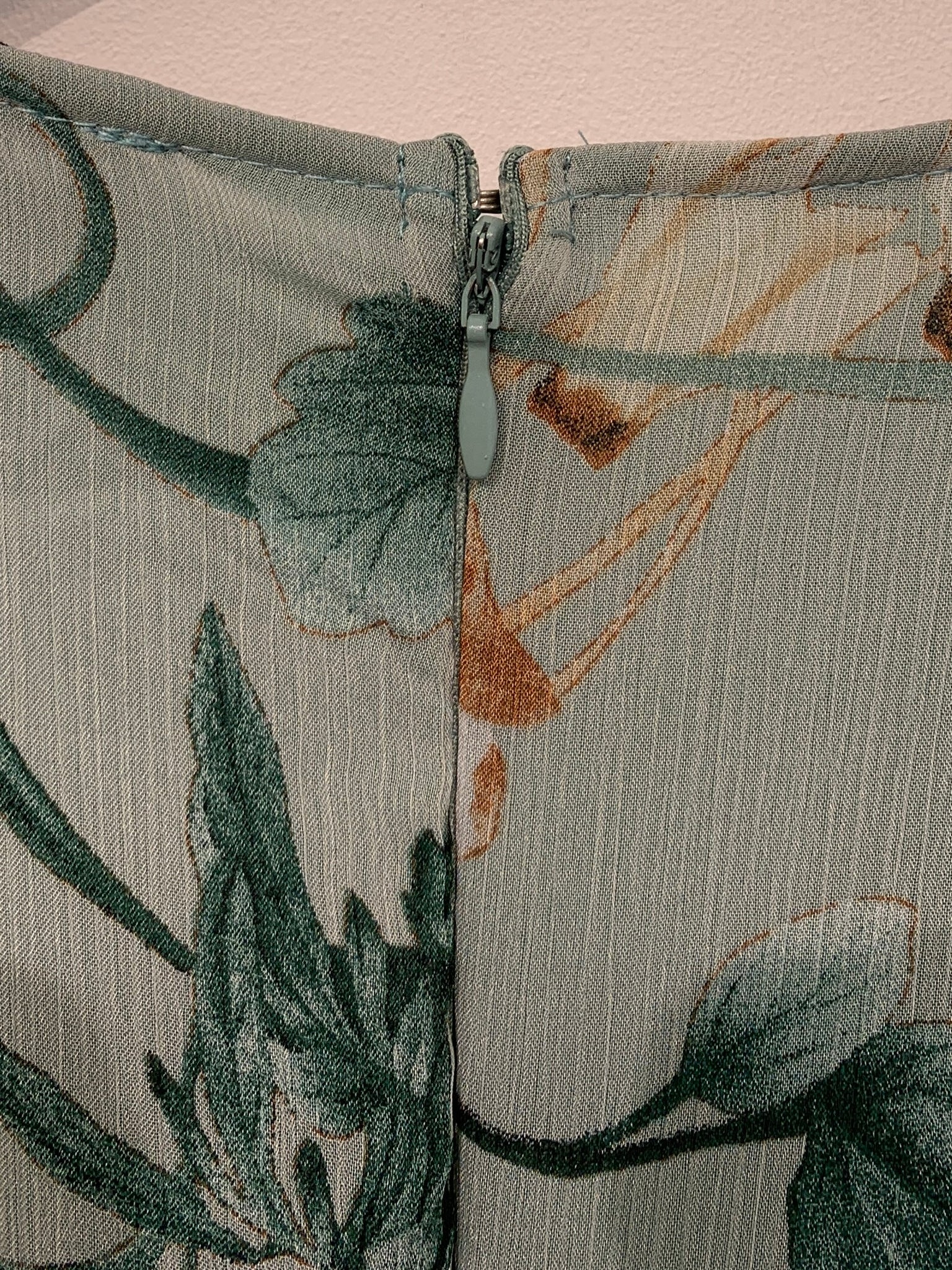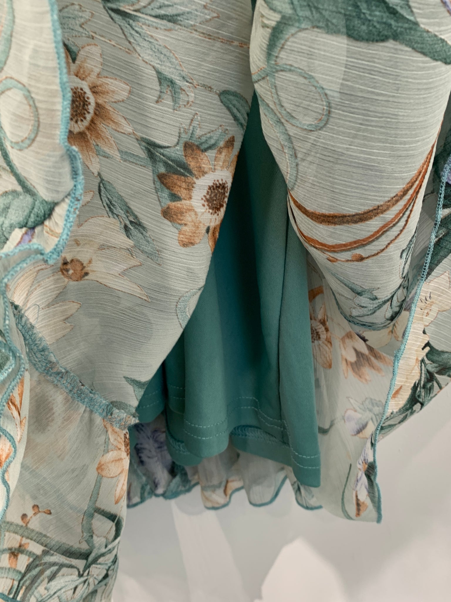 Fin kjole med flæser. Kjolen er åben i siderne af taljen.