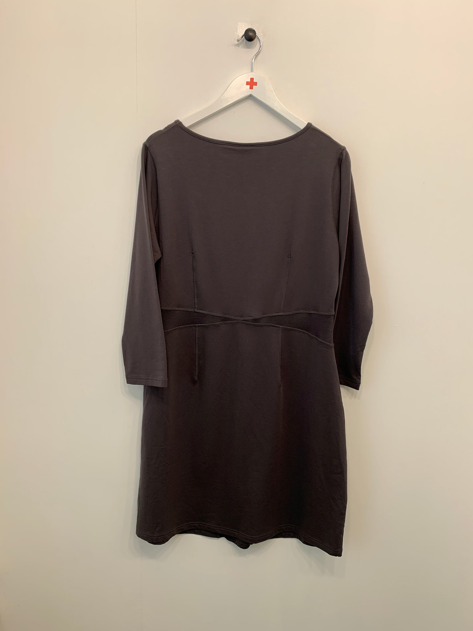 Kort kjole med rund hals og design i mesh stof på front og i taljen