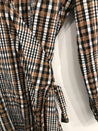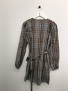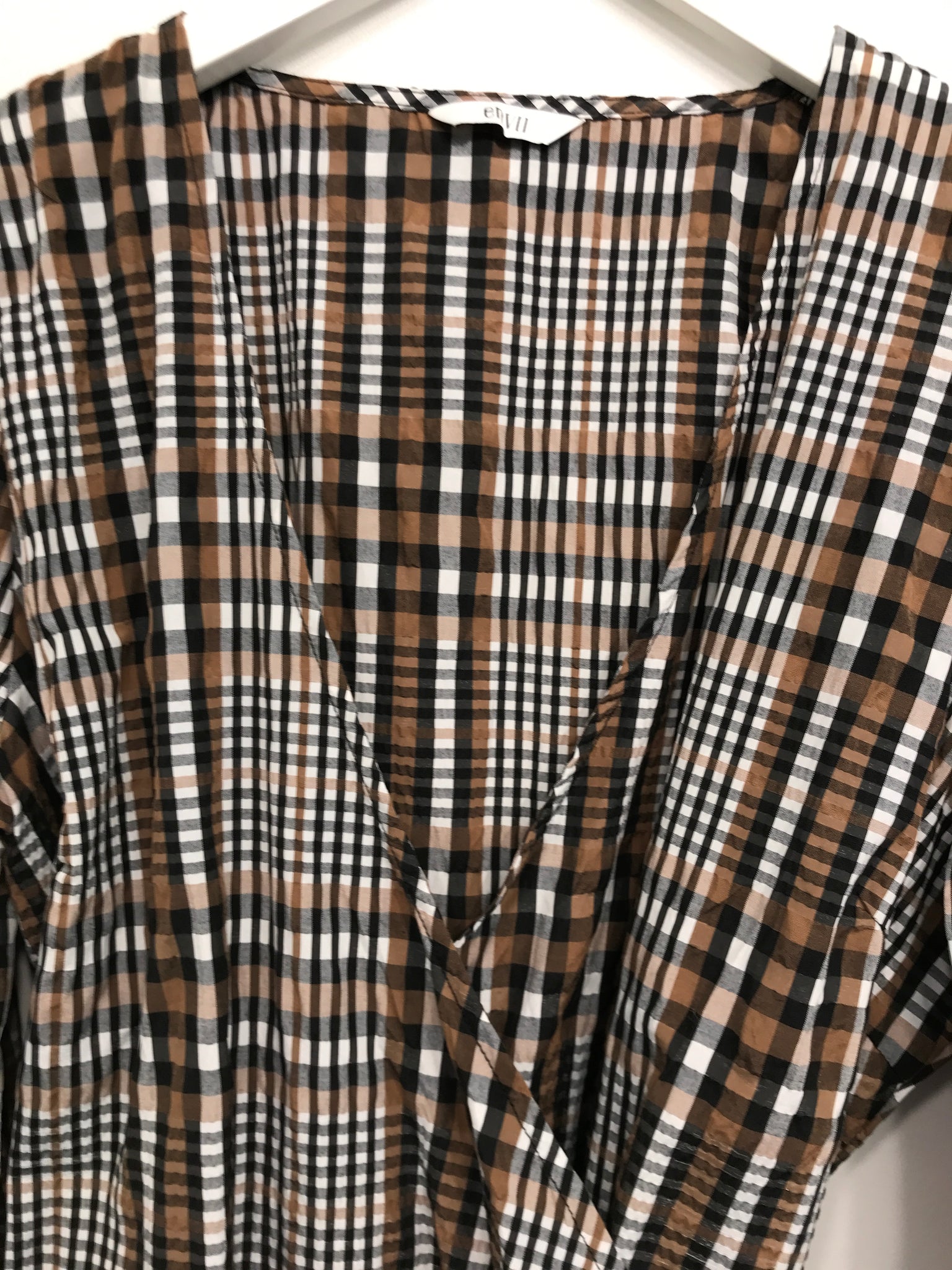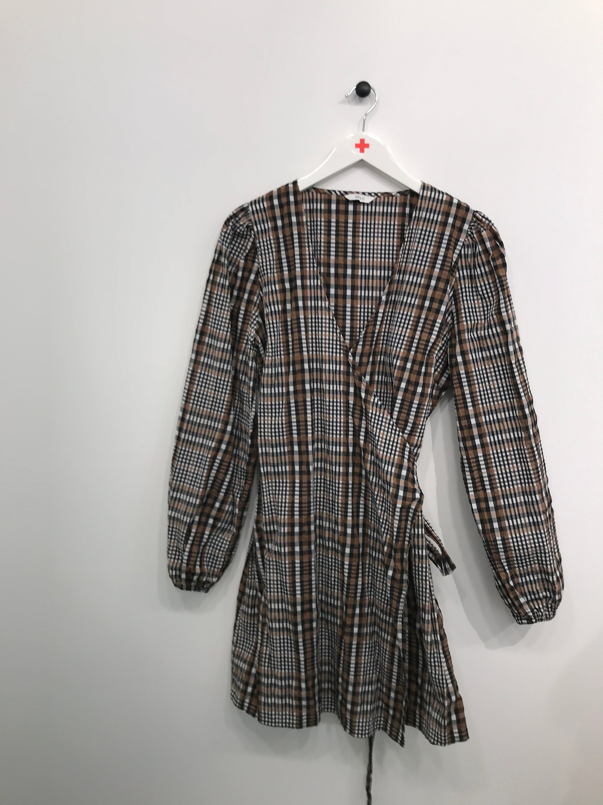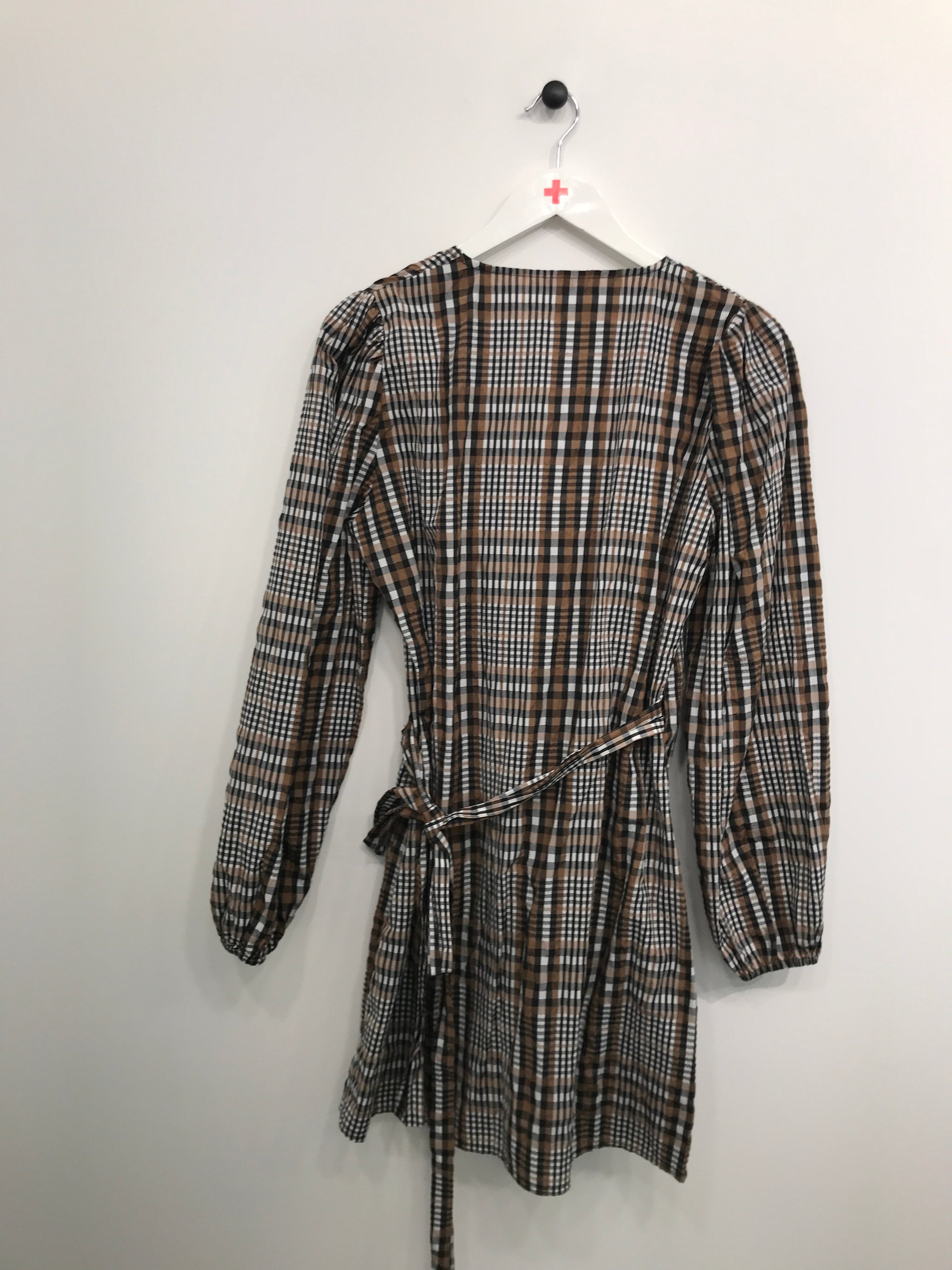 Kort slå-om kjole med lange ærmer, der afsluttes med elastikkant.