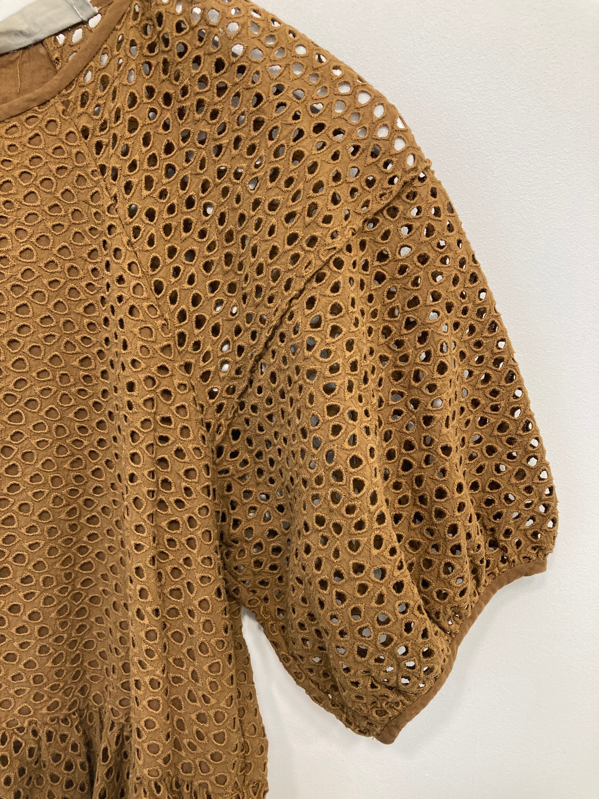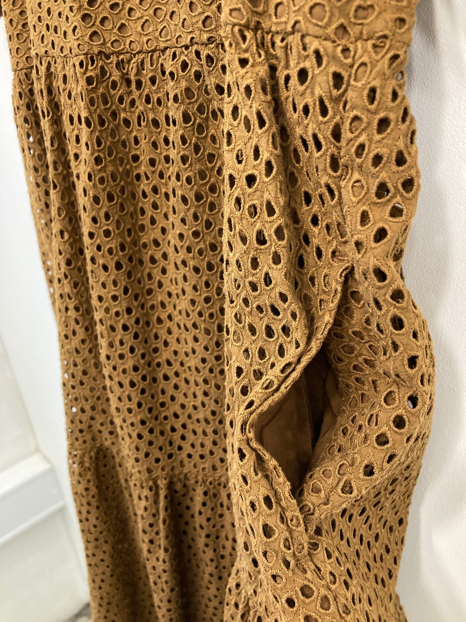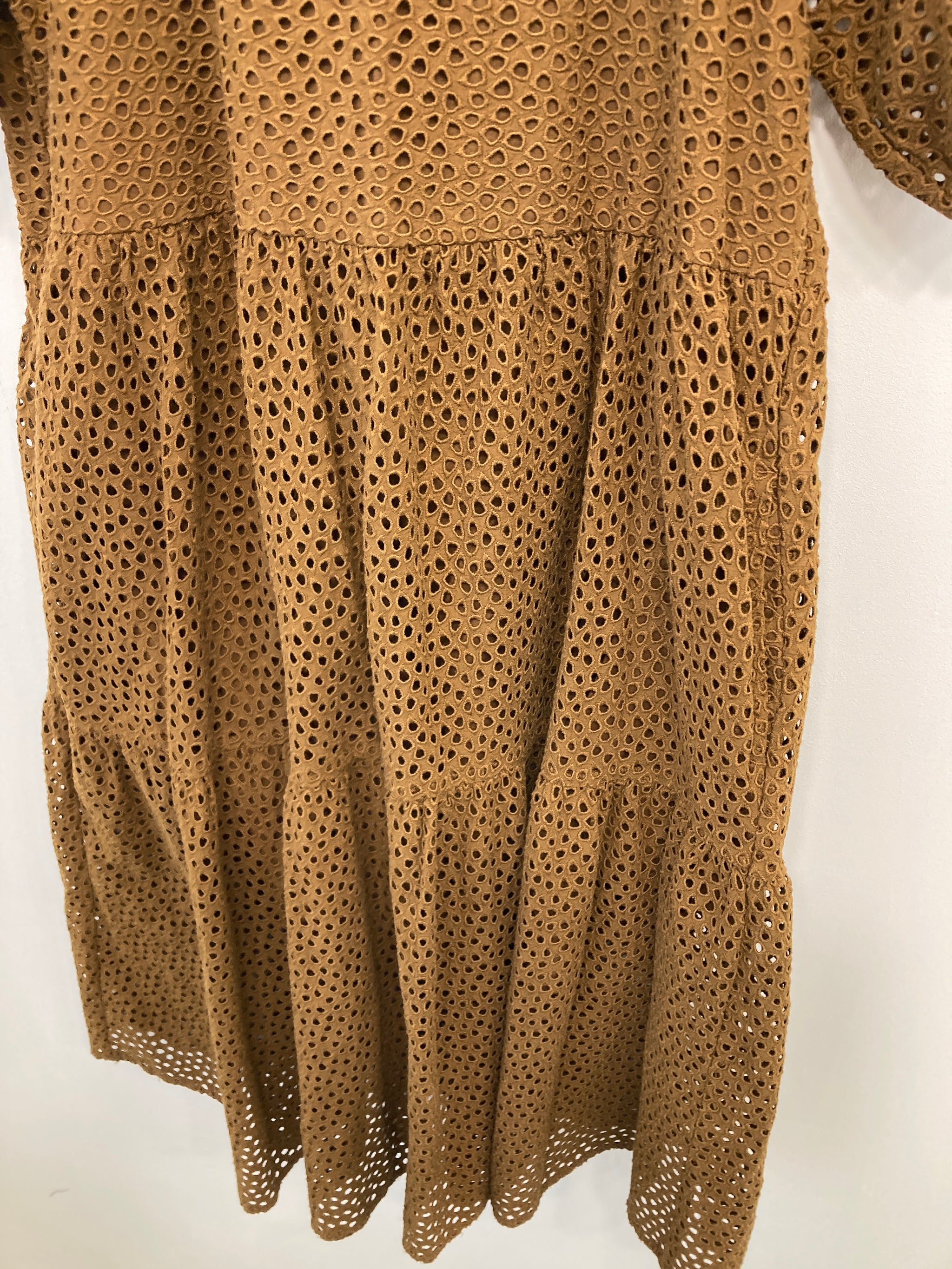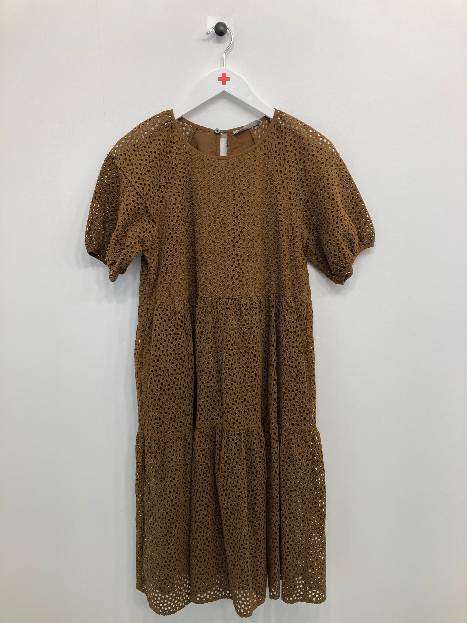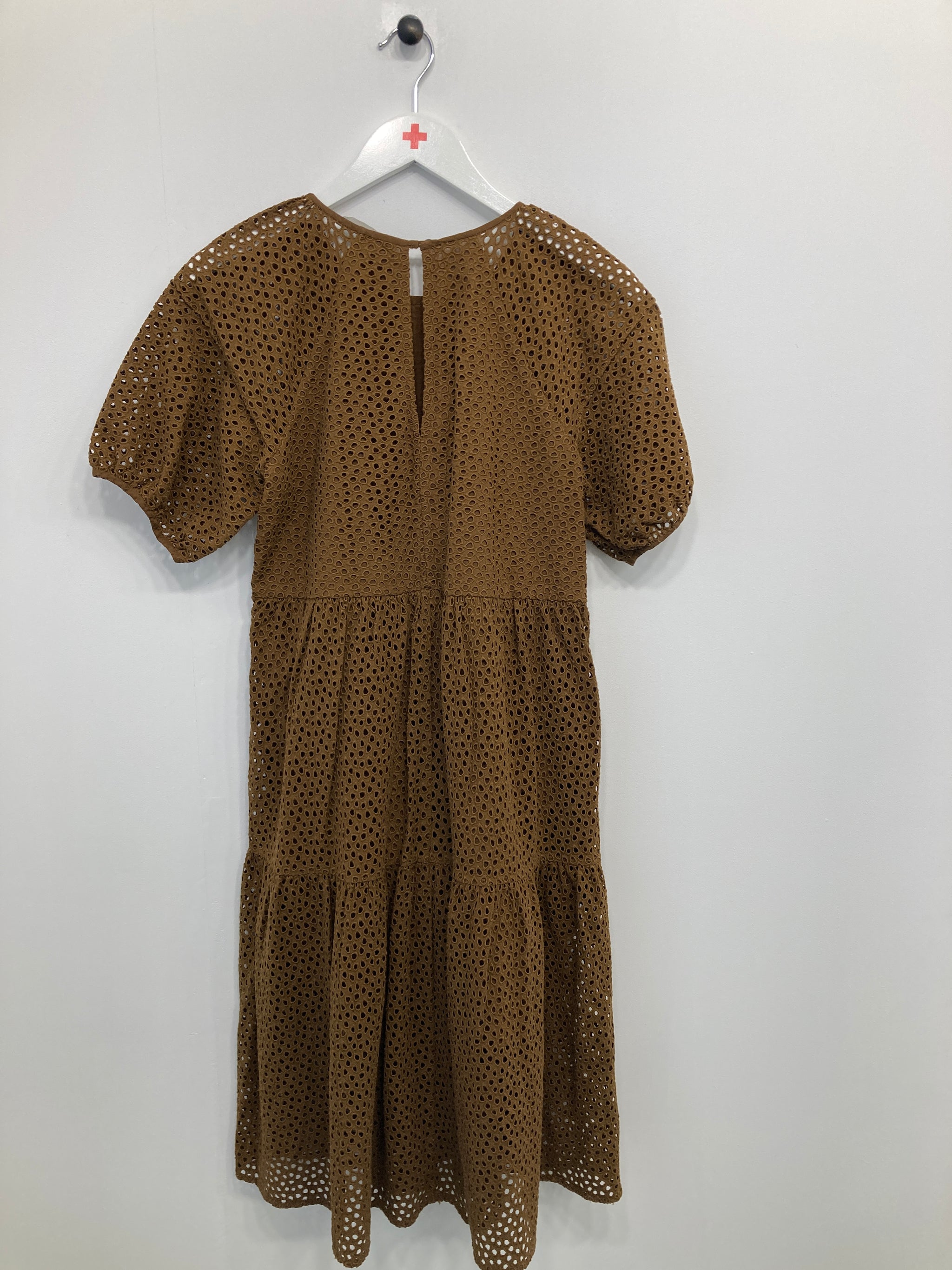 Pæn kjole med korte ærmer og knaplukning bagpå.