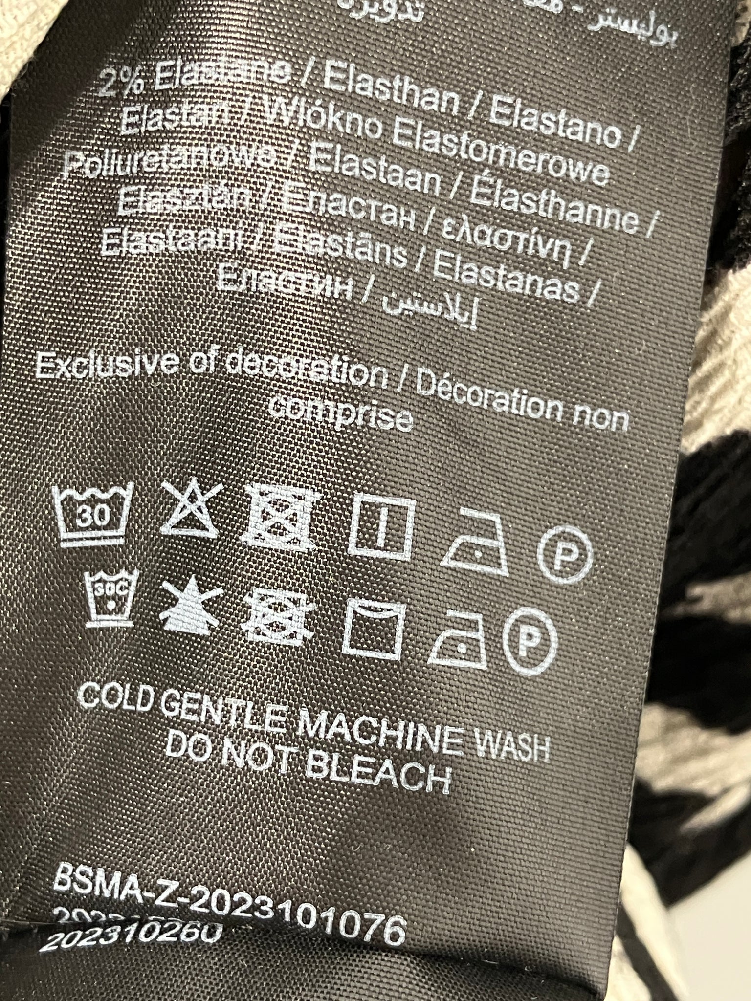 Da vi sælger brugt tøj, der er blevet vasket, kan vi ikke garantere, at størrelsesangivelsen ligger inden for en standardskala.