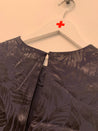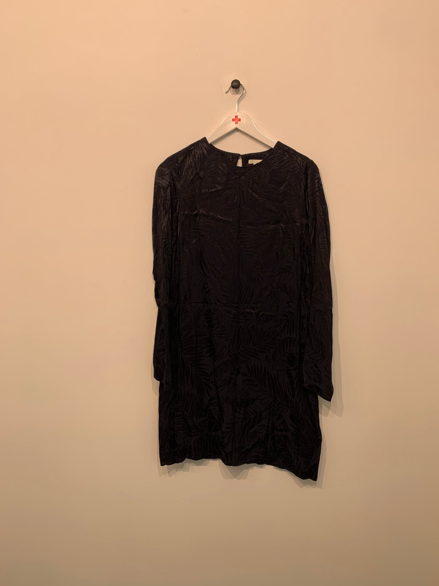 Kjole med lange ærmer og med knaplukning og lille åbning bagpå.