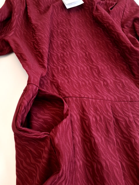 O455 Kjolen har en struktureret overflade og er designet med en løst gående talje. Den har lange ærmer og en rund halsudskæring.