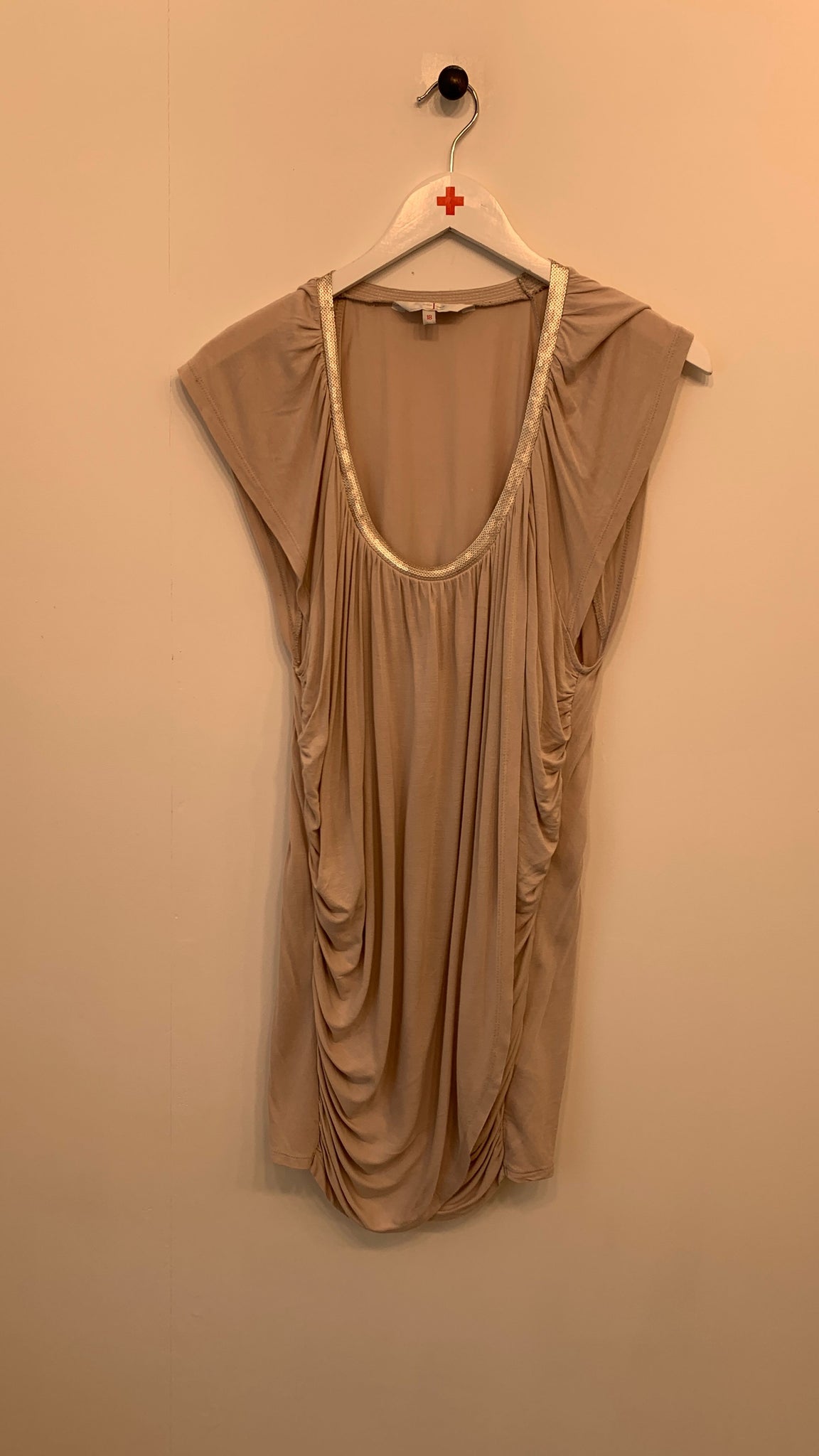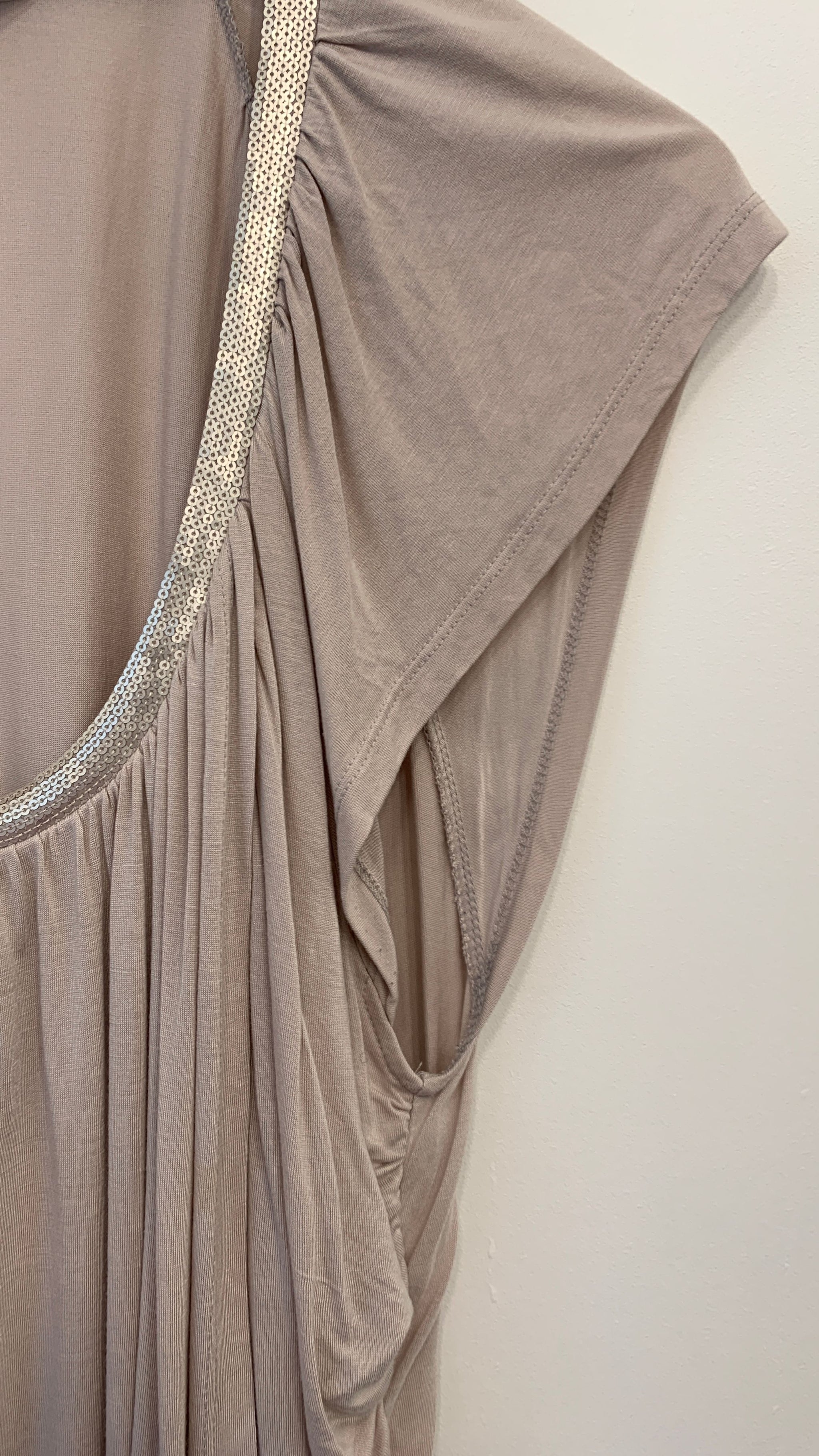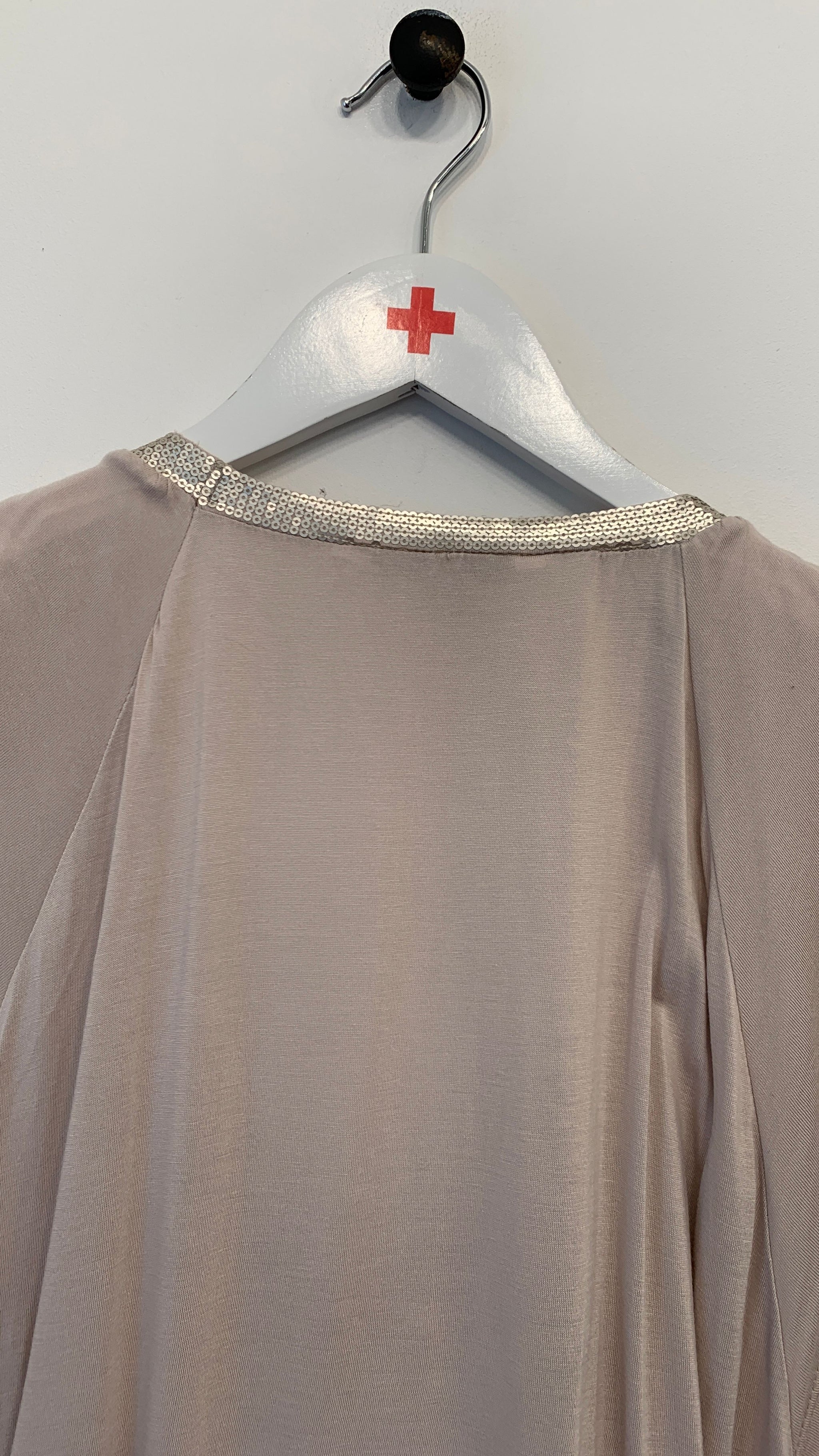 Elegant bluse med dyb halsudskæring med pailletbesat kant og rynkeeffekt i siderne.