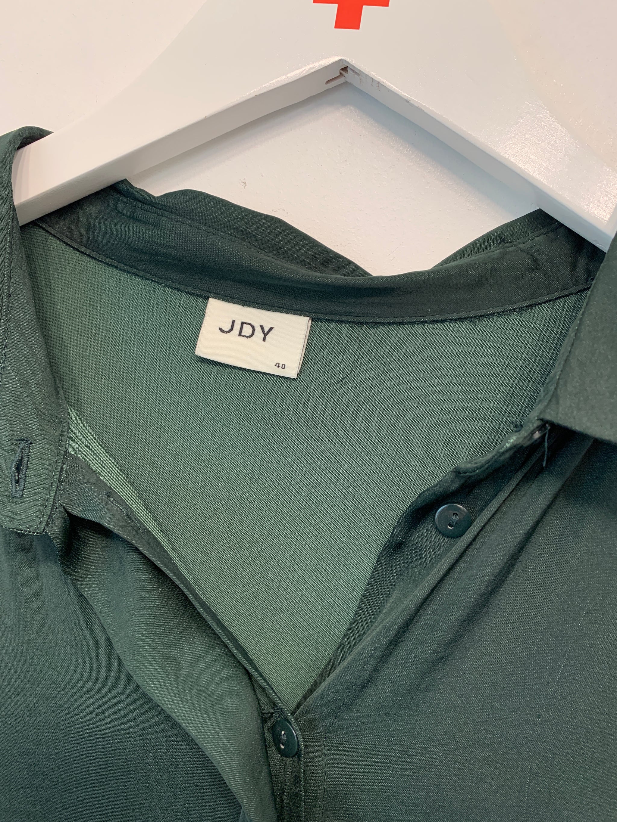 Smuk kjole fra JDY. Skjortekrave og knaplukning foran samt lange ærmer med manchetter. (Vaskeanvisningen mangler).