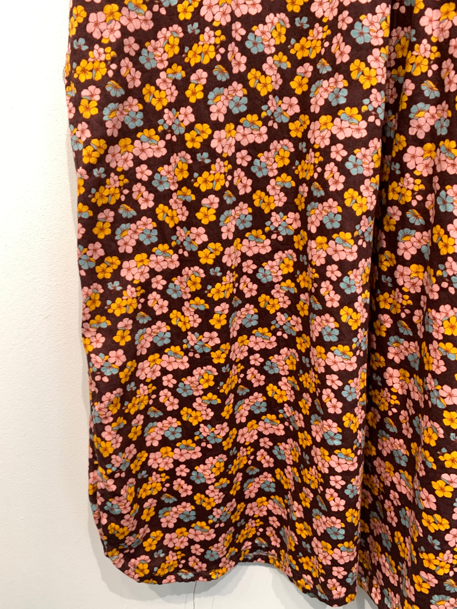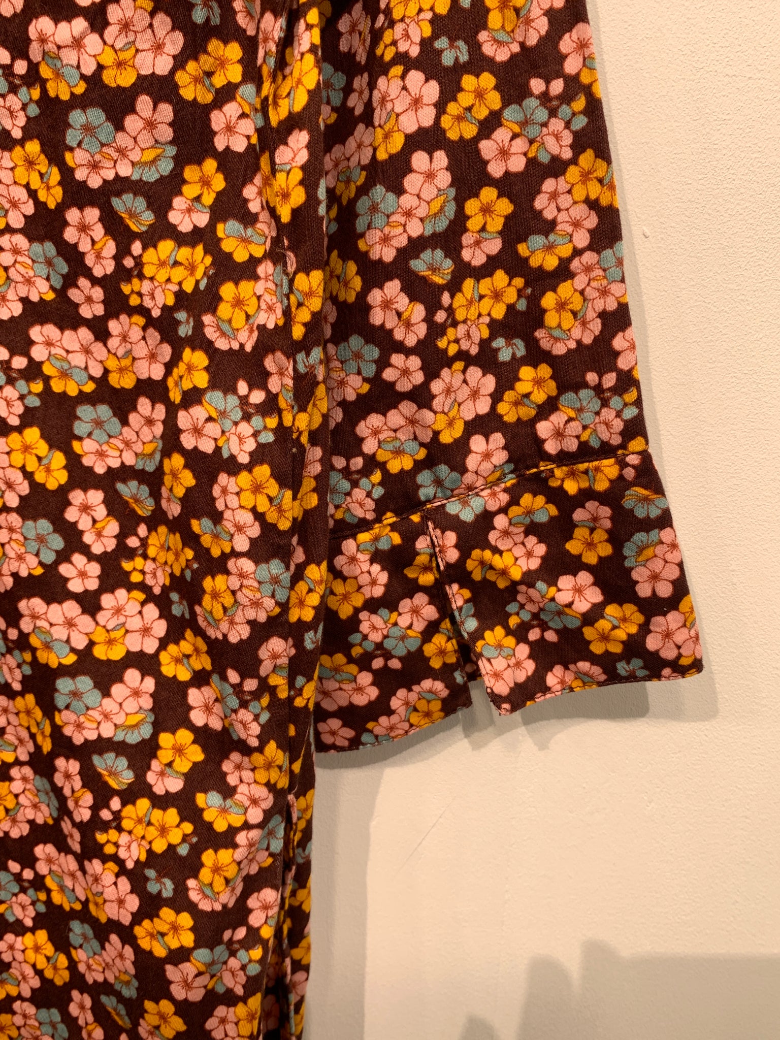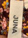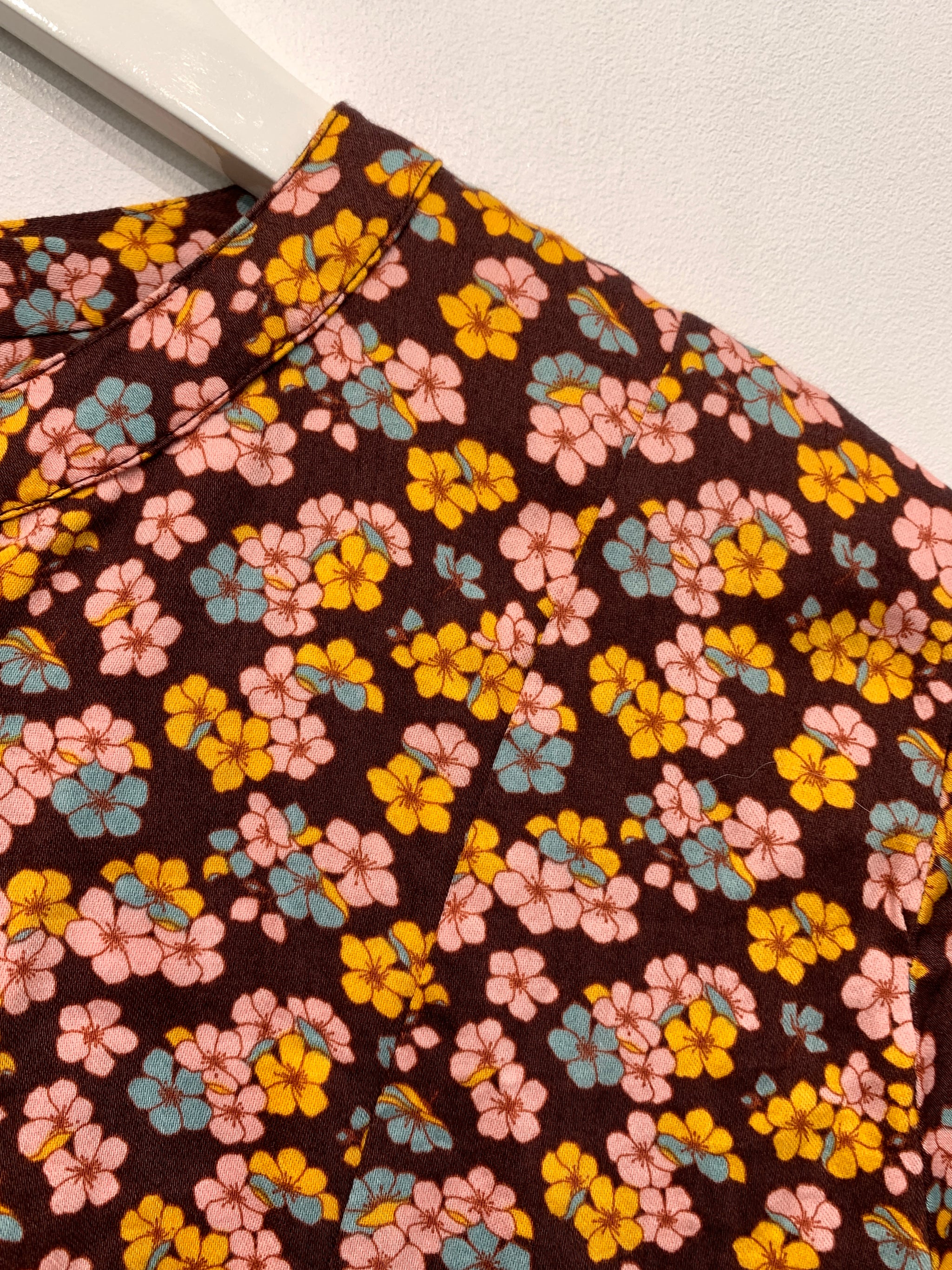Kjole i løs pasform med rund hals og lukning foran med flæser