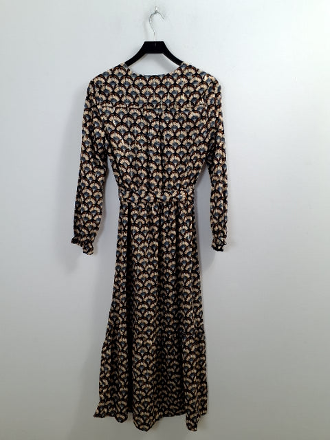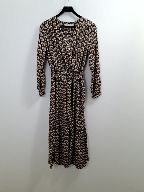 0676 by one Kjolen har knapper foran, lange ærmer og en bælte, der fremhæver taljen.
