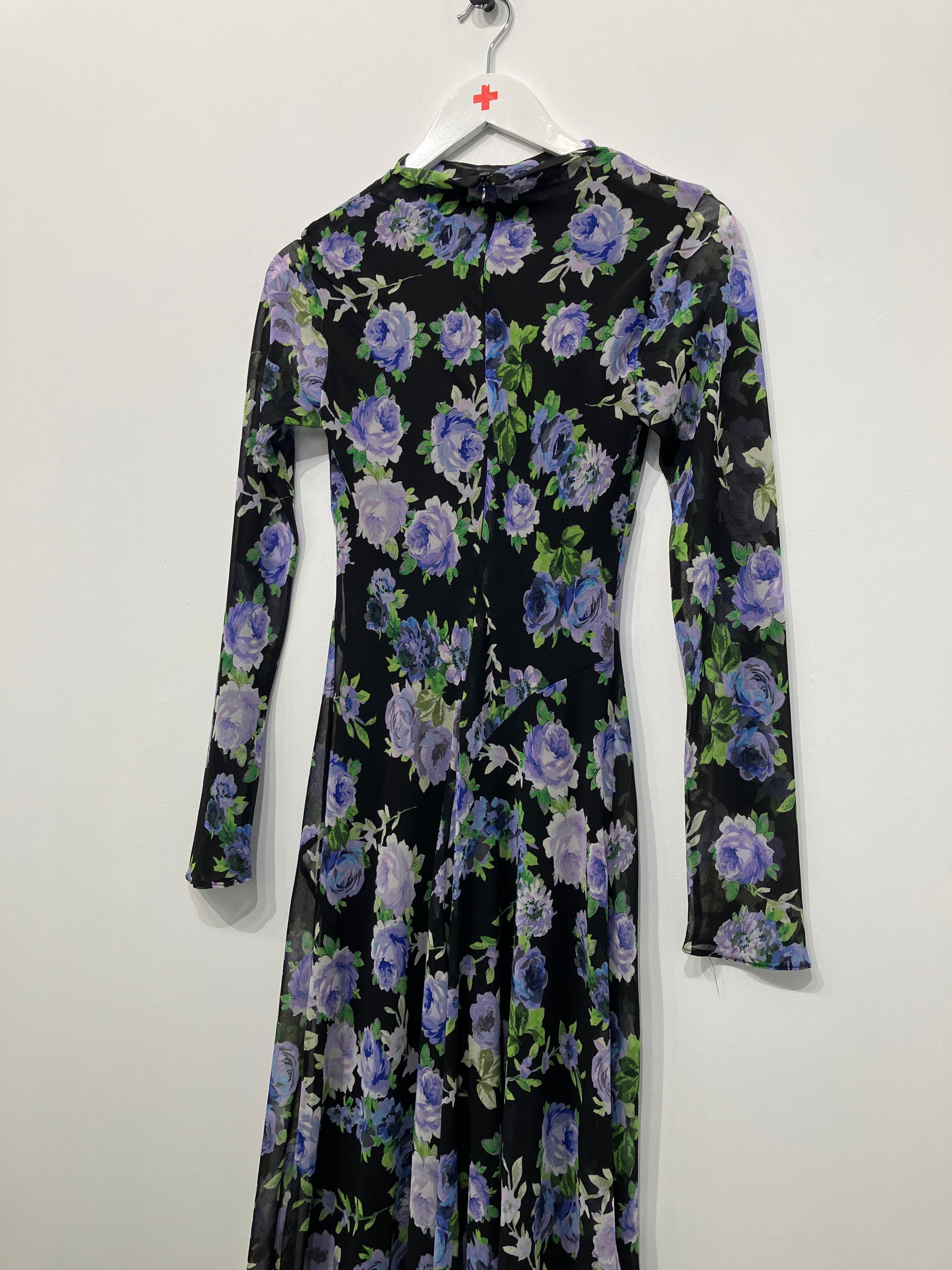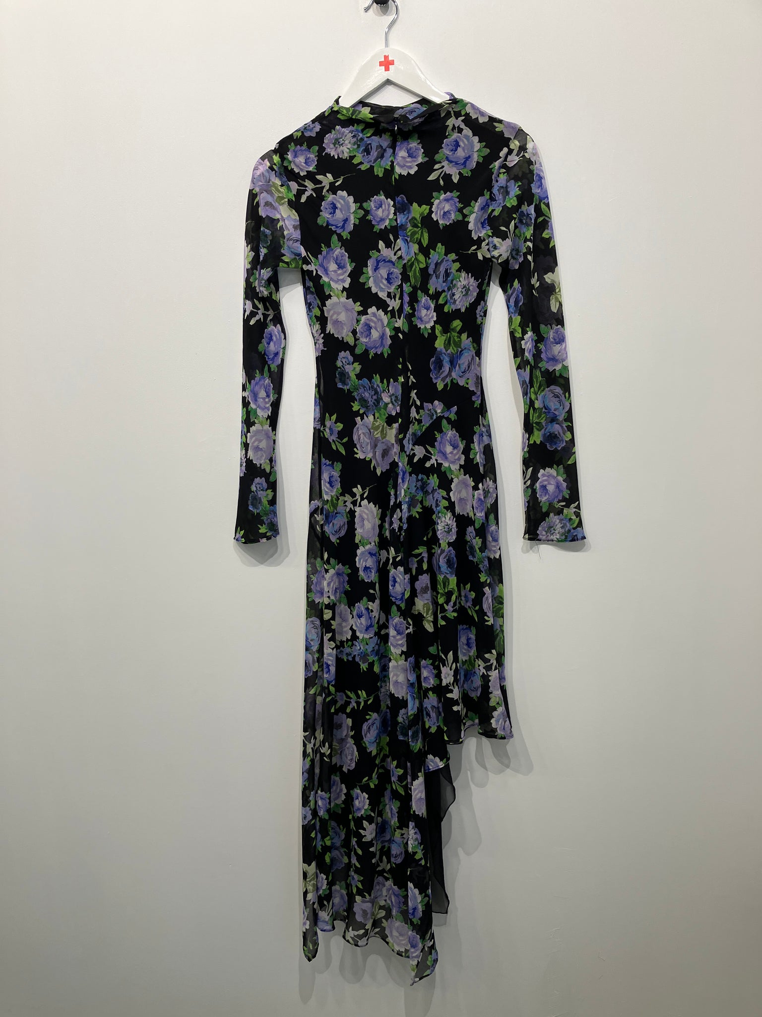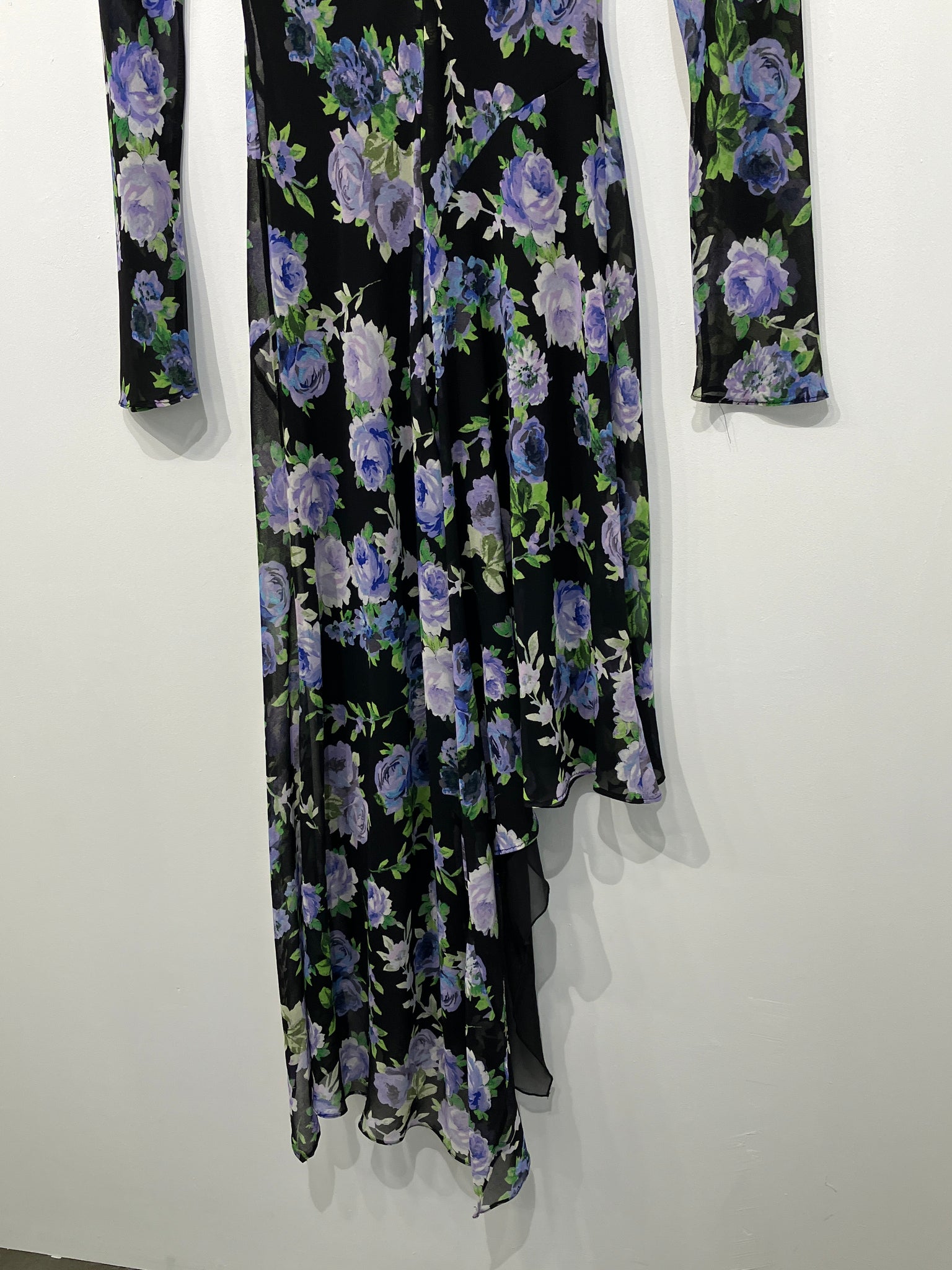 Unikt kjole med lange ærmer og asymmetrisk snit – et rigtigt blikfang.