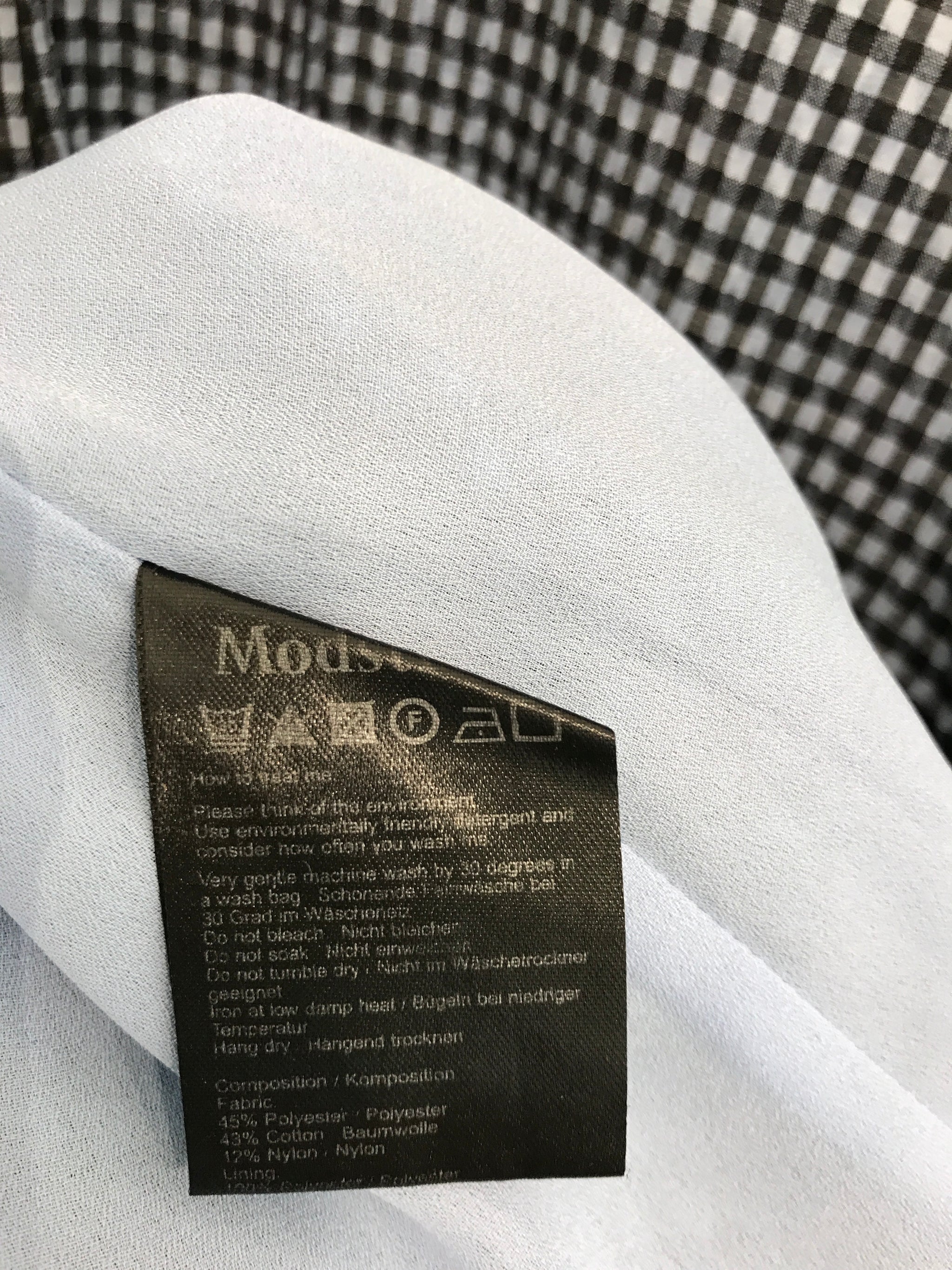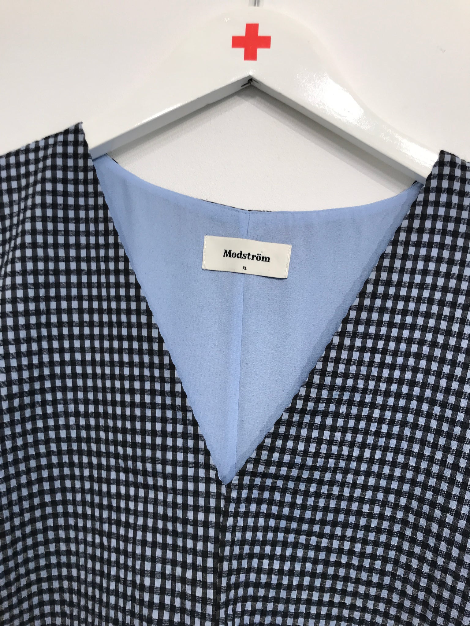 Da vi sælger brugt tøj, der er blevet vasket, kan vi ikke garantere, at størrelsesangivelsen ligger inden for en standardskala.
