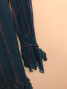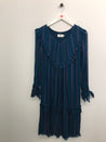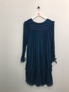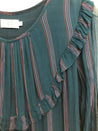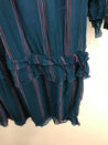 Kjole i løs pasform med rund hals og lange ærmer. Designet med en dekorativ flæse foran og på skørtet samt bindebånd ved ærmerne.
