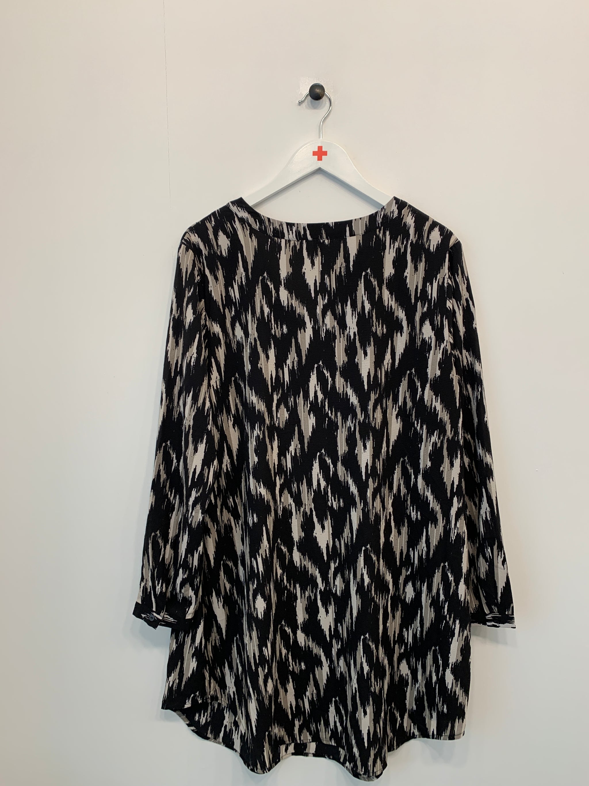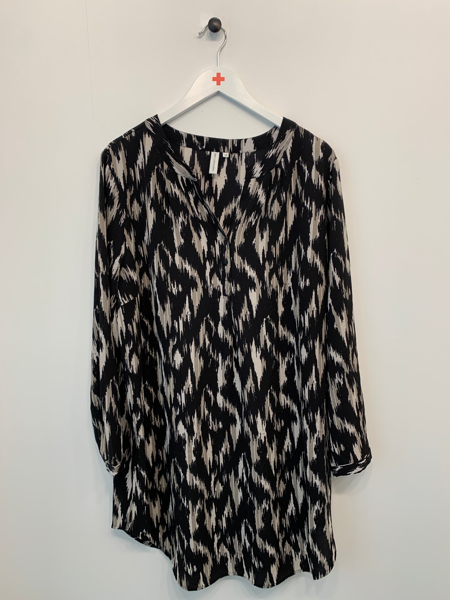 Kort kjole i løs pasform, lange ærmer og v-hals med knaplukning