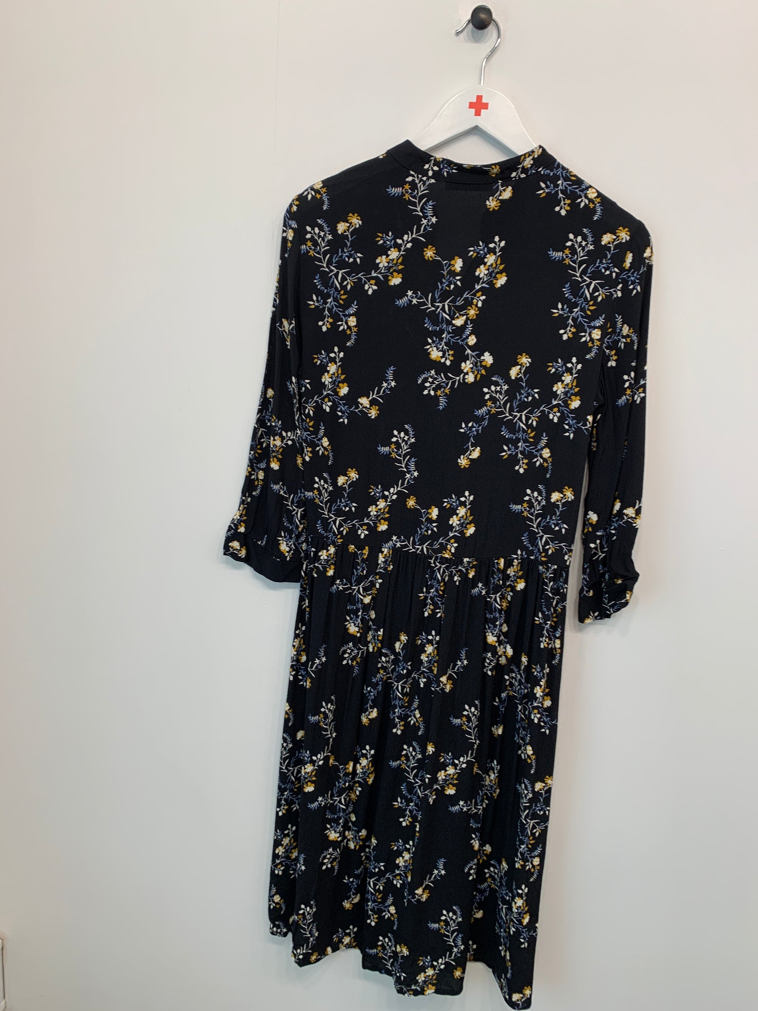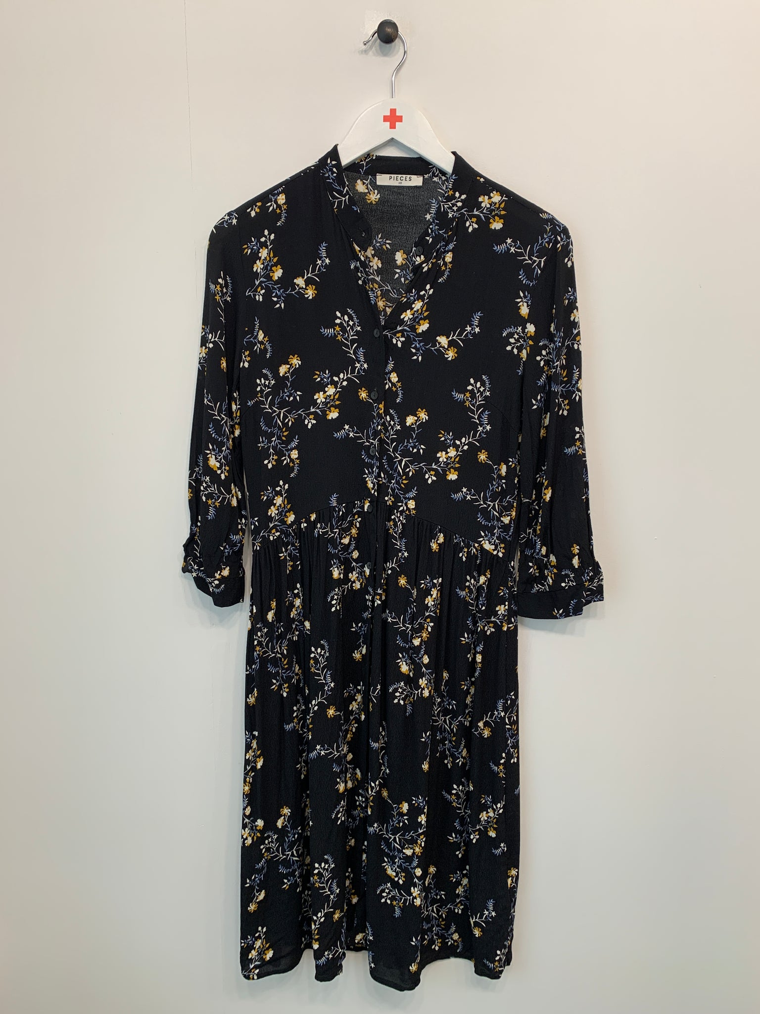 Elegant kjole fra Pieces. Kjolen har V-hals med knaplukning og lange ærmer med manchetter.