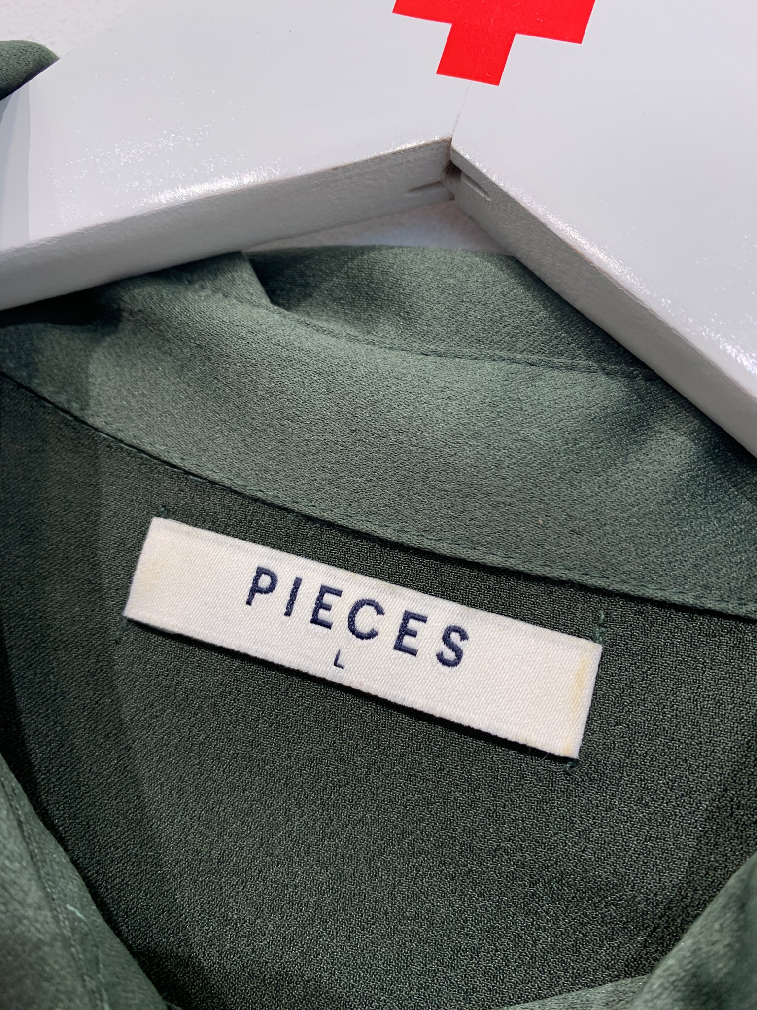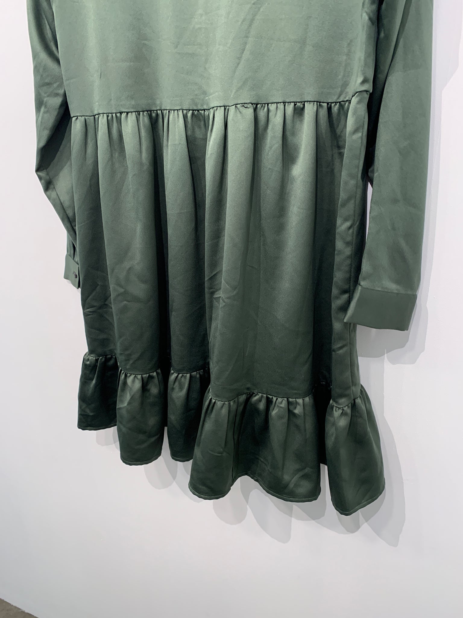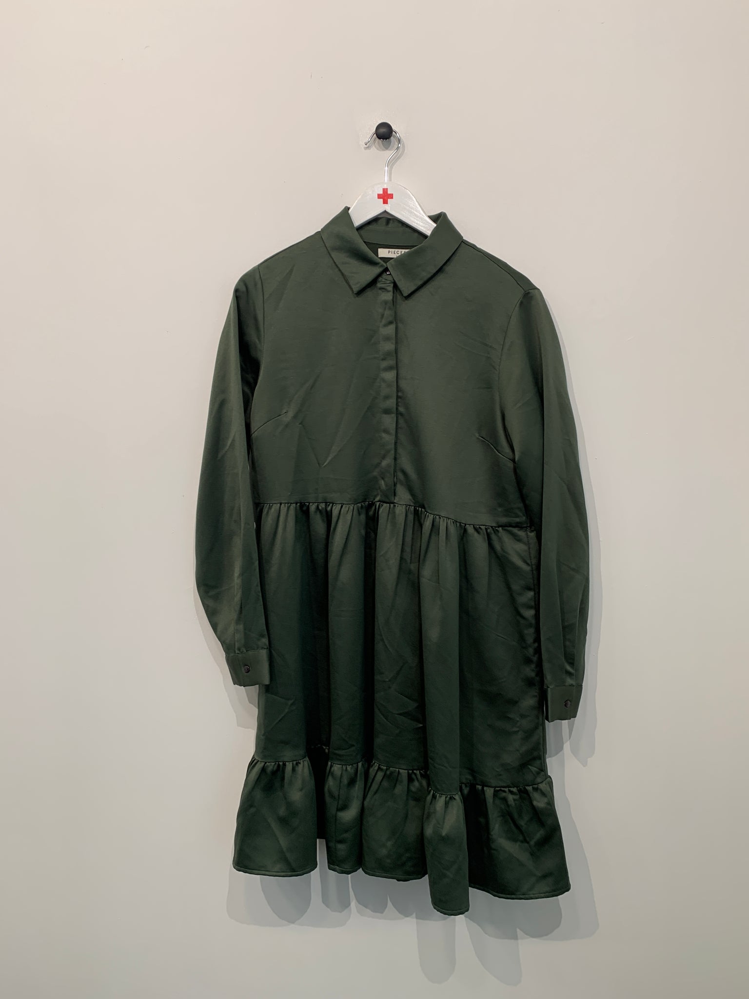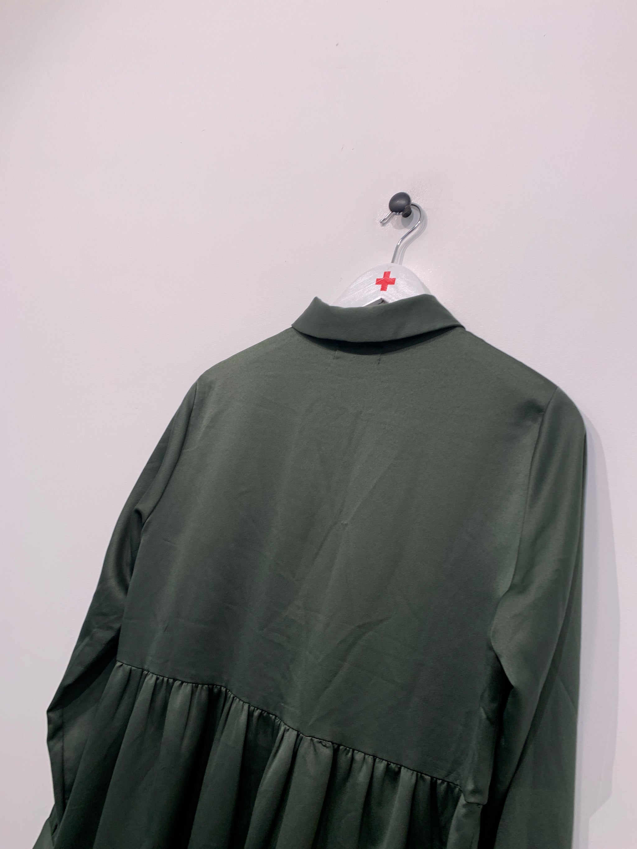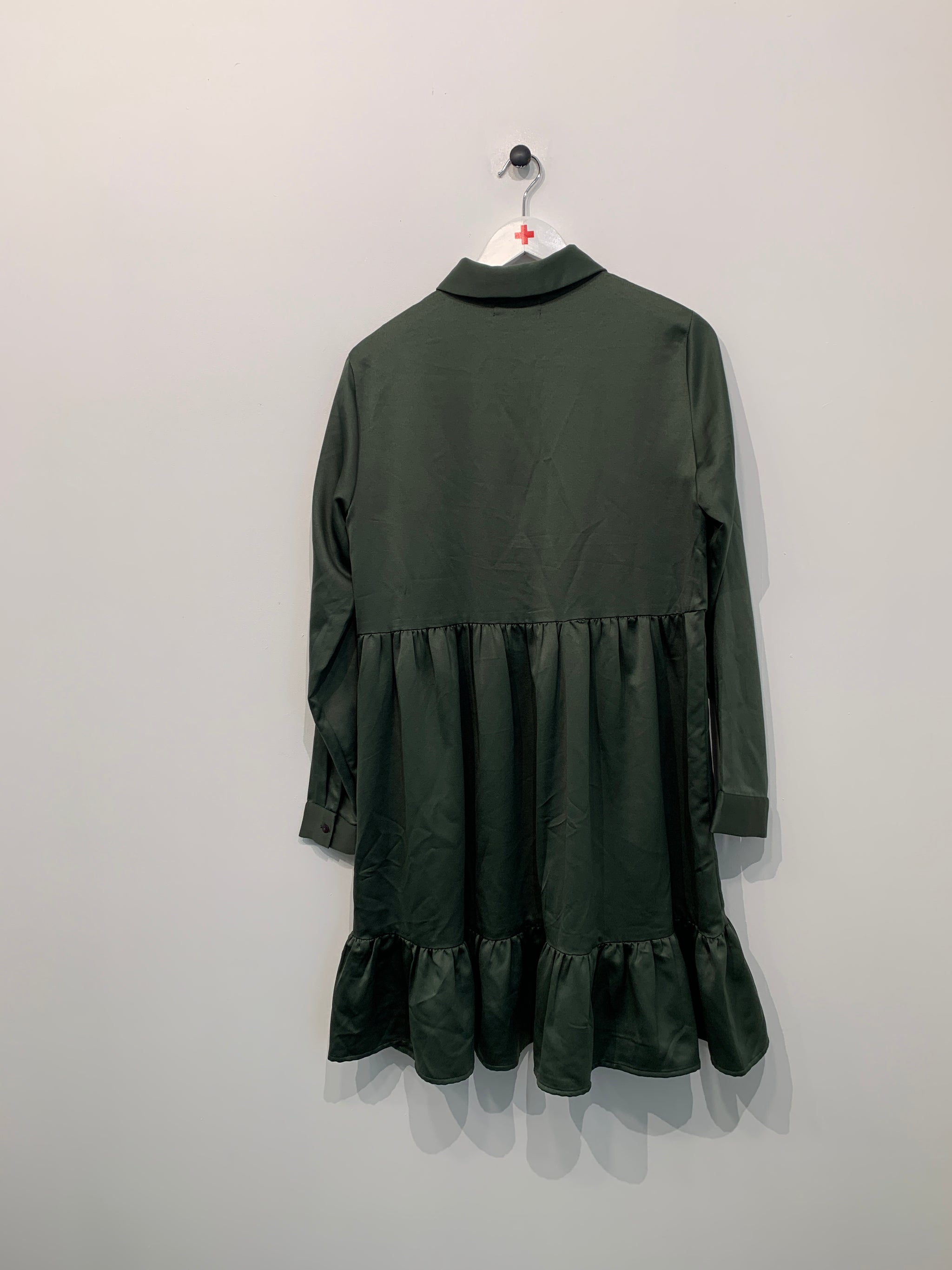 Kjole med lange ærmer, fine detaljer i bunden, samt med knapper.