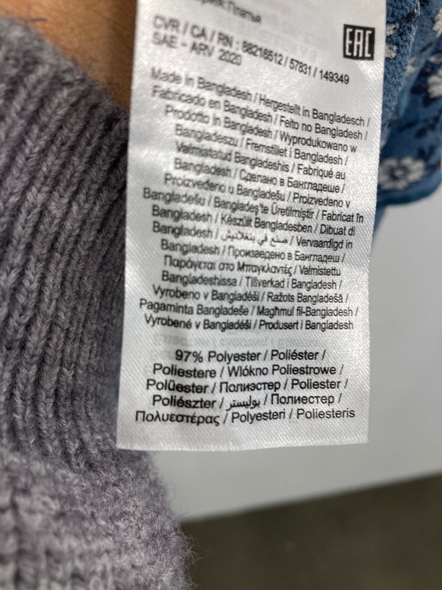 Da vi sælger brugt tøj, der er blevet vasket, kan vi ikke garantere, at størrelsesangivelsen ligger inden for en standardskala.