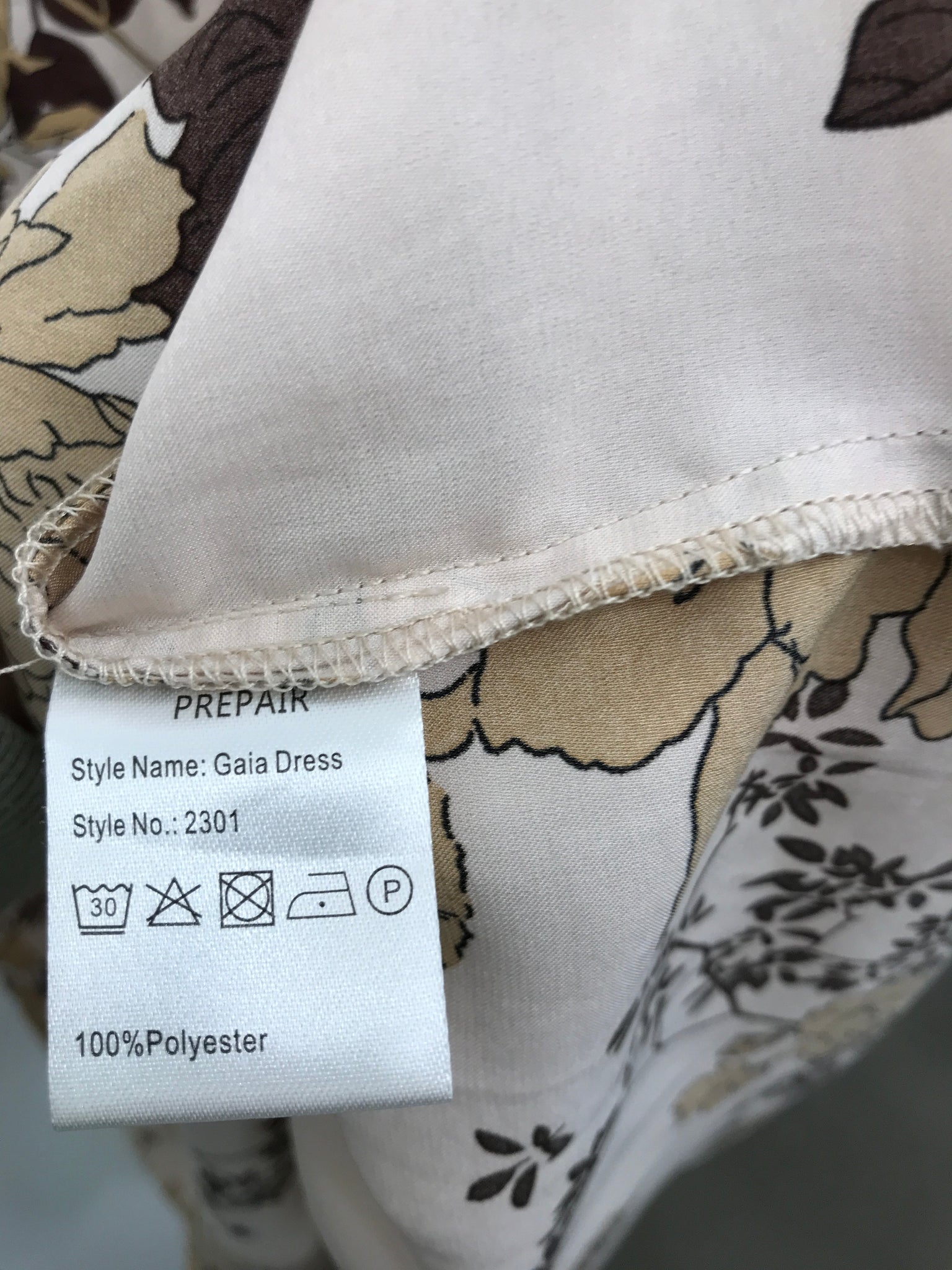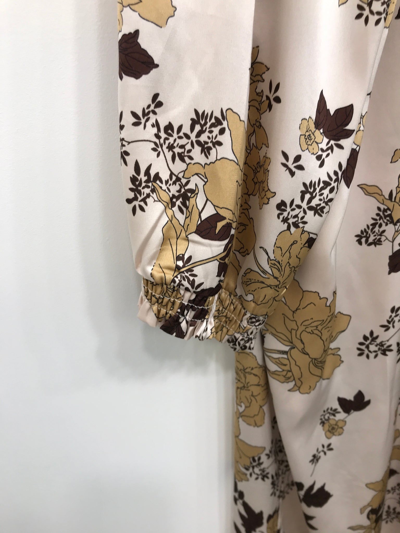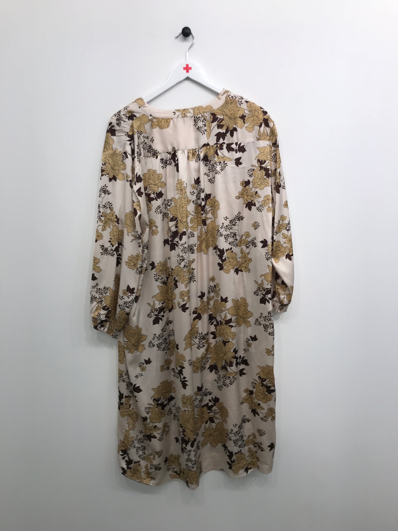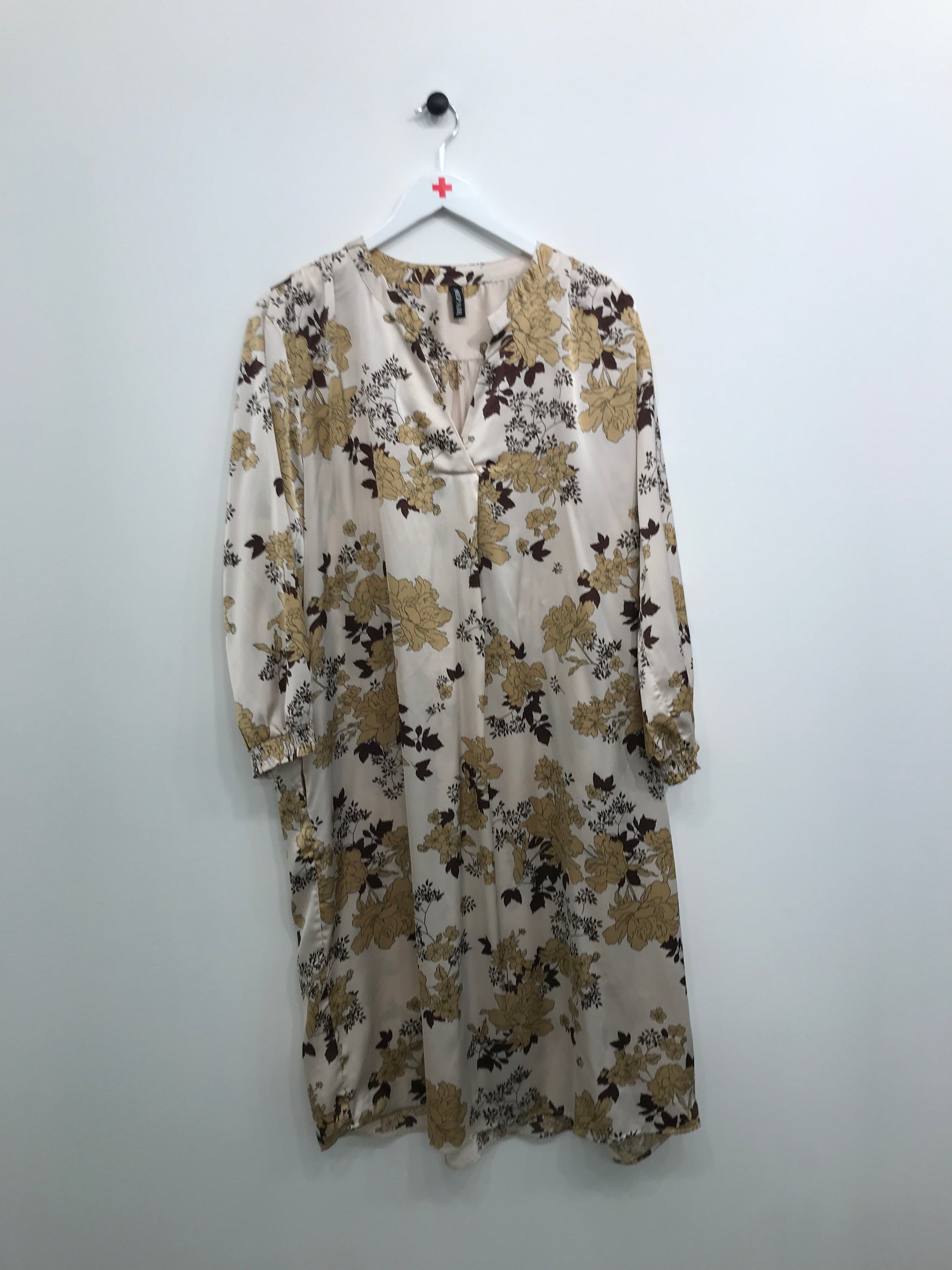 Kjole med V udskæring og lange ærmer med elastikkant.