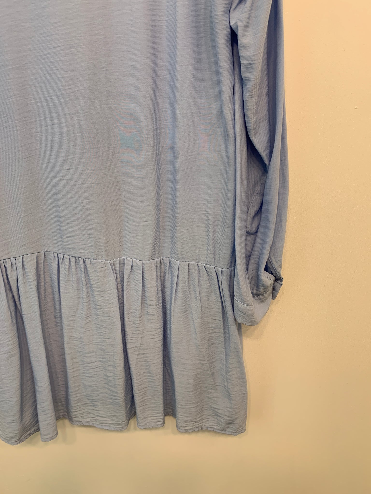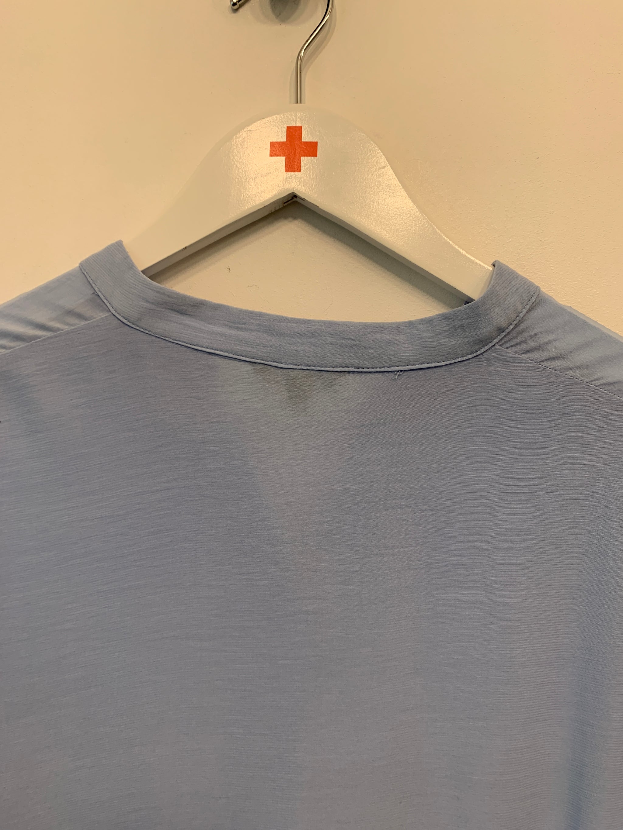 Klassisk design med rund hals og lange ærmer med manchetter.