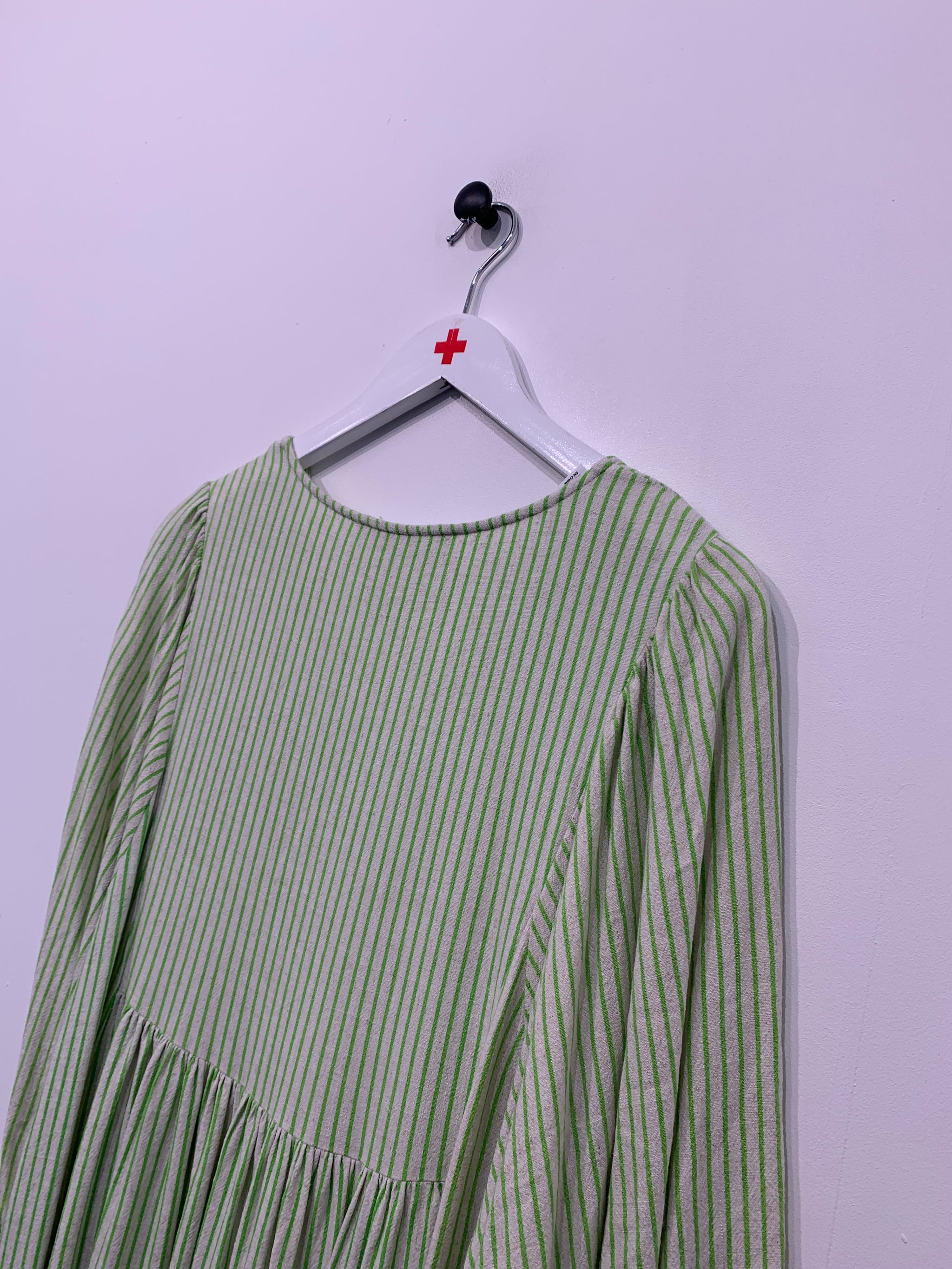Da vi sælger brugt tøj, der er blevet vasket, kan vi ikke garantere, at størrelsesangivelsen ligger inden for en standardskala.