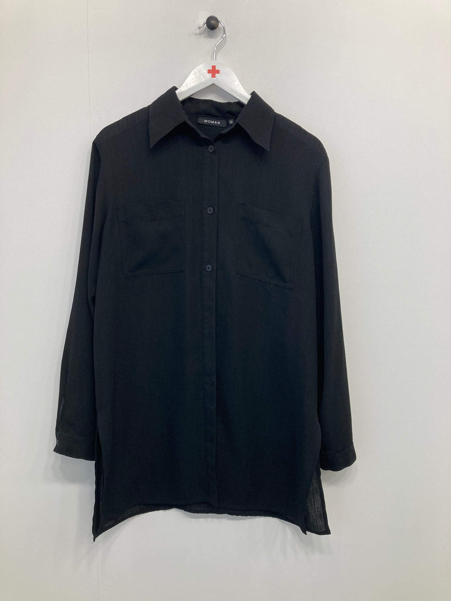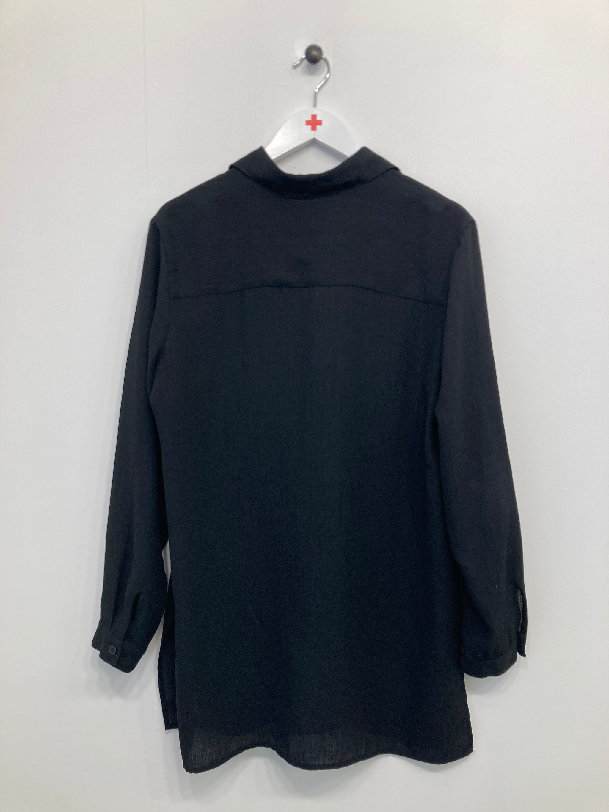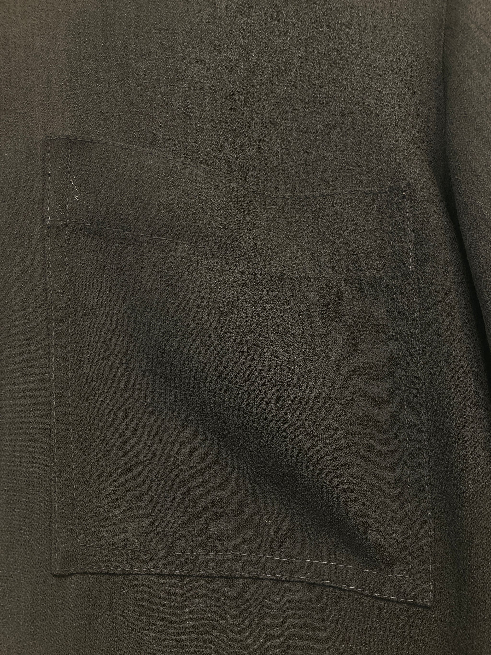 Skjortekjole med lange ærmer, brystlomme og knapper.