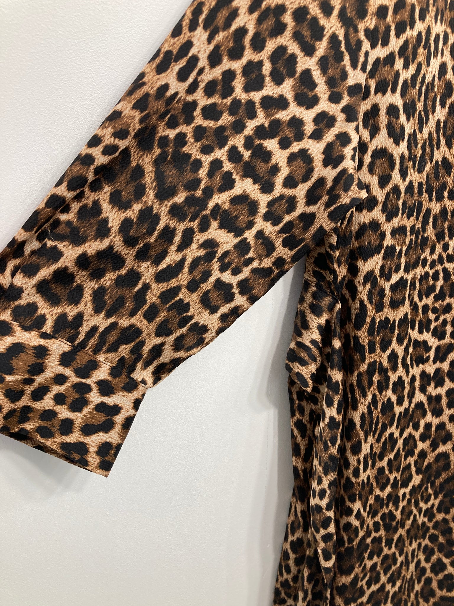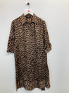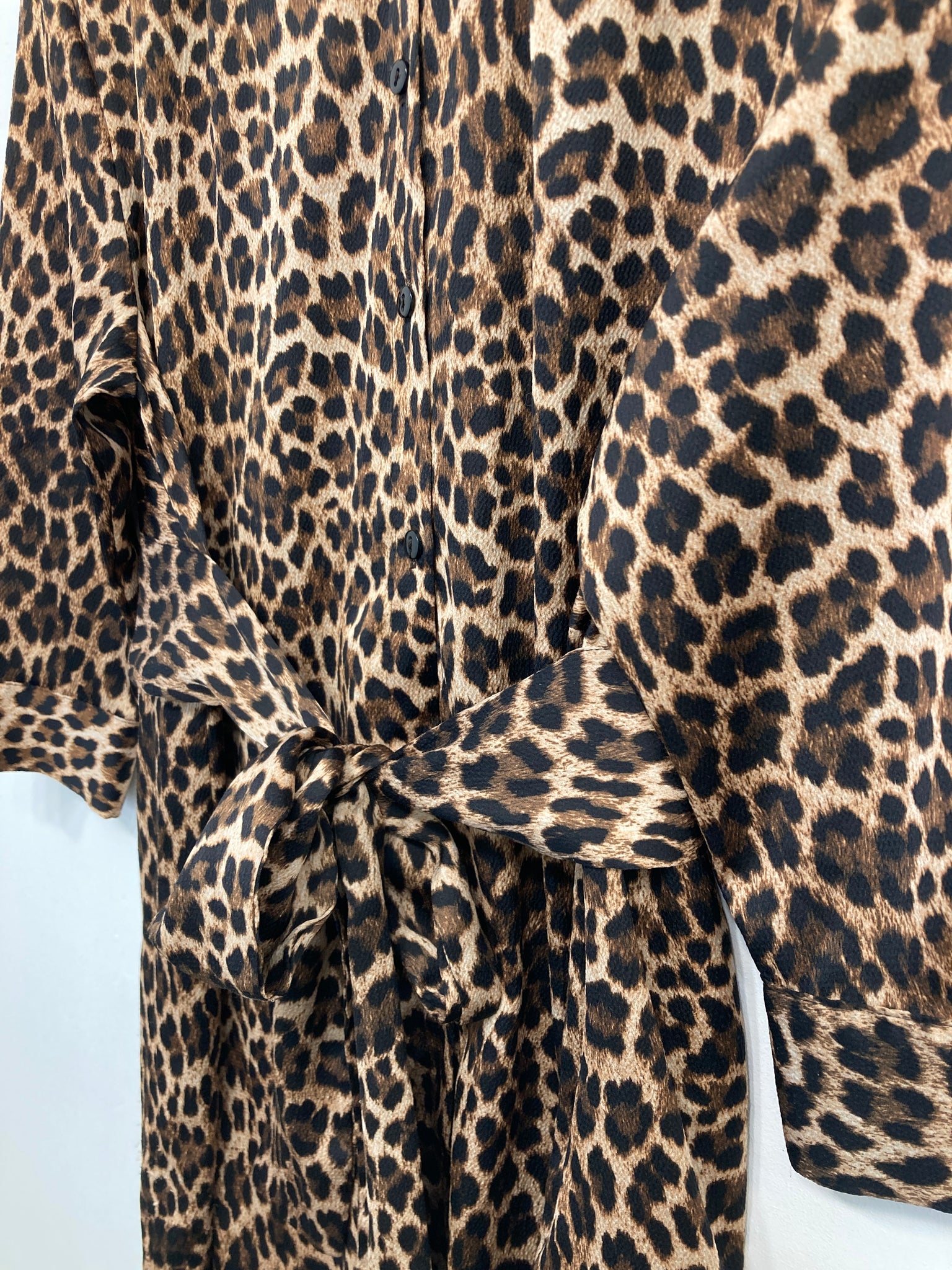 Flot skjortekjole med knaplukning foran, slids og et fast bælte i taljen.