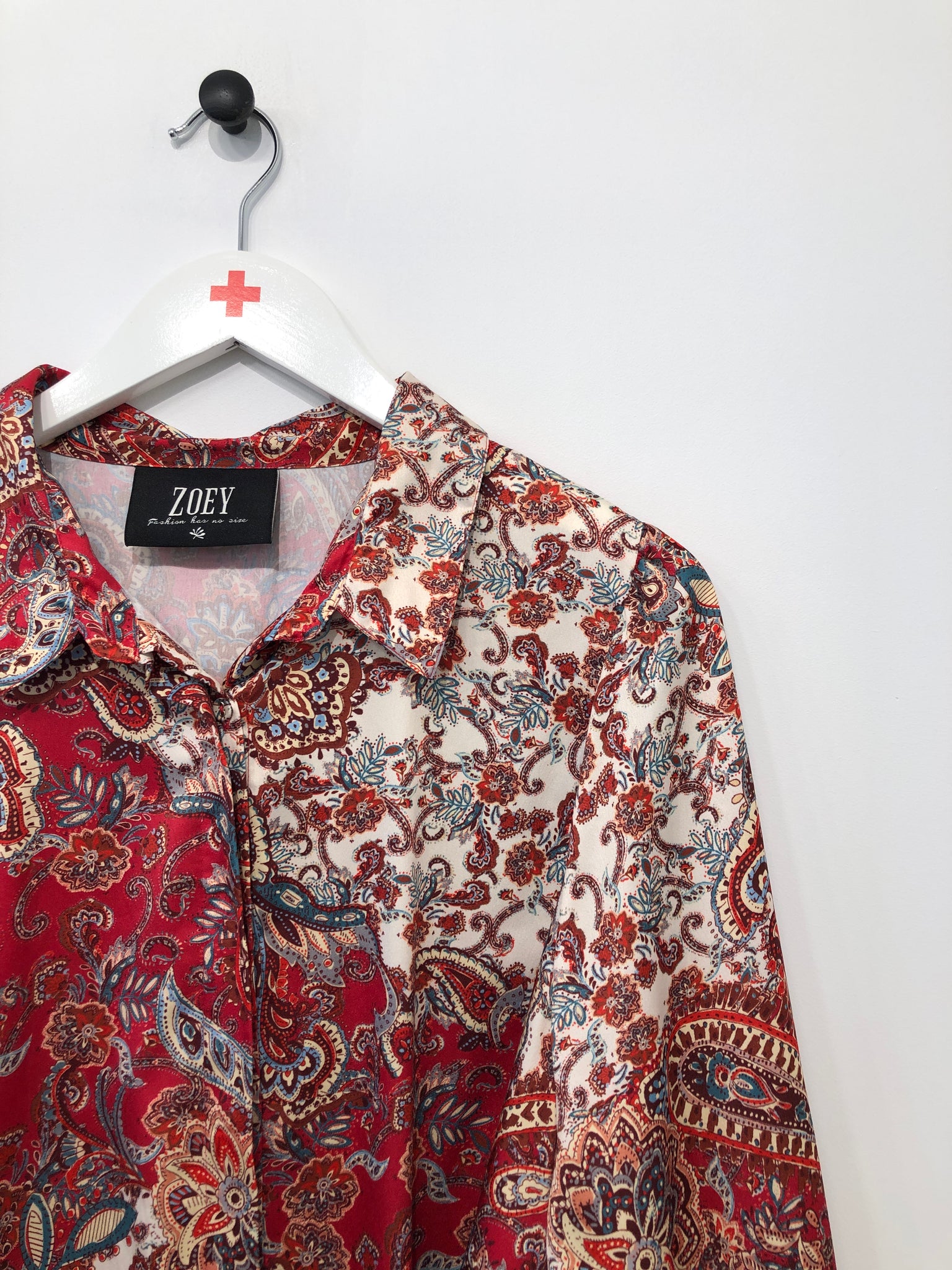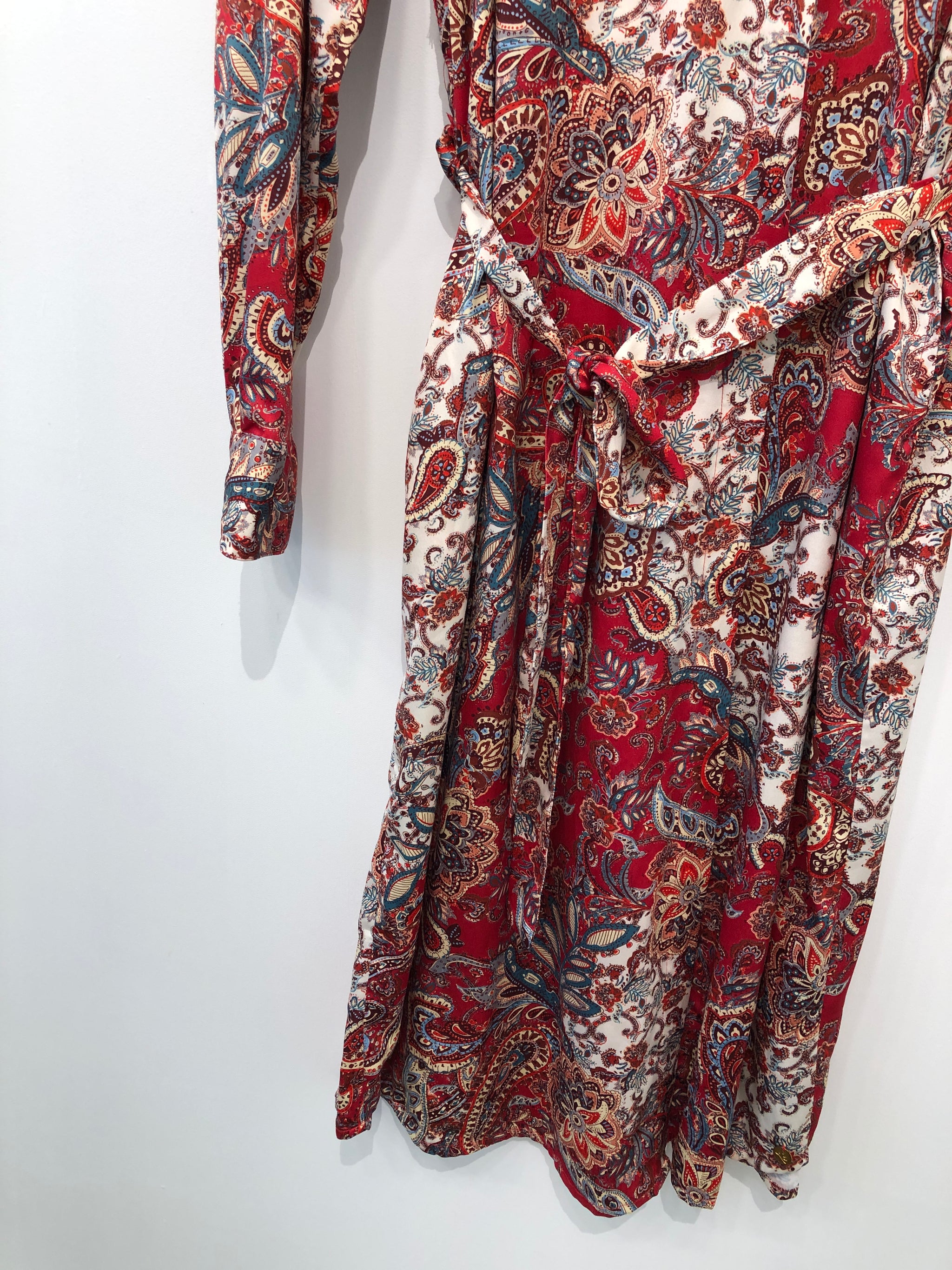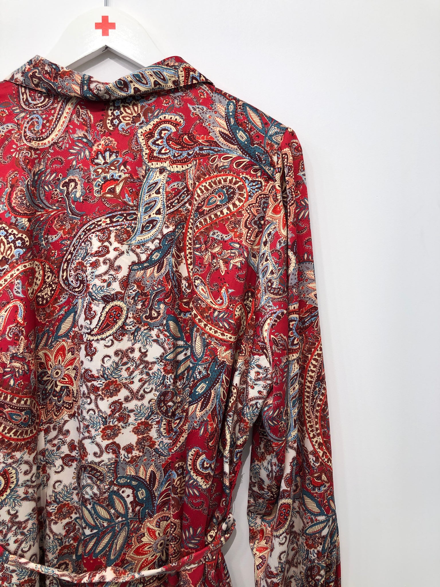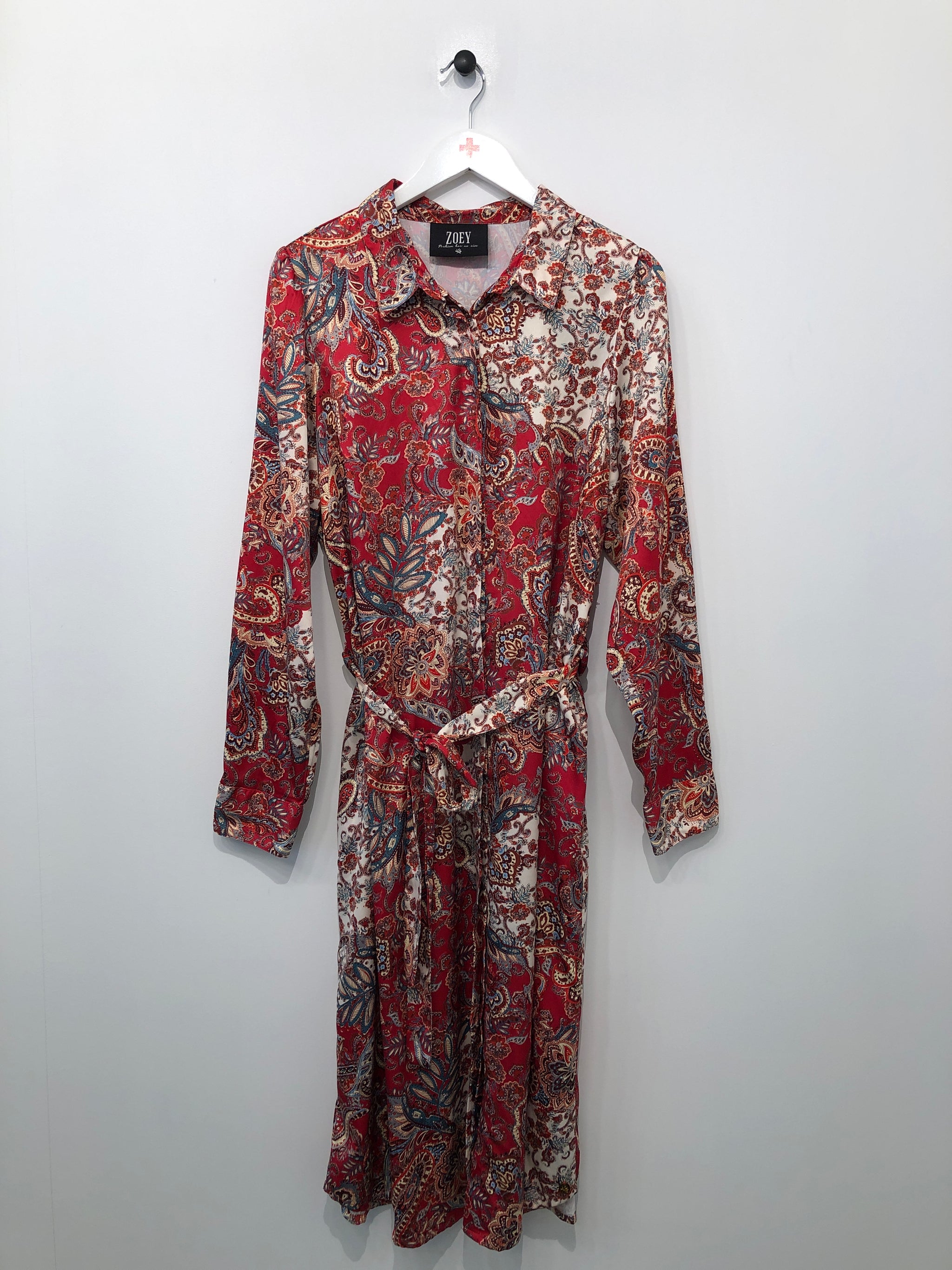 Sød, langærmet skjortekjole af mærket Zoey med bånd at binde om taljen.